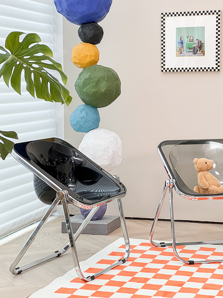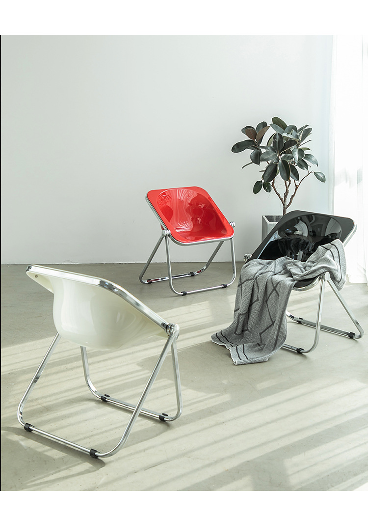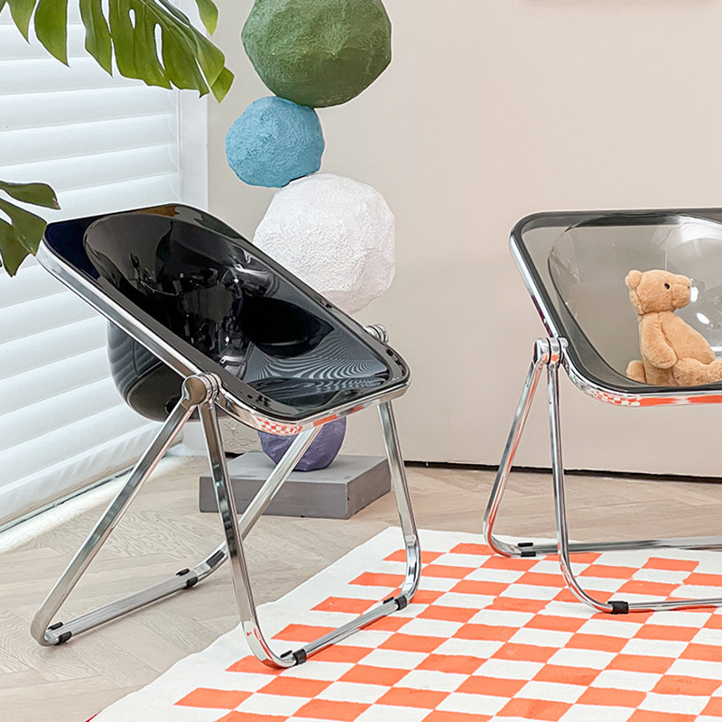 심플한 인터넷 유명 중고 접이식 의자, 인스타그램 스타일 가정용 투명 의자, 레저 의자, 소형 아파트 디자이너 밀크티 식탁 의자