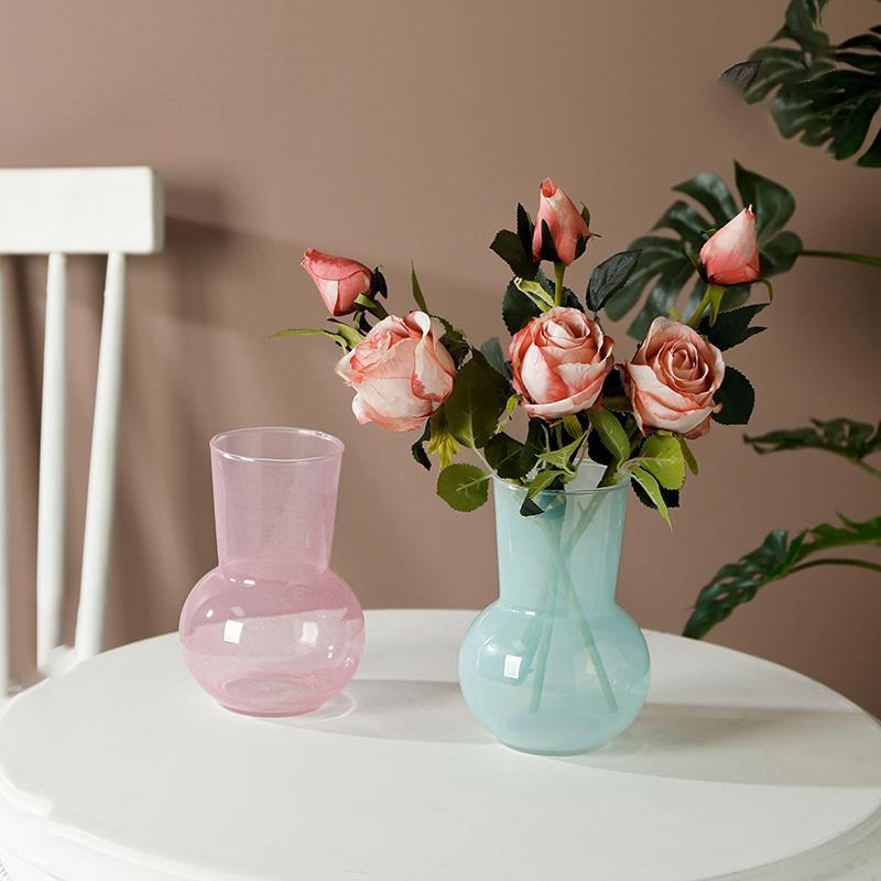 북유럽 인 간단한 빛 고급 유리 꽃병 장식품 높은 색상 가치 꽃 꽃 배열 홈 데스크탑 장식 소품