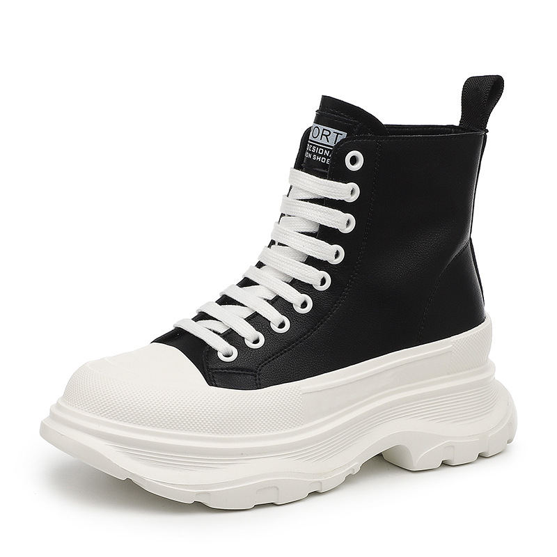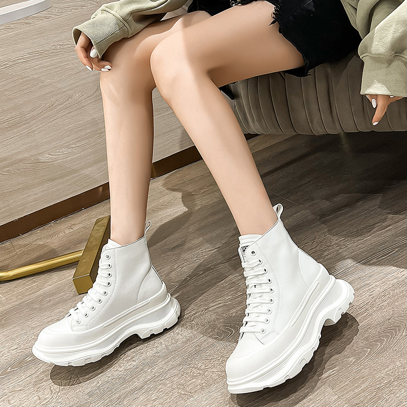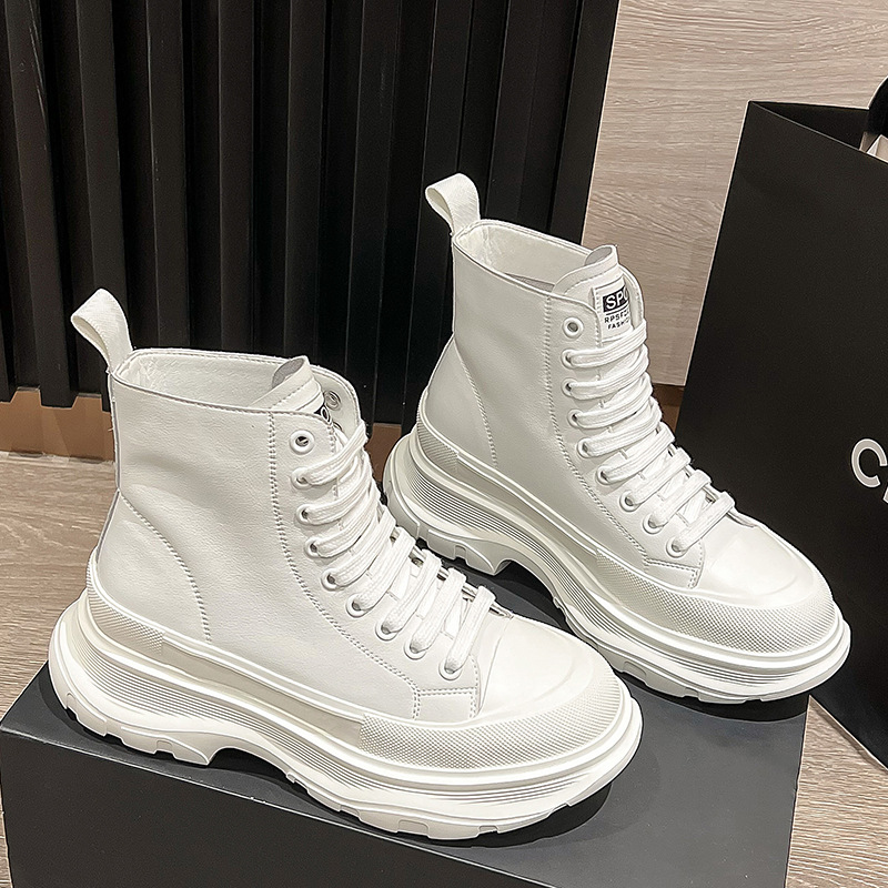 흰색 신발 여성용 두꺼운 밑창 하이탑 2022 새로운 가을 정품 가죽 얇은 모든 매치 두꺼운 밑창 스포츠 캐주얼 캔버스 신발