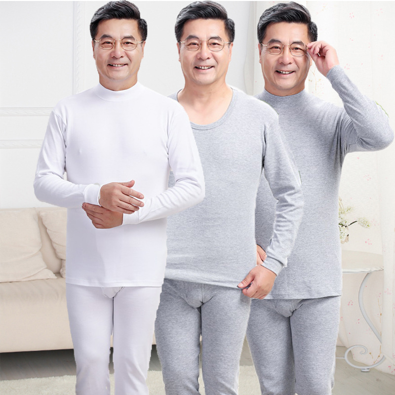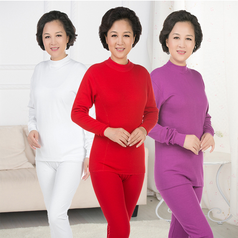 중년 및 노인 가을 의류 및 바지 여성용 얇은 순면 남성 중고 칼라 열 속옷 가을 의류 및 노인 면화 스웨터를위한 바지