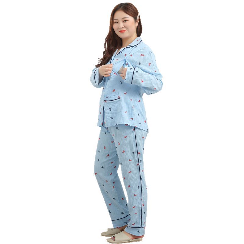 임산부 잠옷 봄과 가을 면 거즈 감금 의류 가을 플러스 사이즈 산후 출산 수유 의류 감금 센터 가을과 겨울