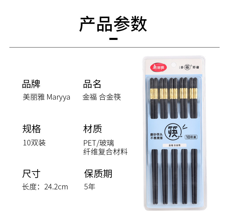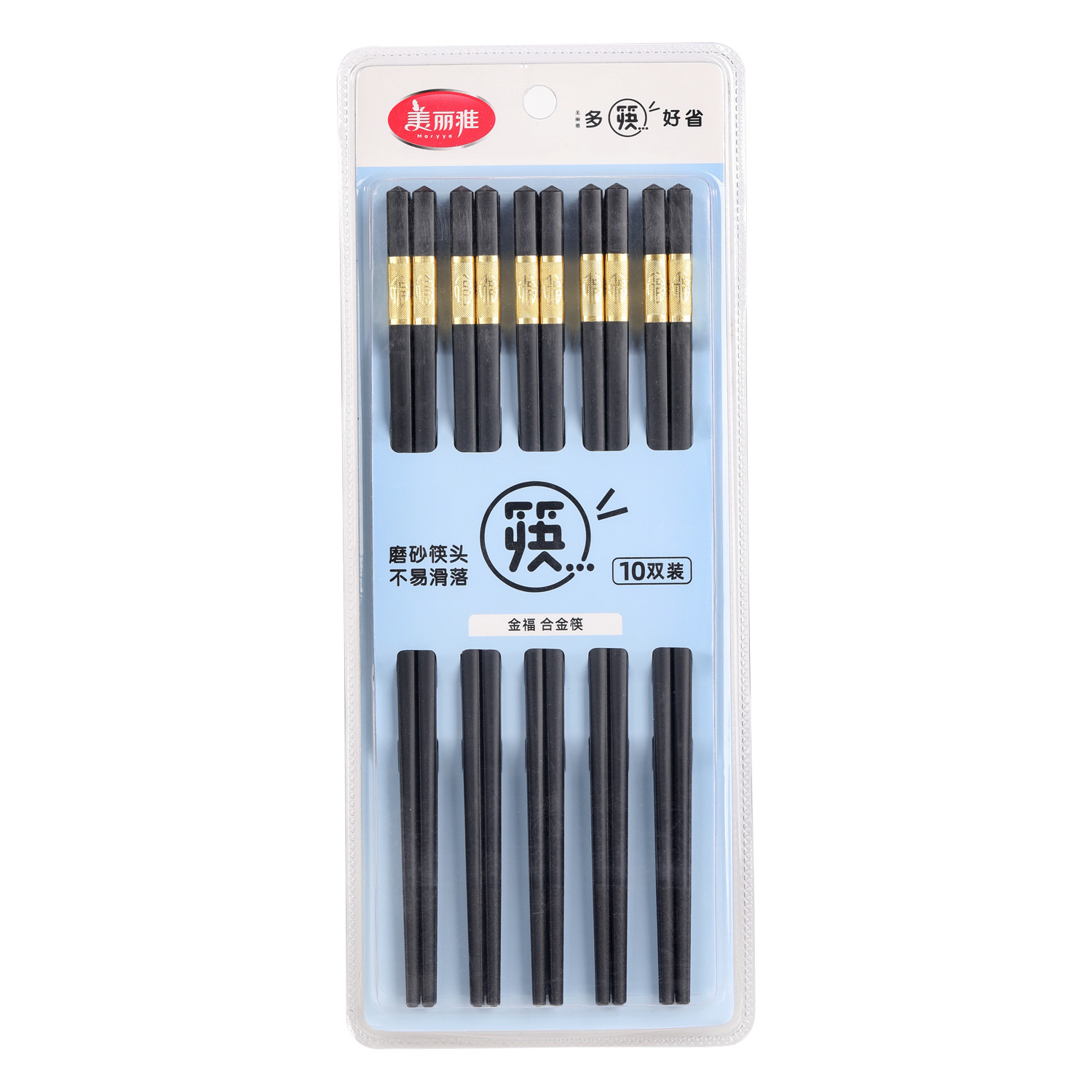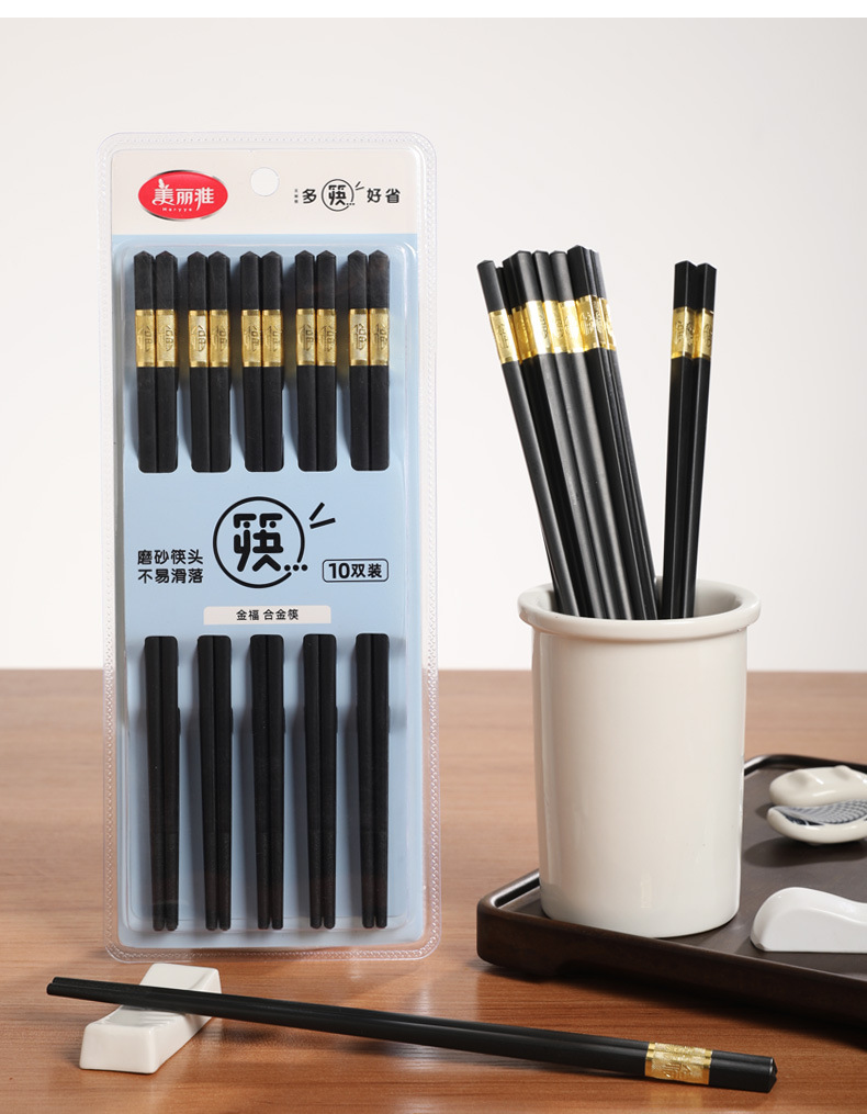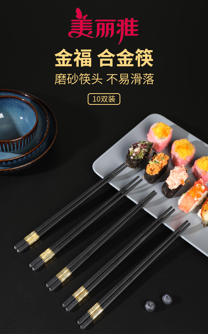 Meiya Jinfu 합금 젓가락 10 쌍 가정용 고급 미끄럼 방지 및 고온 방지 가정용 식기 백화점 도매