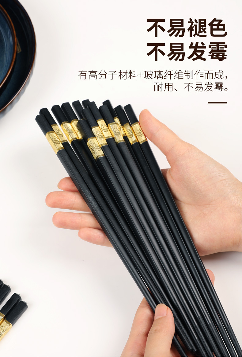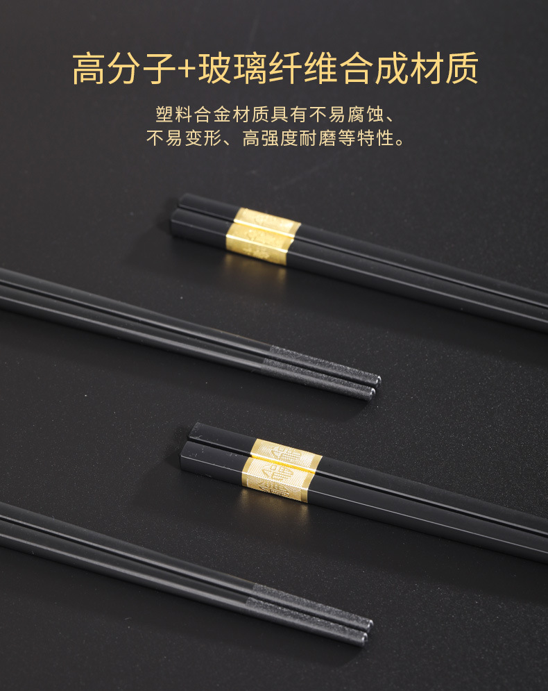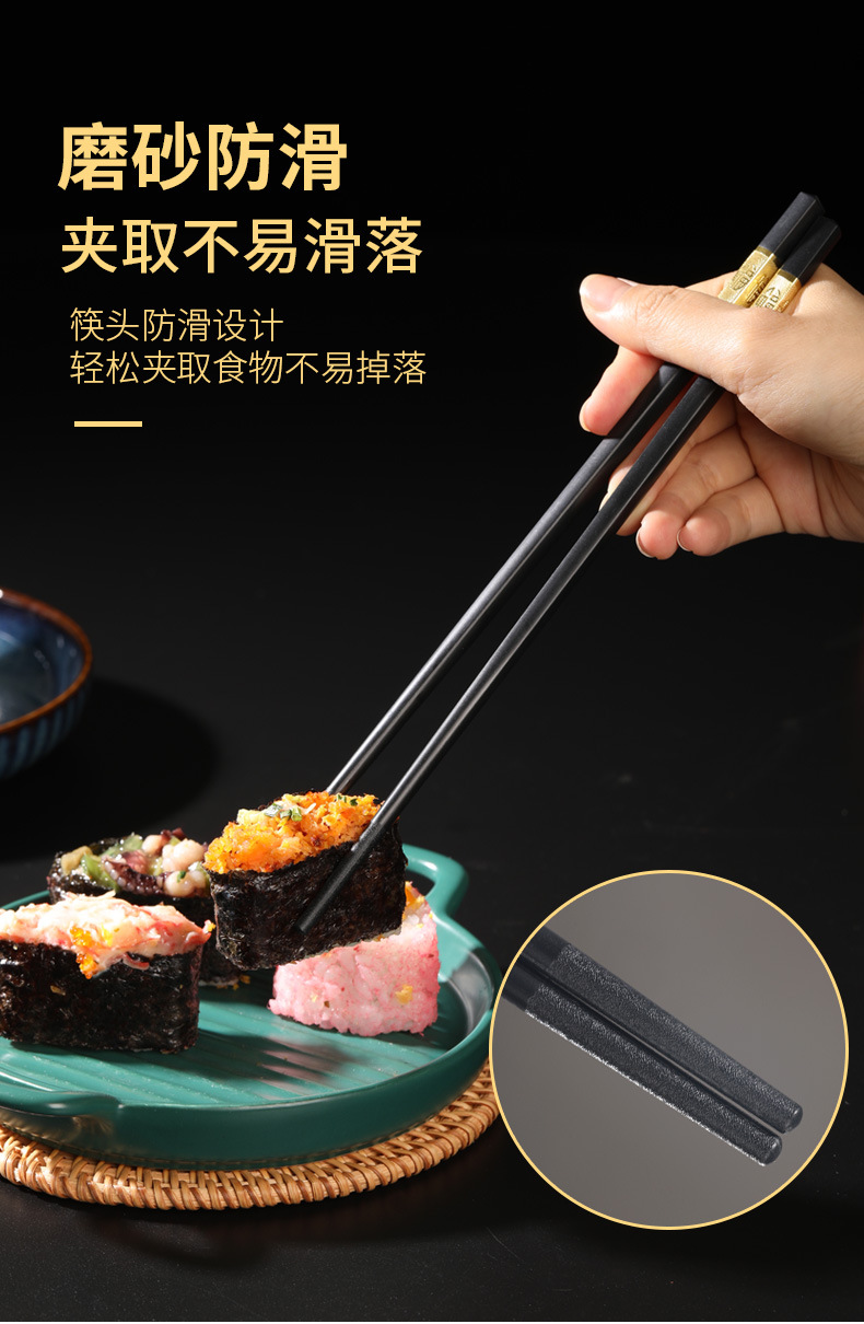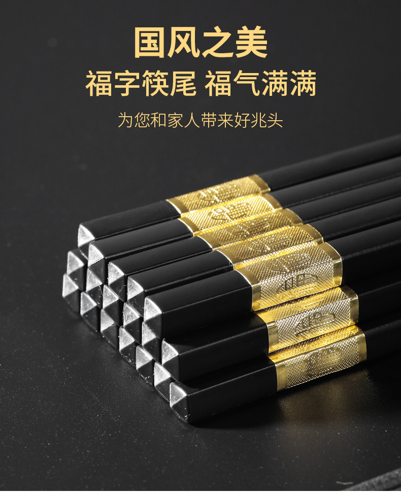 Meiya Jinfu 합금 젓가락 10 쌍 가정용 고급 미끄럼 방지 및 고온 방지 가정용 식기 백화점 도매