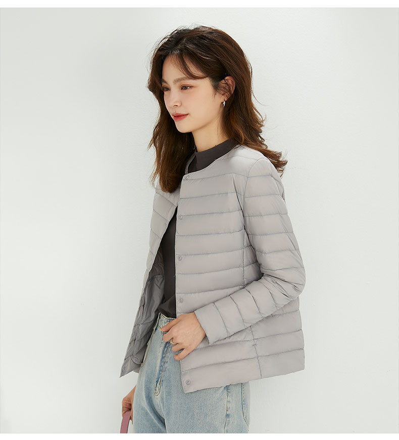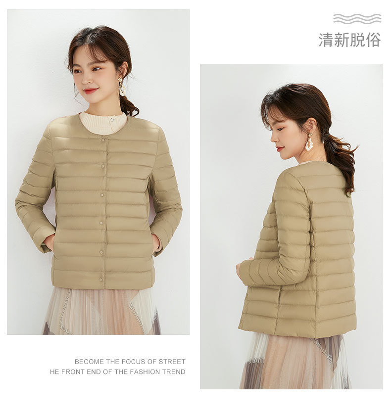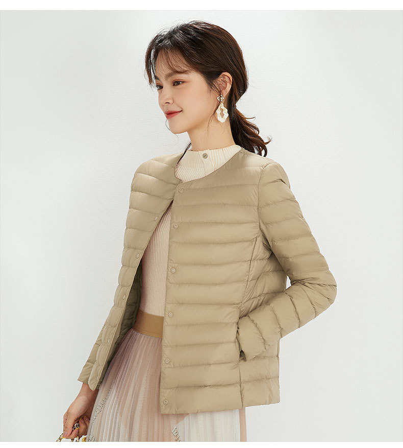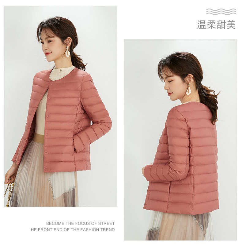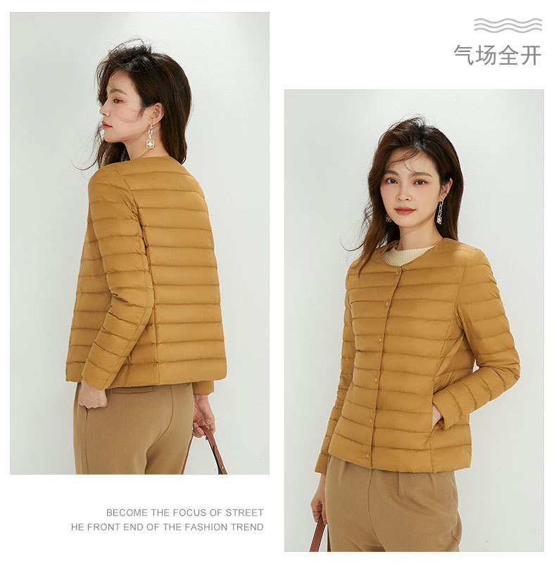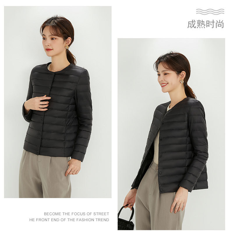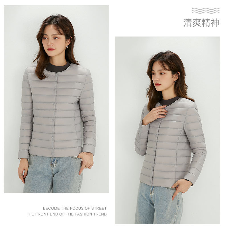 여성용 다운 재킷 경량형 2025년 신상 가을 겨울 짧은 스타일 보온 다운 안감 여성용 라운드넥 초경량 재킷