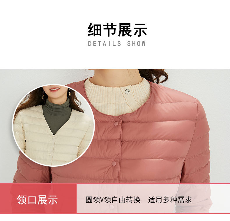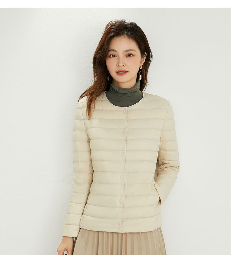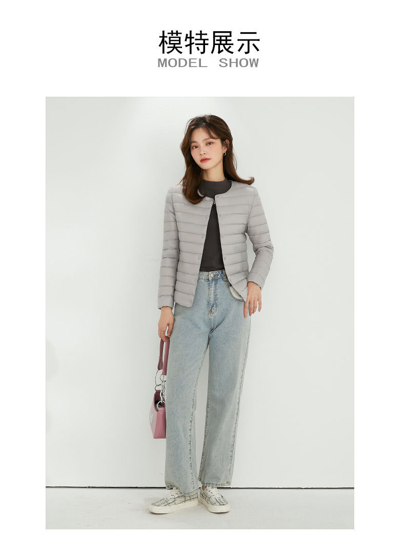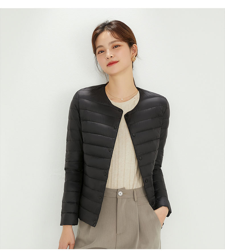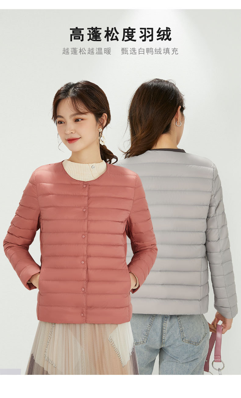 여성용 다운 재킷 경량형 2025년 신상 가을 겨울 짧은 스타일 보온 다운 안감 여성용 라운드넥 초경량 재킷