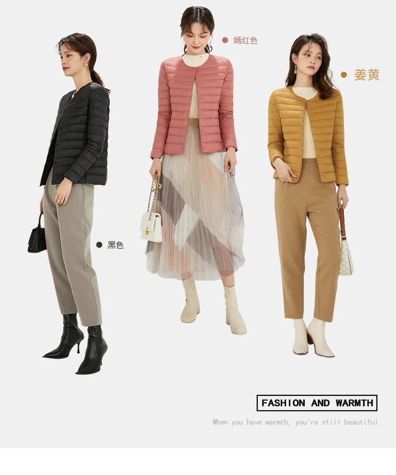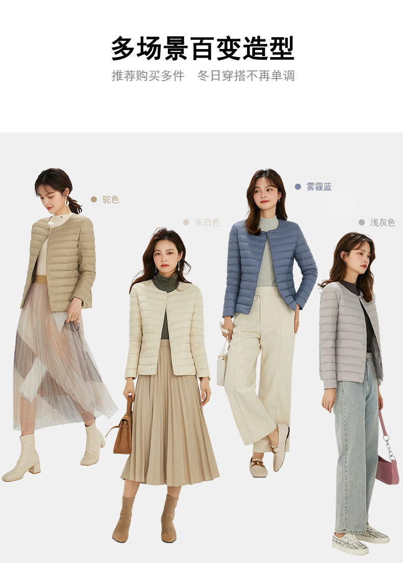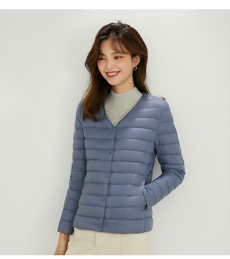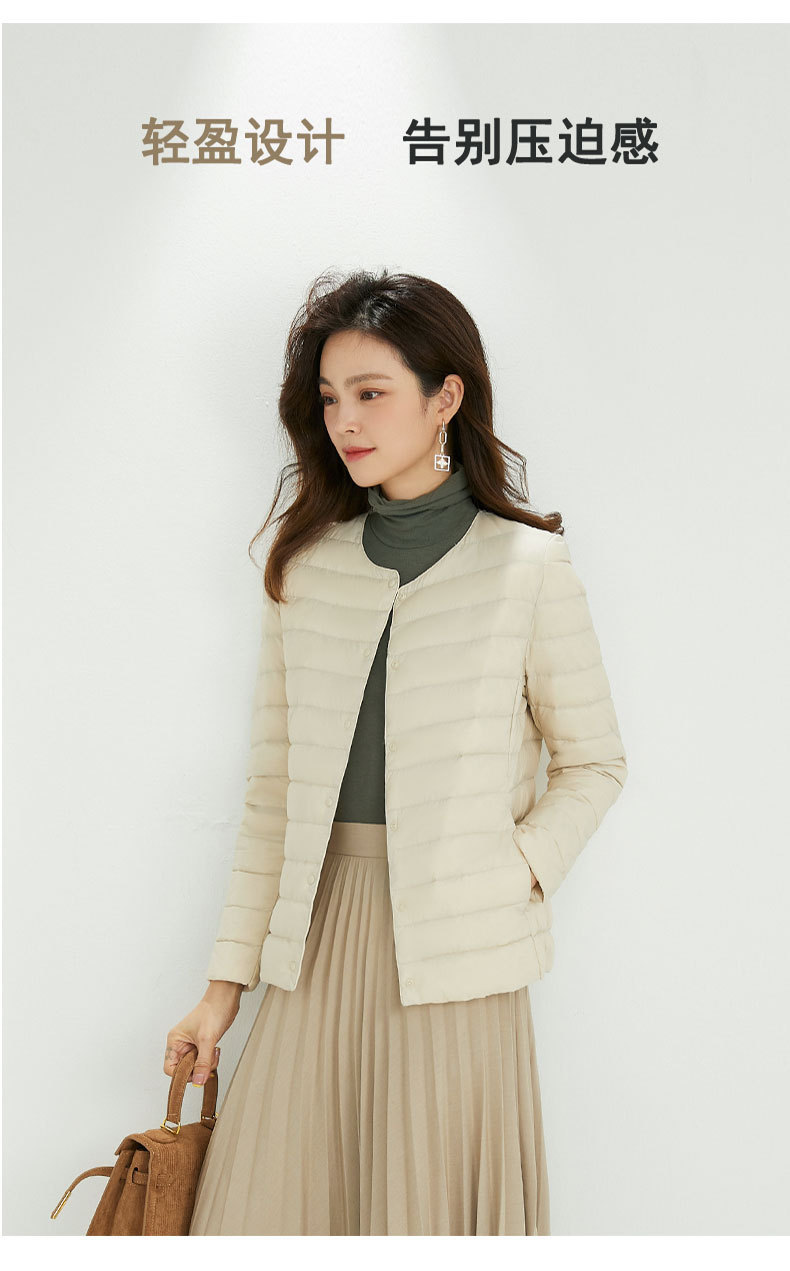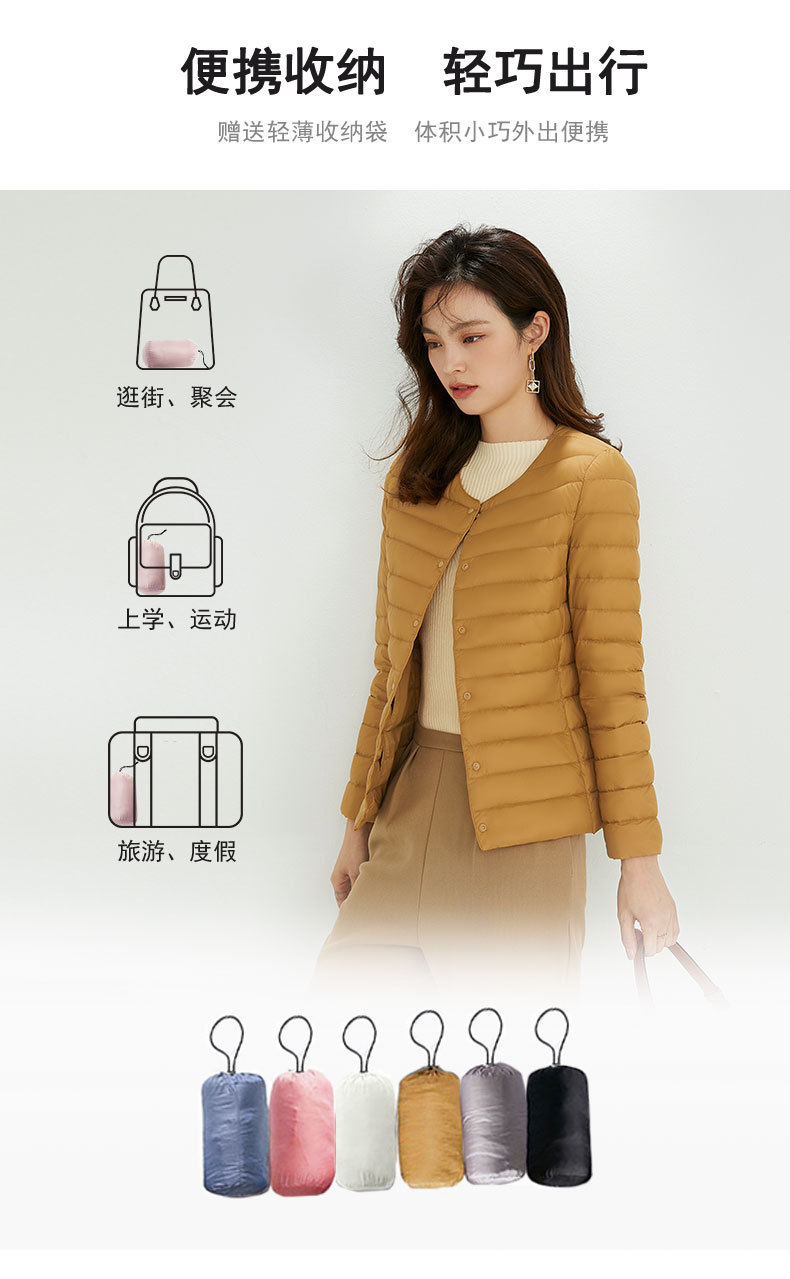 여성용 다운 재킷 경량형 2025년 신상 가을 겨울 짧은 스타일 보온 다운 안감 여성용 라운드넥 초경량 재킷