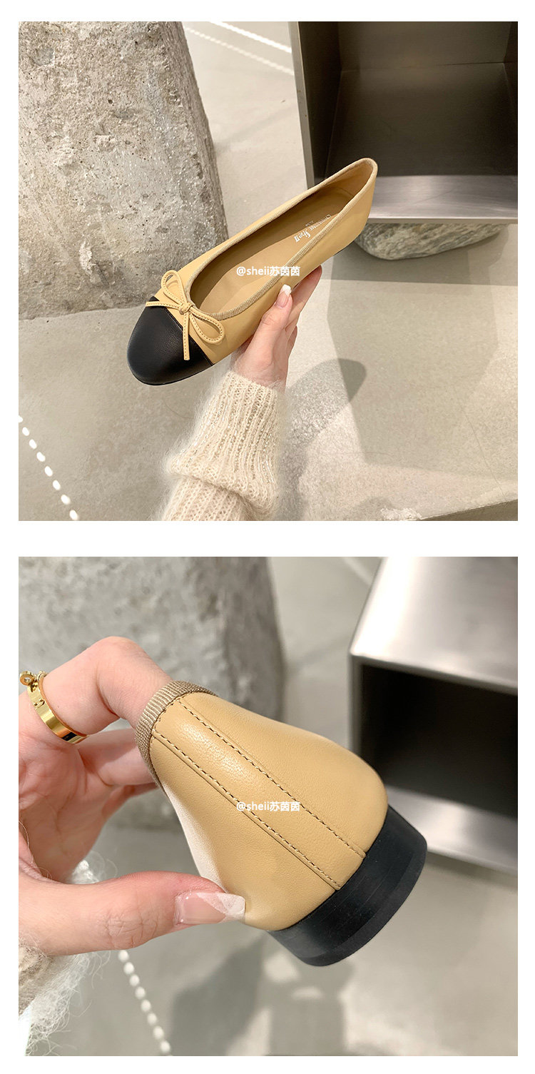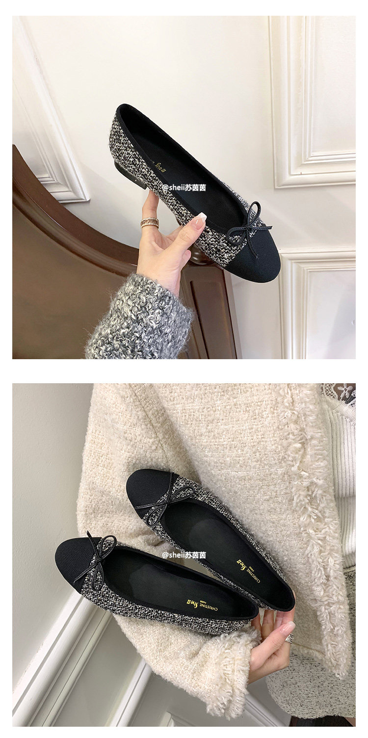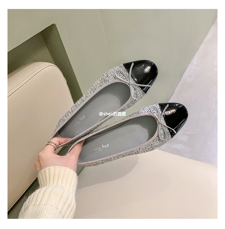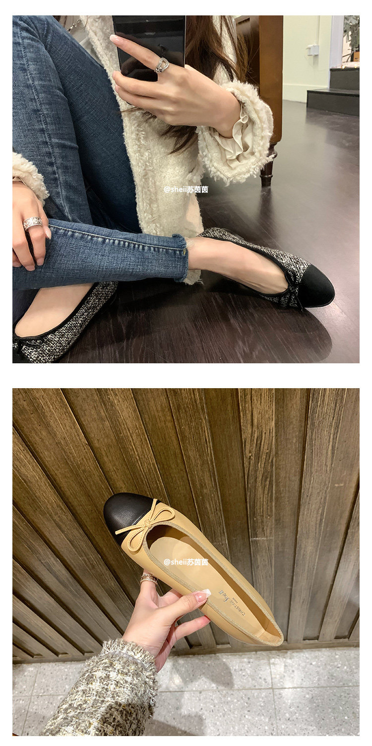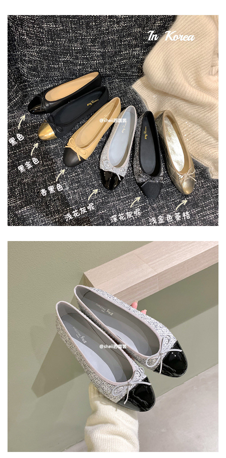 2024 새로운 색상 재현 ~ 작은 Xiangfeng 라운드 헤드 컬러 활 얕은 입 싱글 신발 여성 플랫 신발 할머니 싱글 신발