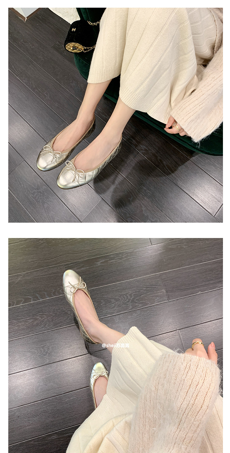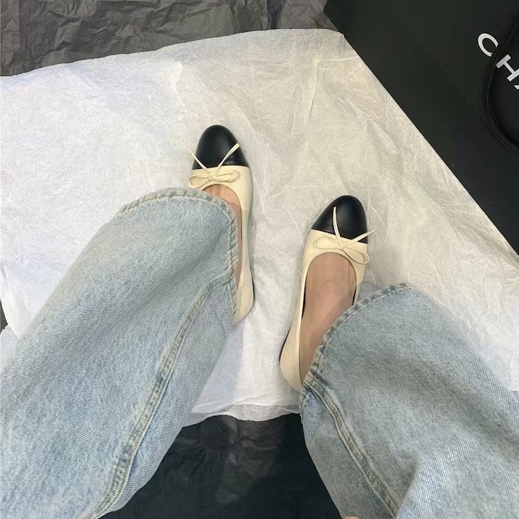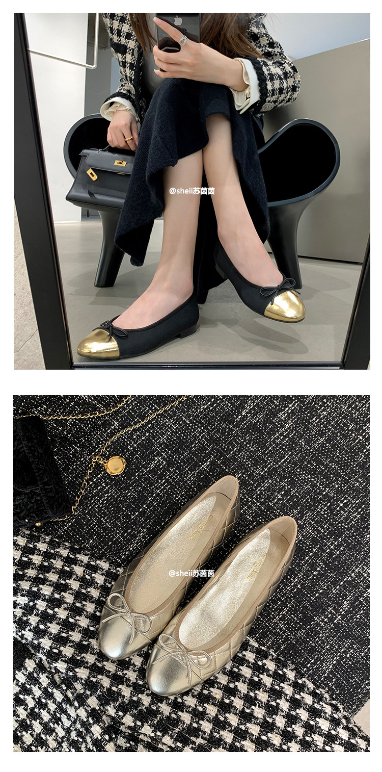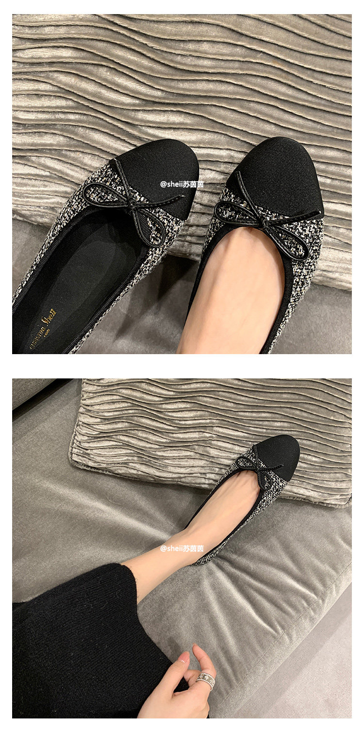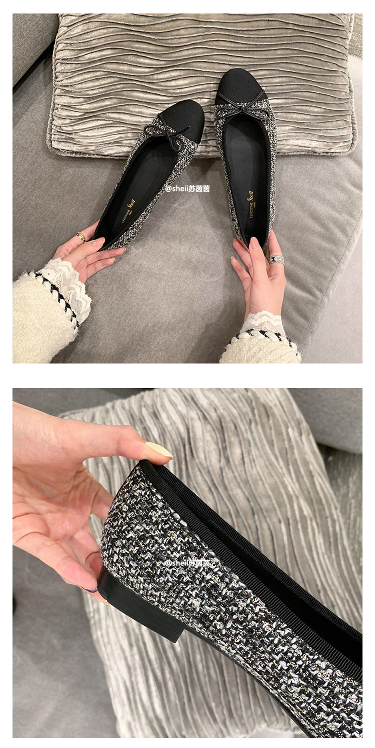 2024 새로운 색상 재현 ~ 작은 Xiangfeng 라운드 헤드 컬러 활 얕은 입 싱글 신발 여성 플랫 신발 할머니 싱글 신발