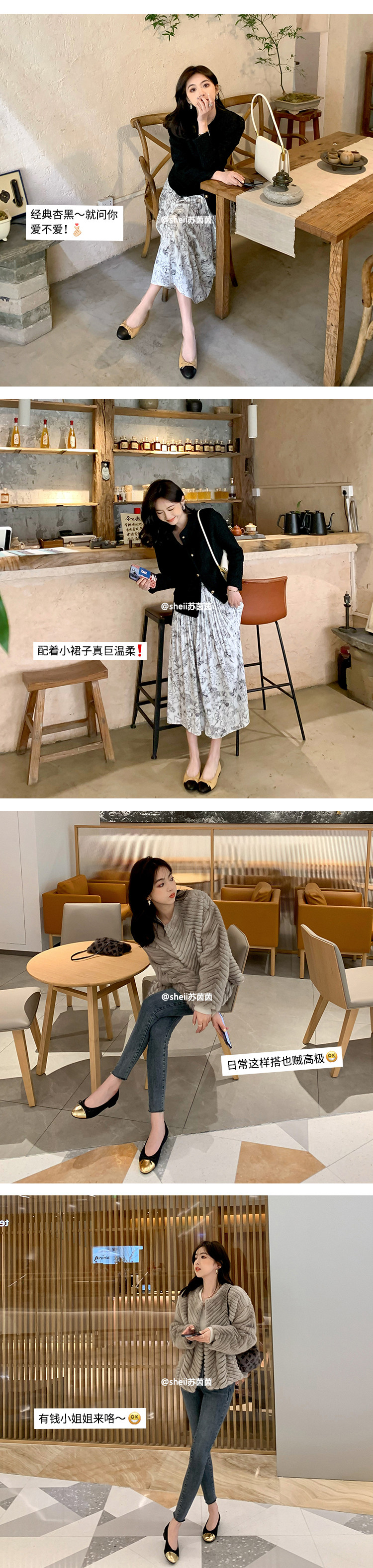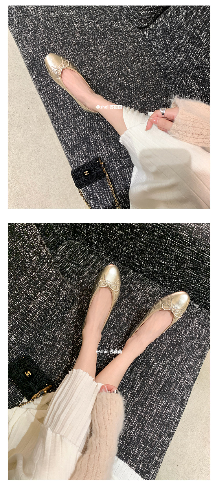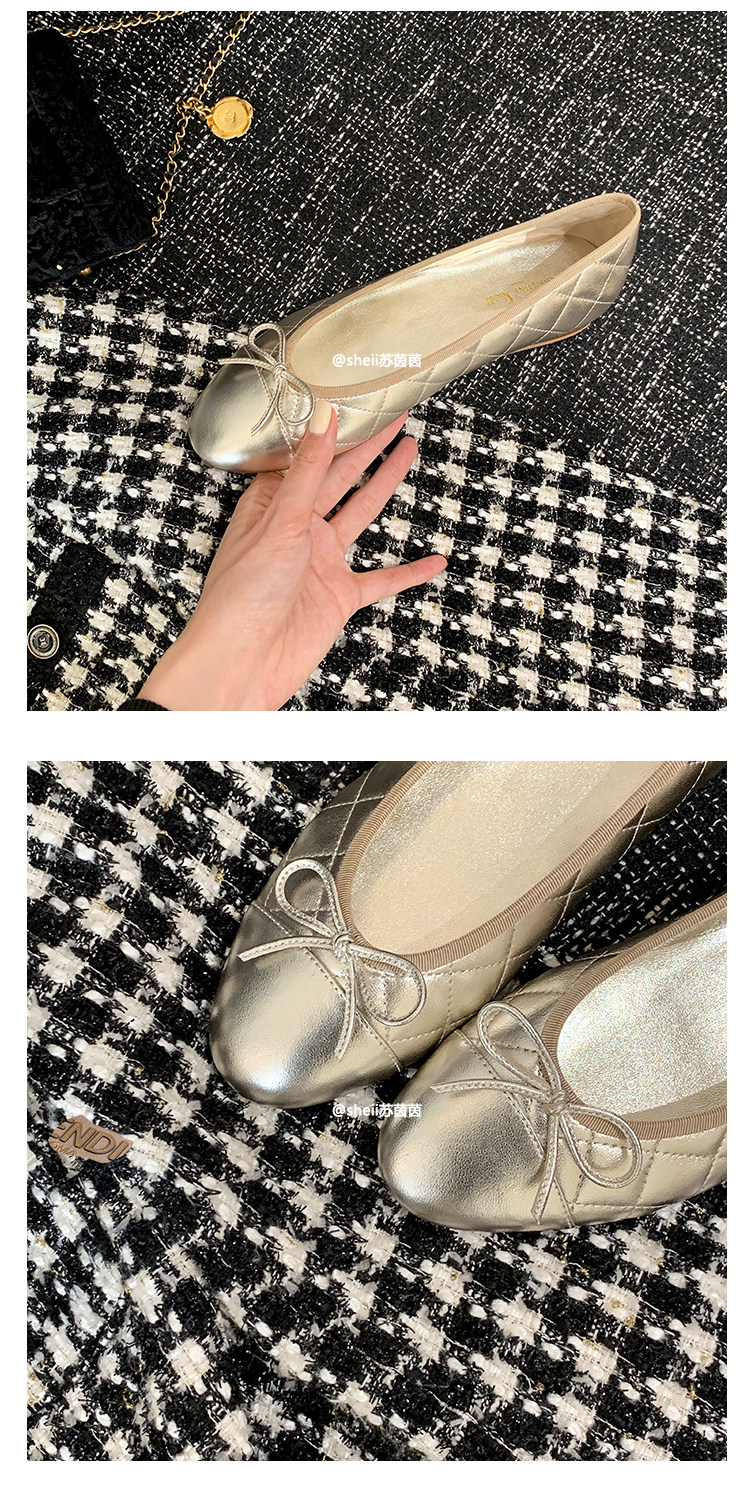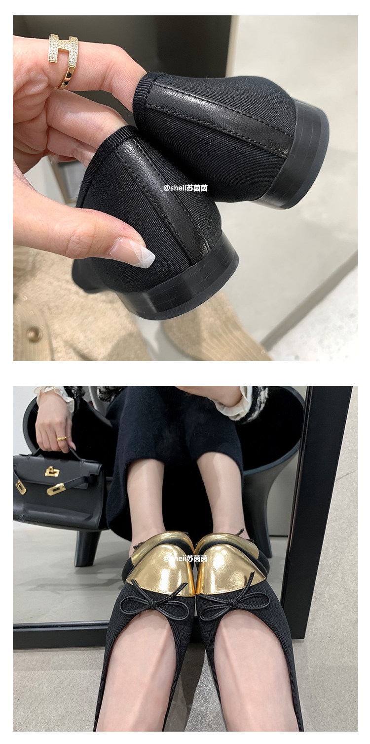 2024 새로운 색상 재현 ~ 작은 Xiangfeng 라운드 헤드 컬러 활 얕은 입 싱글 신발 여성 플랫 신발 할머니 싱글 신발