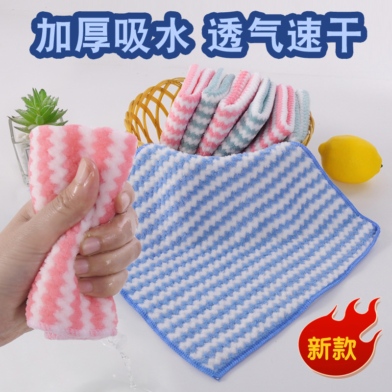 산호 양털 식기 세척 타월 두꺼운 줄무늬 주방 청소 천 흡수 손 닦기 작은 사각형 수세미 인쇄 로고