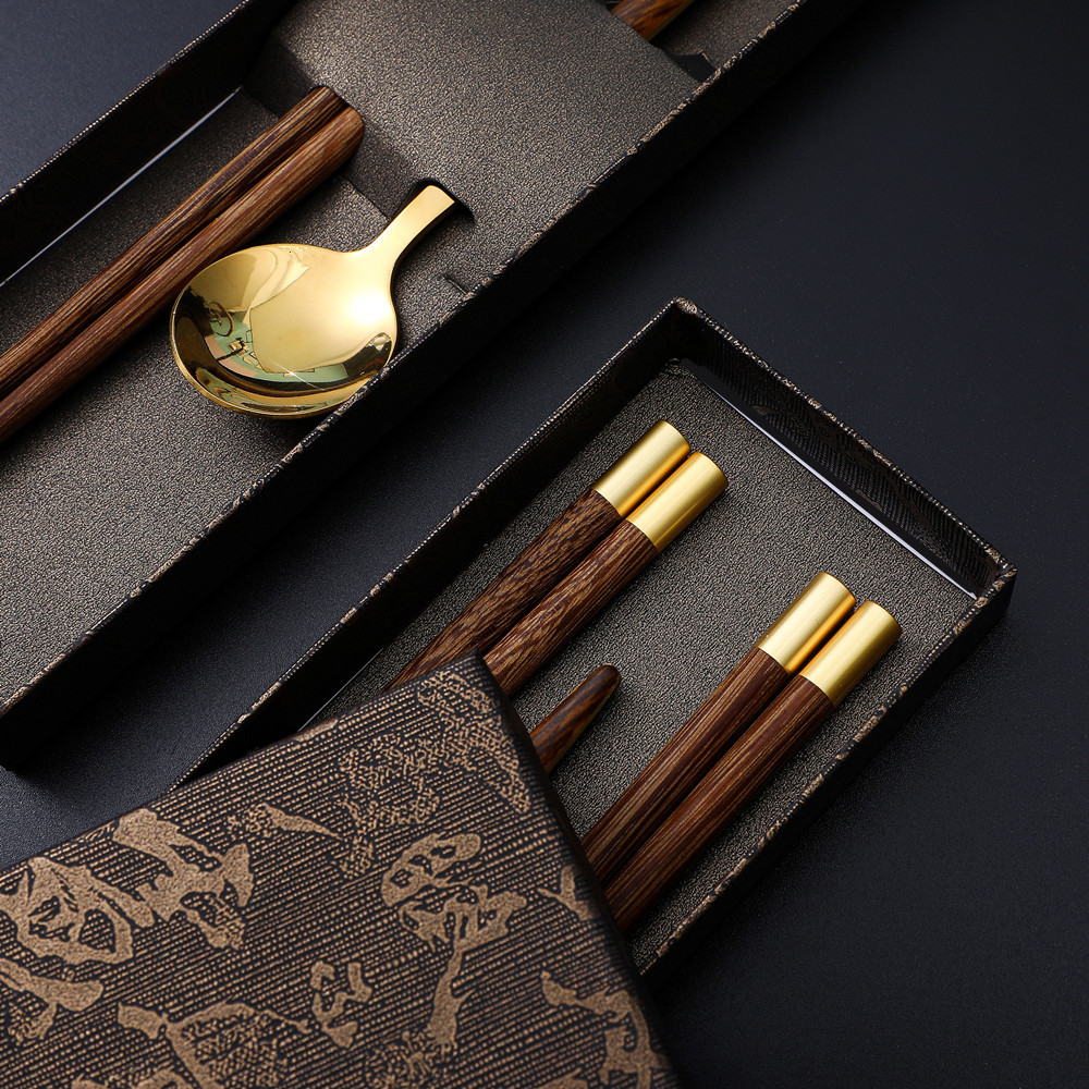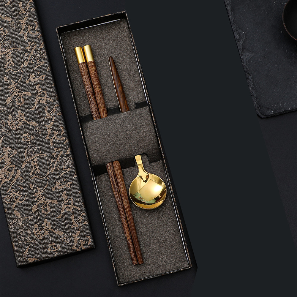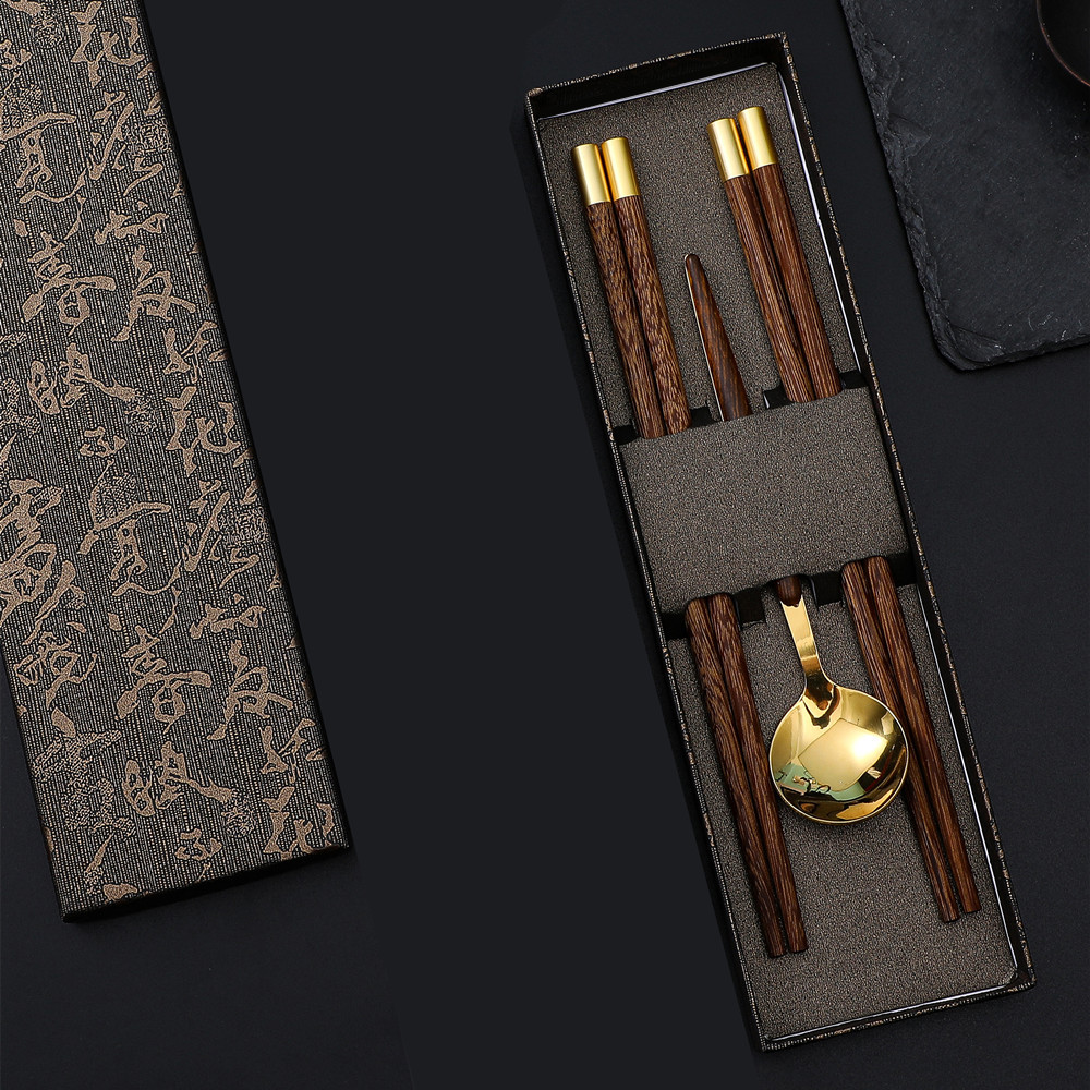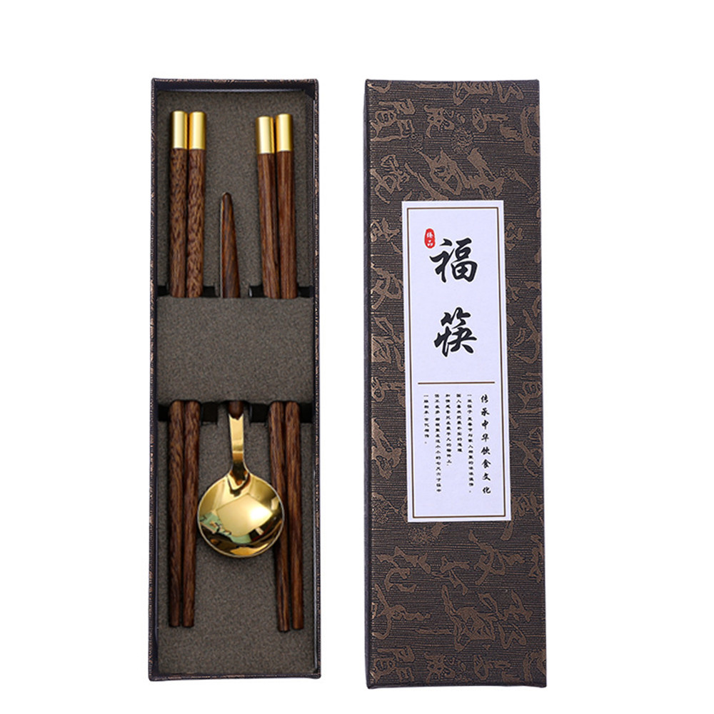 돔 축복 어린이 닭 날개 나무 젓가락 숟가락 상자 휴대용 식기 스테인레스 모조 나무 손잡이 숟가락 세트 도매