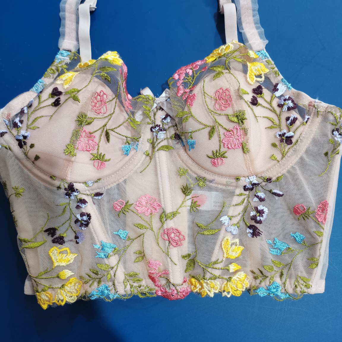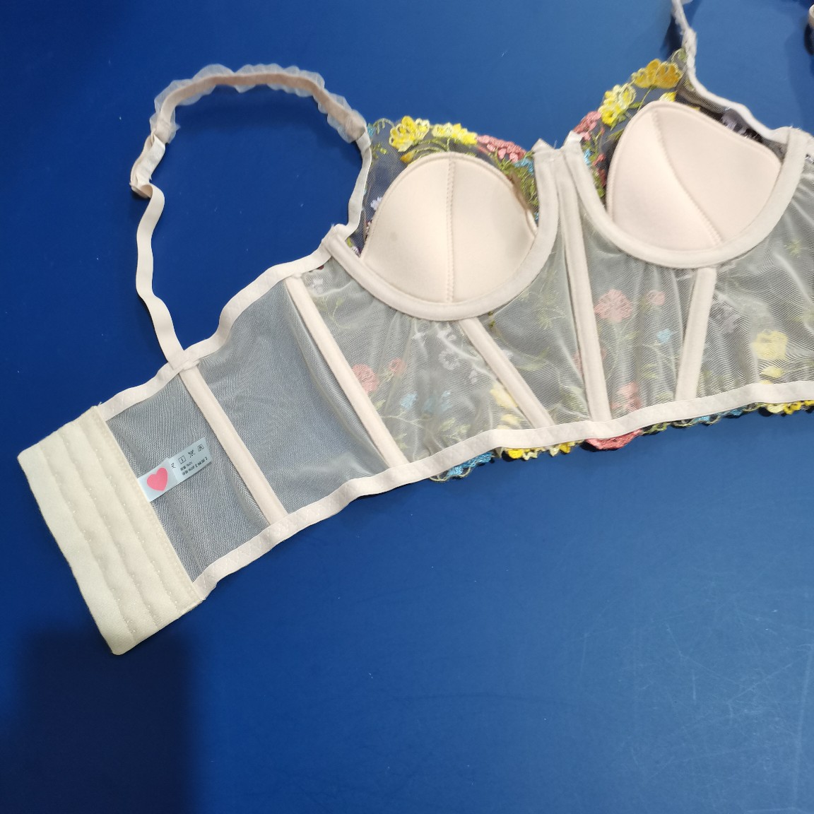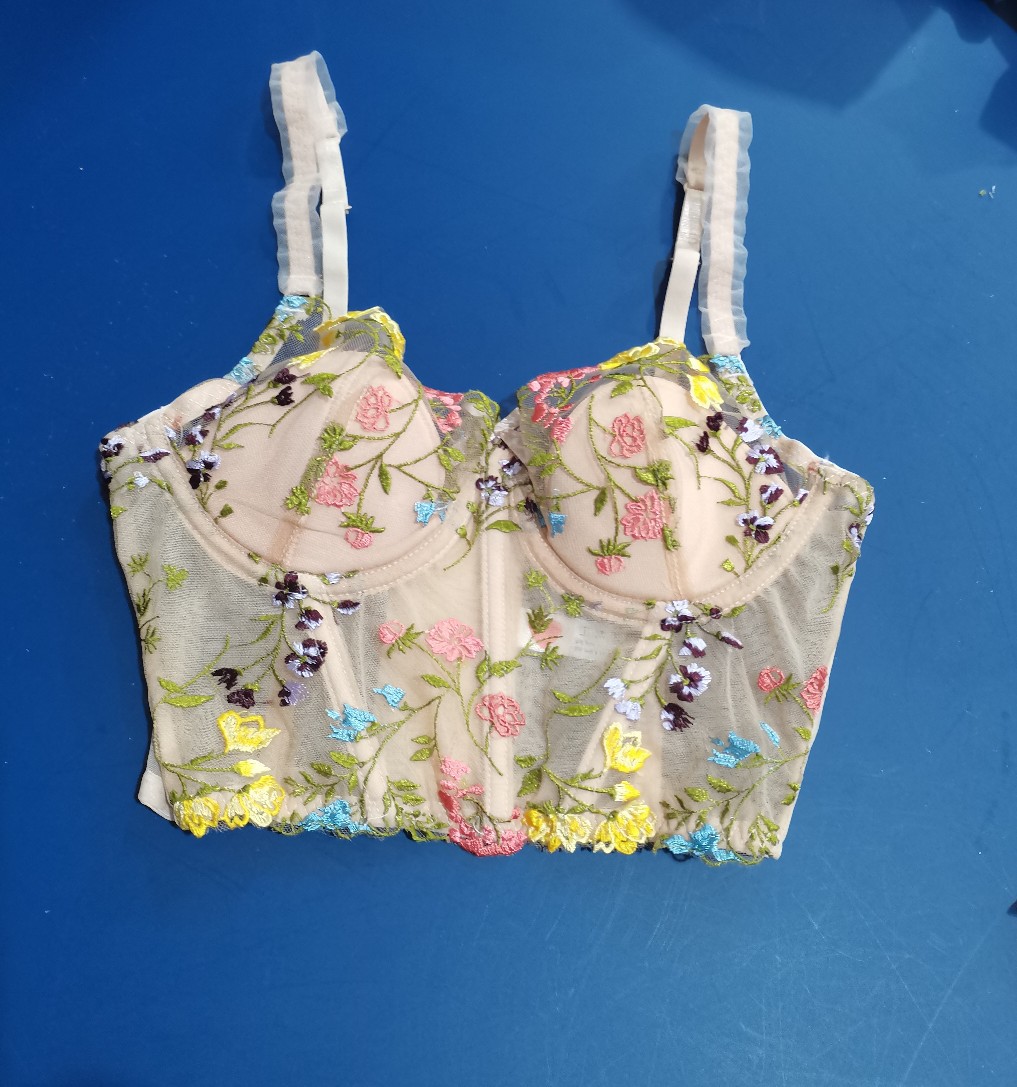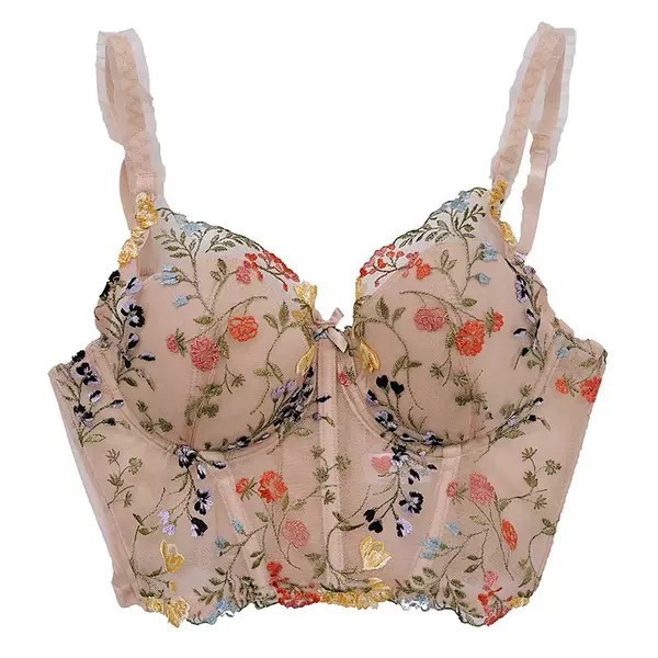 섹시한 프랑스 브래지어 세트 꽃 자수 다채로운 브래지어 순수한 욕망 소녀의 작은 가슴 쇼 큰 강철 반지 속옷