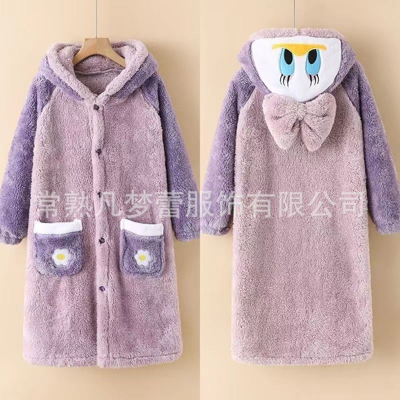 2023 두꺼운 면 벨벳 잠옷 후드 여성용 긴팔 따뜻한 홈웨어 세트 커플 겨울용 두꺼운