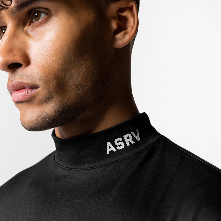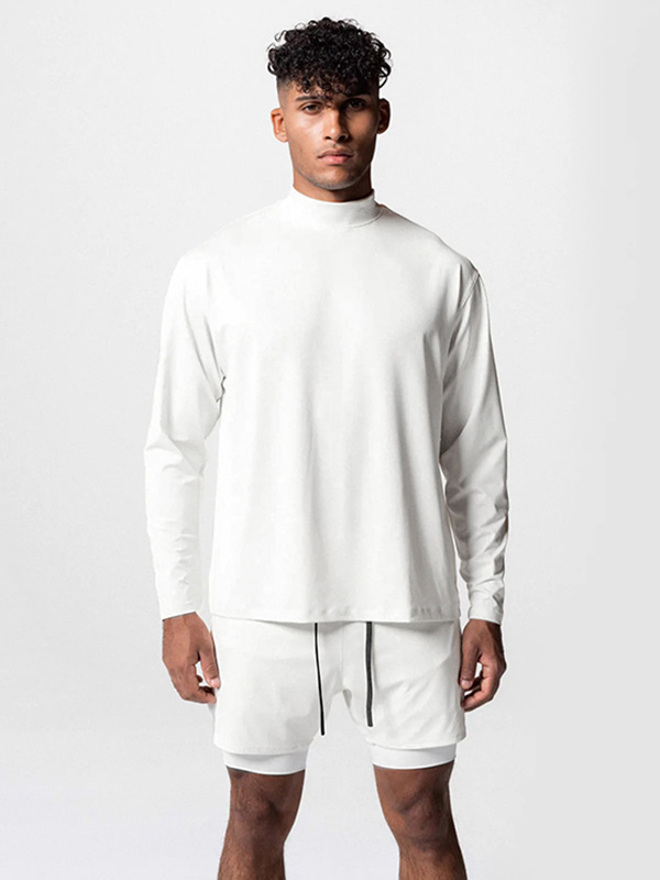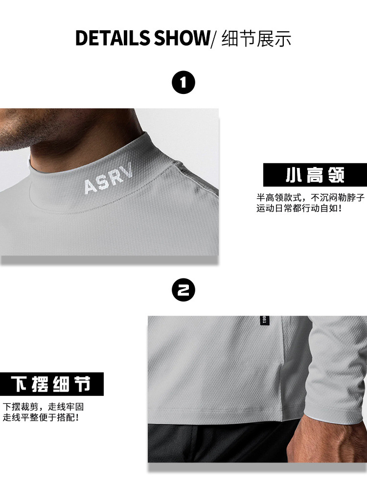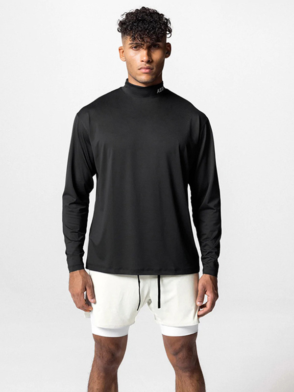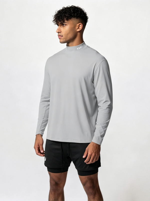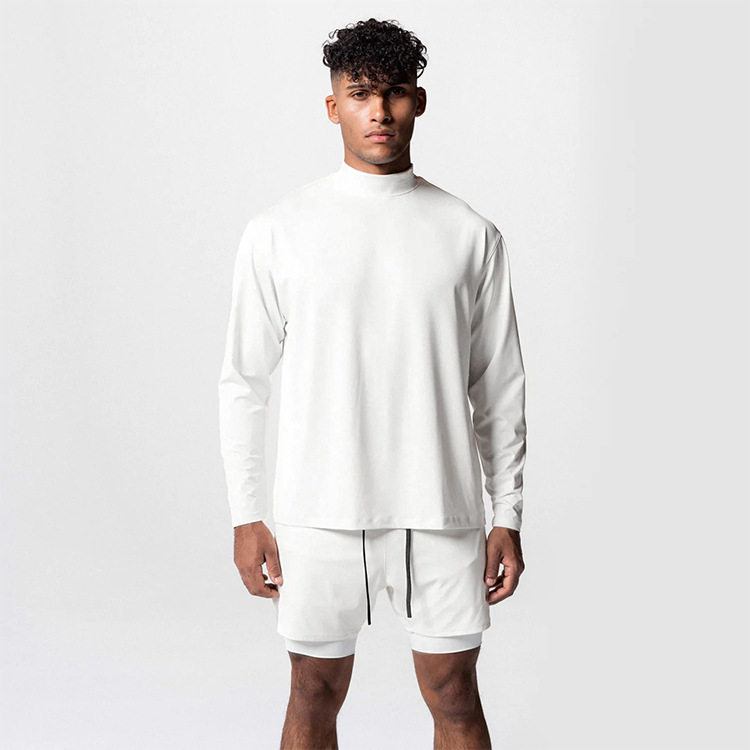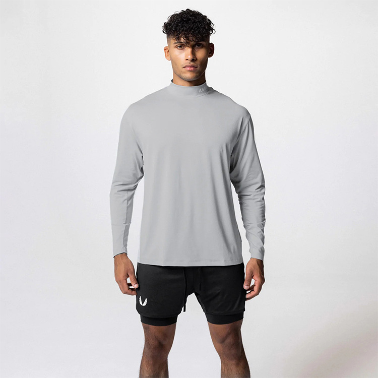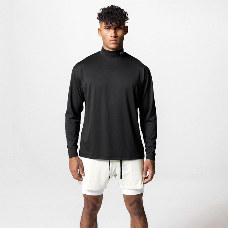 크로스보더 남성복 봄, 가을 남성용 긴팔 티셔츠 미국 스타일 청년용 속건 통기성 하이넥 스포츠 티셔츠 베이스 레이어 남성용