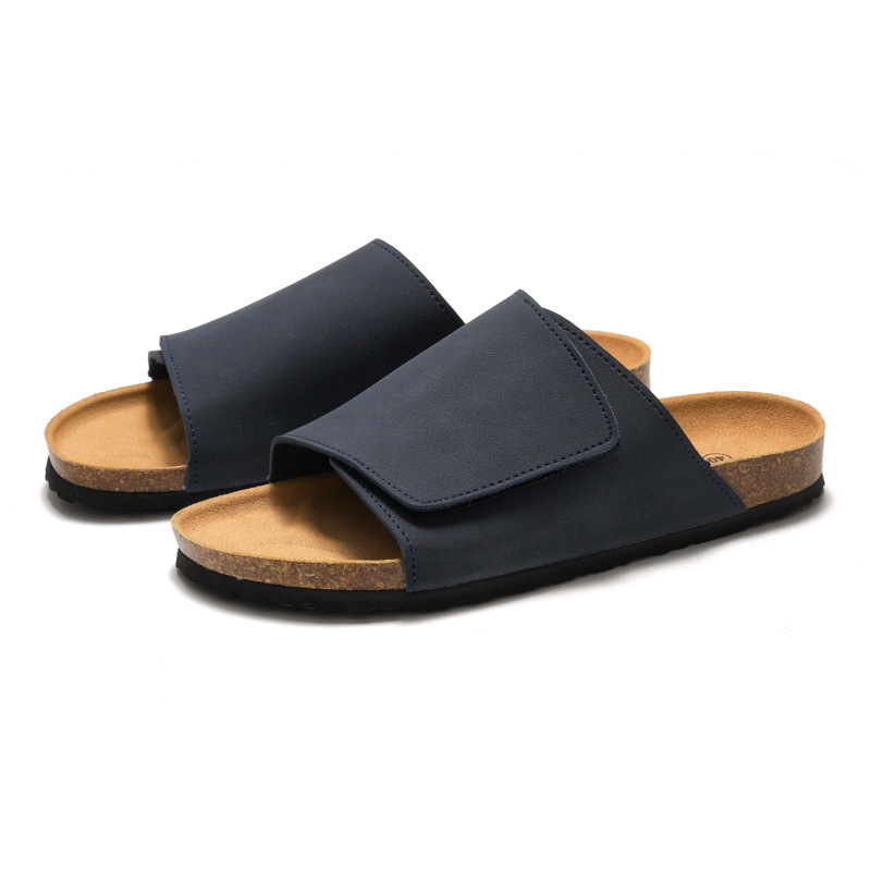 RUIZUSTOCK 남성용 코르크 슬리퍼 트렌디 학생 한 단어 슬리퍼 남성용 샌디 가죽 비치 신발