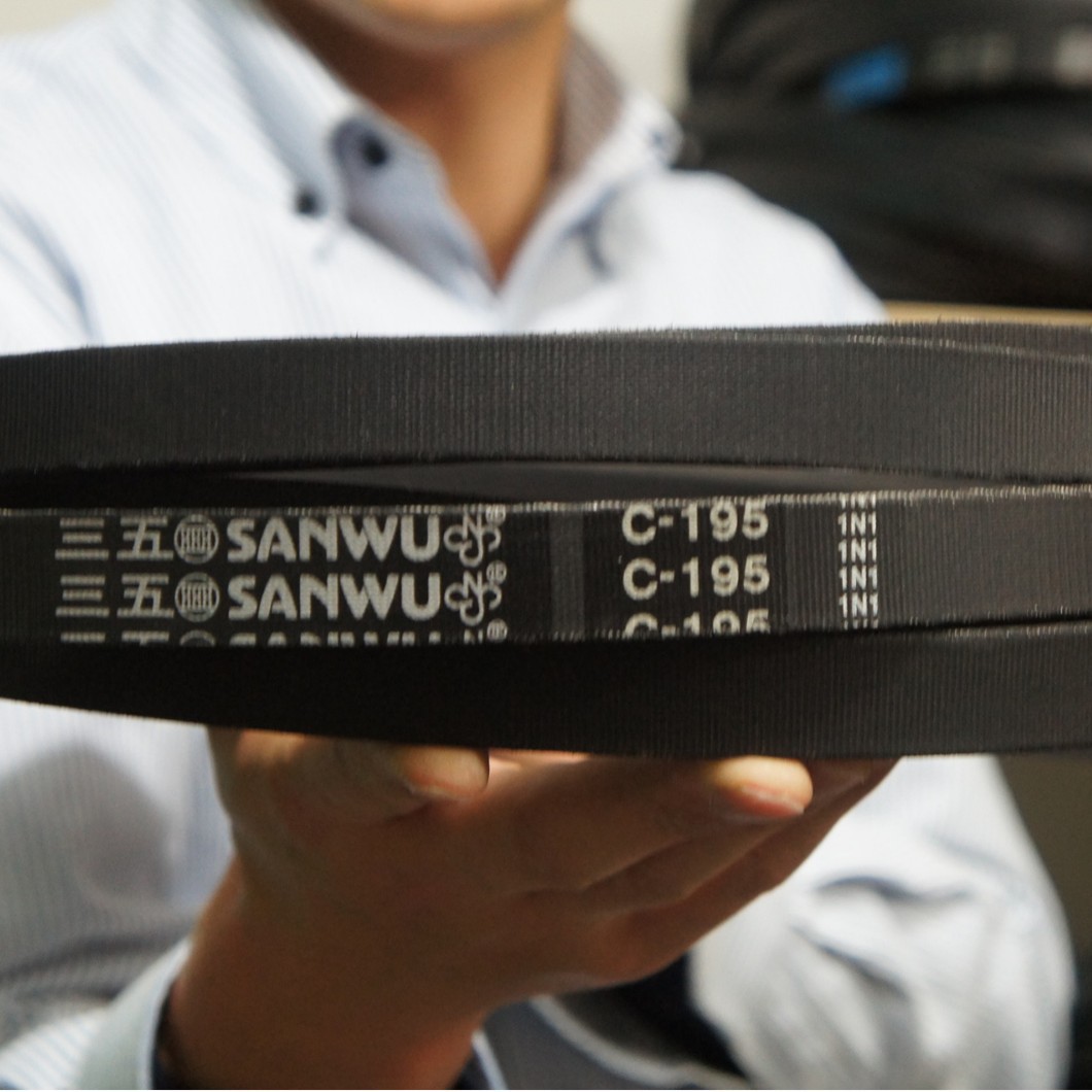 按照断面尺寸,三角带可分为产业机械用的Y、O、A、B、C、D、E七种工业型号和汽车、拖拉机等用的各类风扇带,共计两大类别。Y、O型为-小的V型带,主要用于打字机、切书机等办公设备、家电制品(洗衣机、榨汁器、吸尘器)。一般产业机械,随着马力的增大,顺序使用A、B、C、D、E等V型带,其中D、E型为重型带,用于船舶、电力等大型机械。至于风扇带,除了汽车、拖拉机之外,还大量用在水泵、空调等方面。在发达,三角带与风扇带的生产比率已达到2:1-3:2的程度,风扇带呈现明显上升的势头。