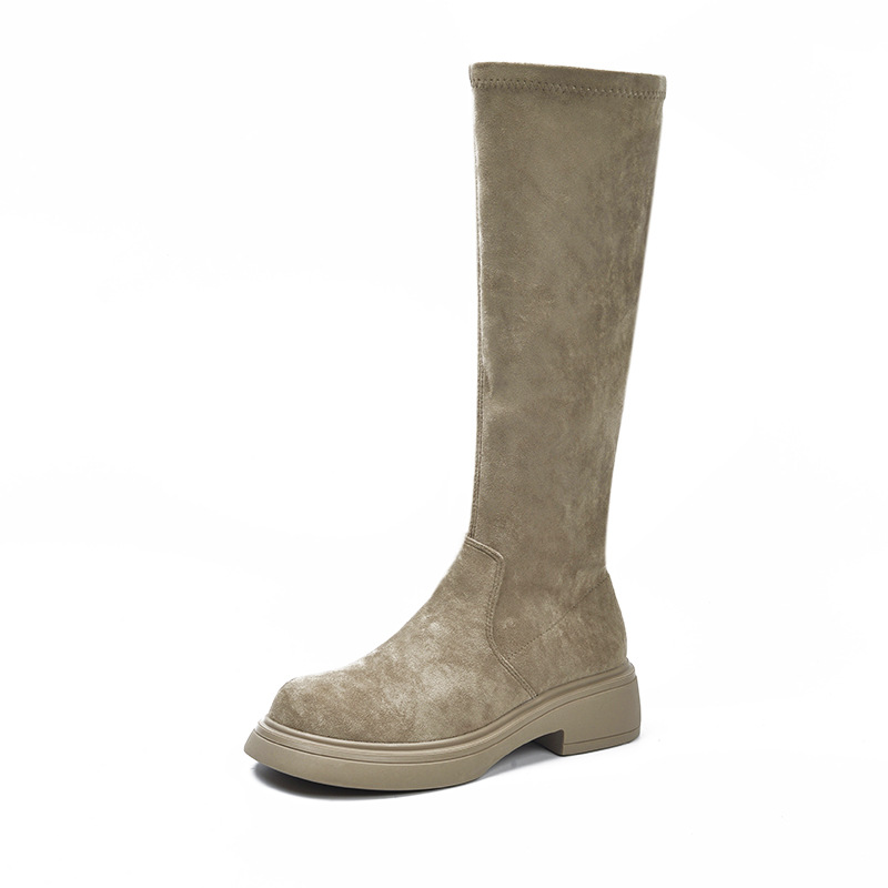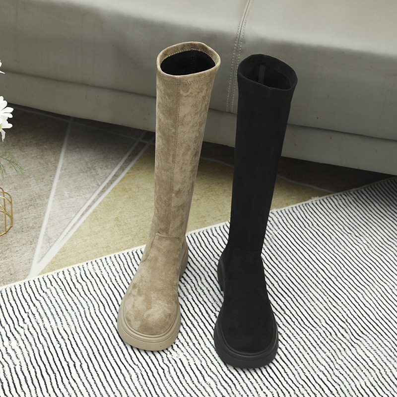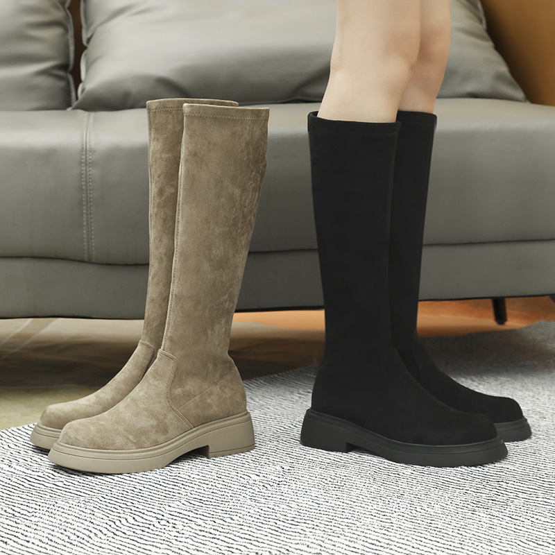 실키 스웨이드 롱 부츠 여성용 2023 가을 겨울 롱 부츠 레트로 스트레치 라이더 부츠 다리 세련된 얇은 하이 부츠