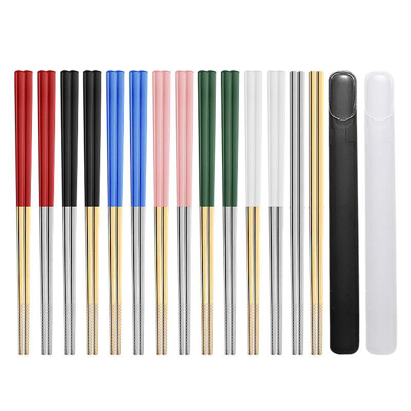 304/316 스테인레스 스틸 젓가락 사각 미끄럼 방지 단열 가정용 젓가락 호텔 식기 젓가락 편리한 선물