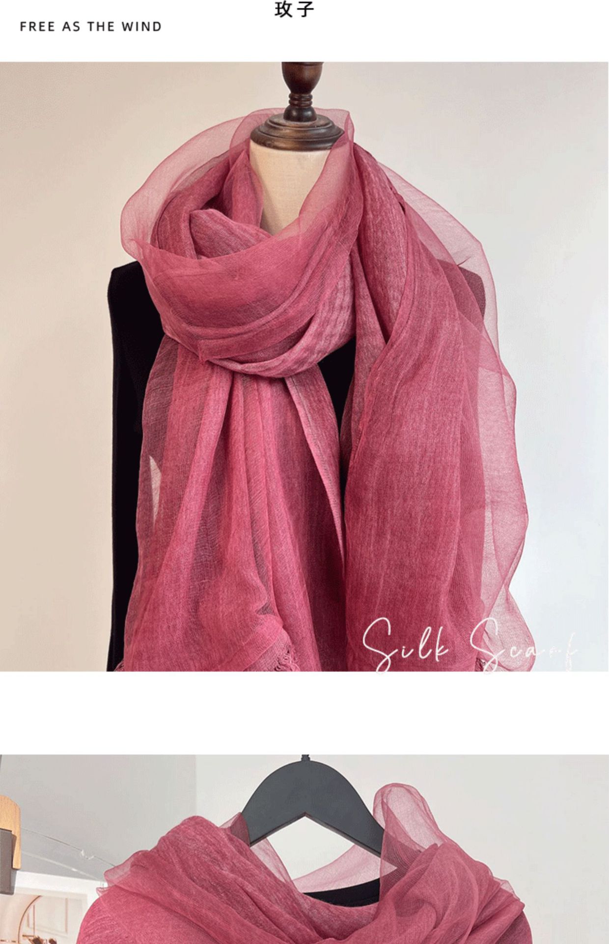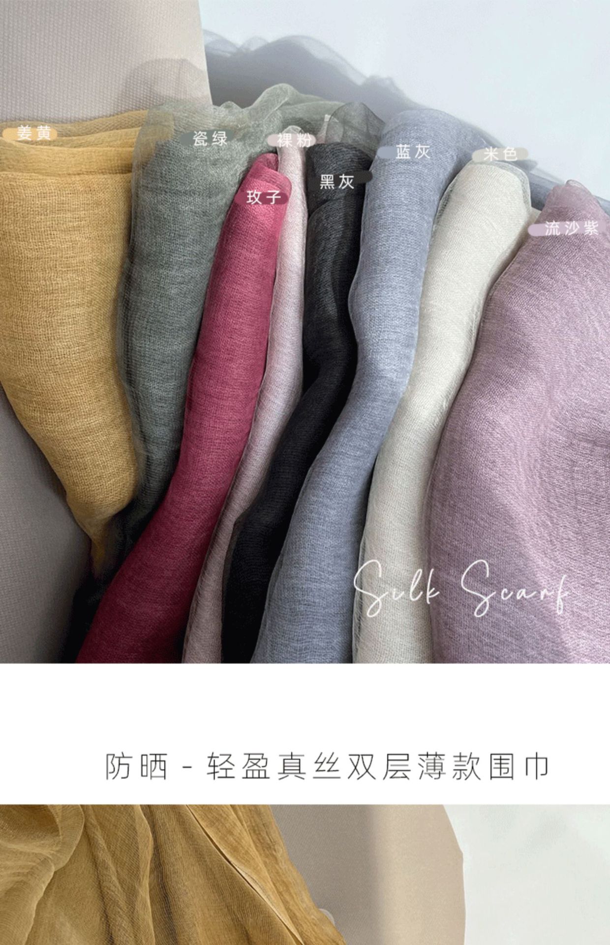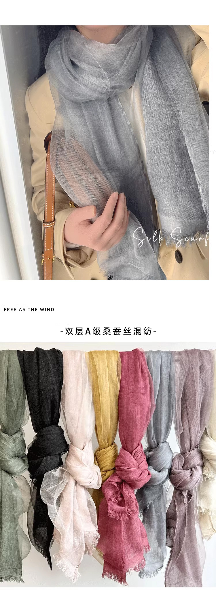 우아하고 편안한 ~ 뽕나무 실크 얇은 스카프 자외선 차단 여행 목도리 이중 목적 여성 봄, 가을 거즈 스카프 패션 실크 스카프
