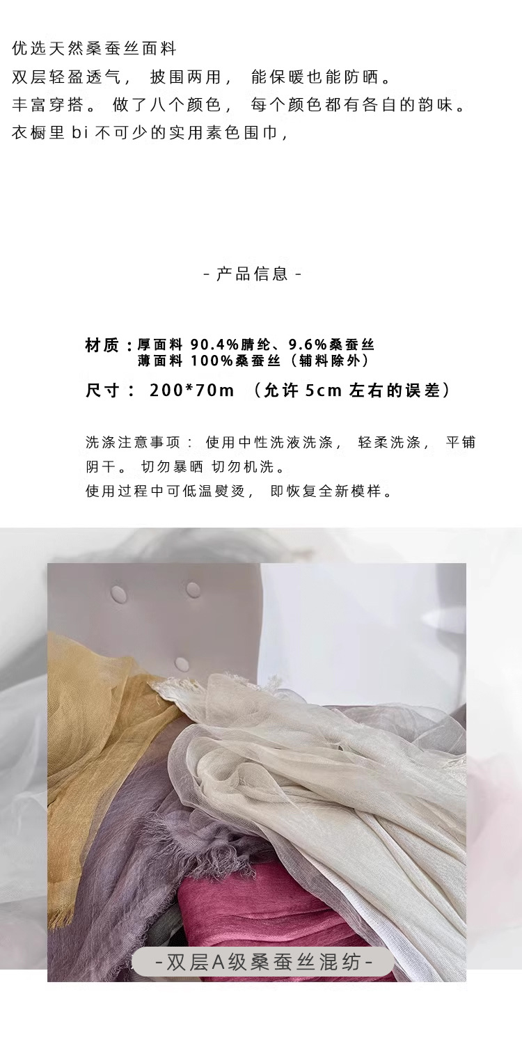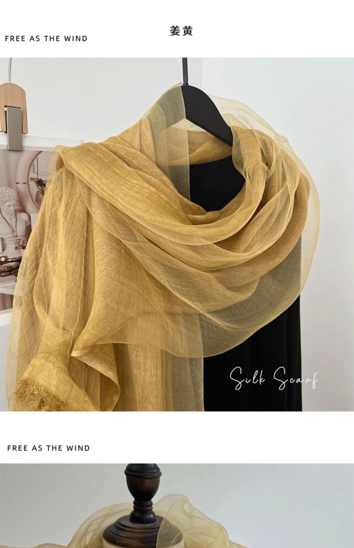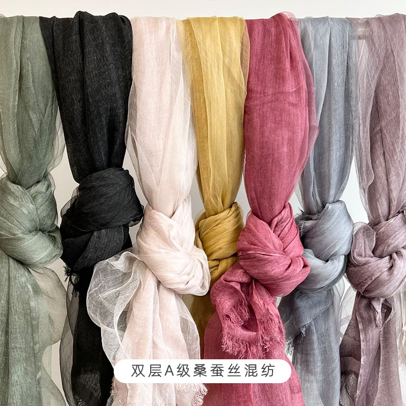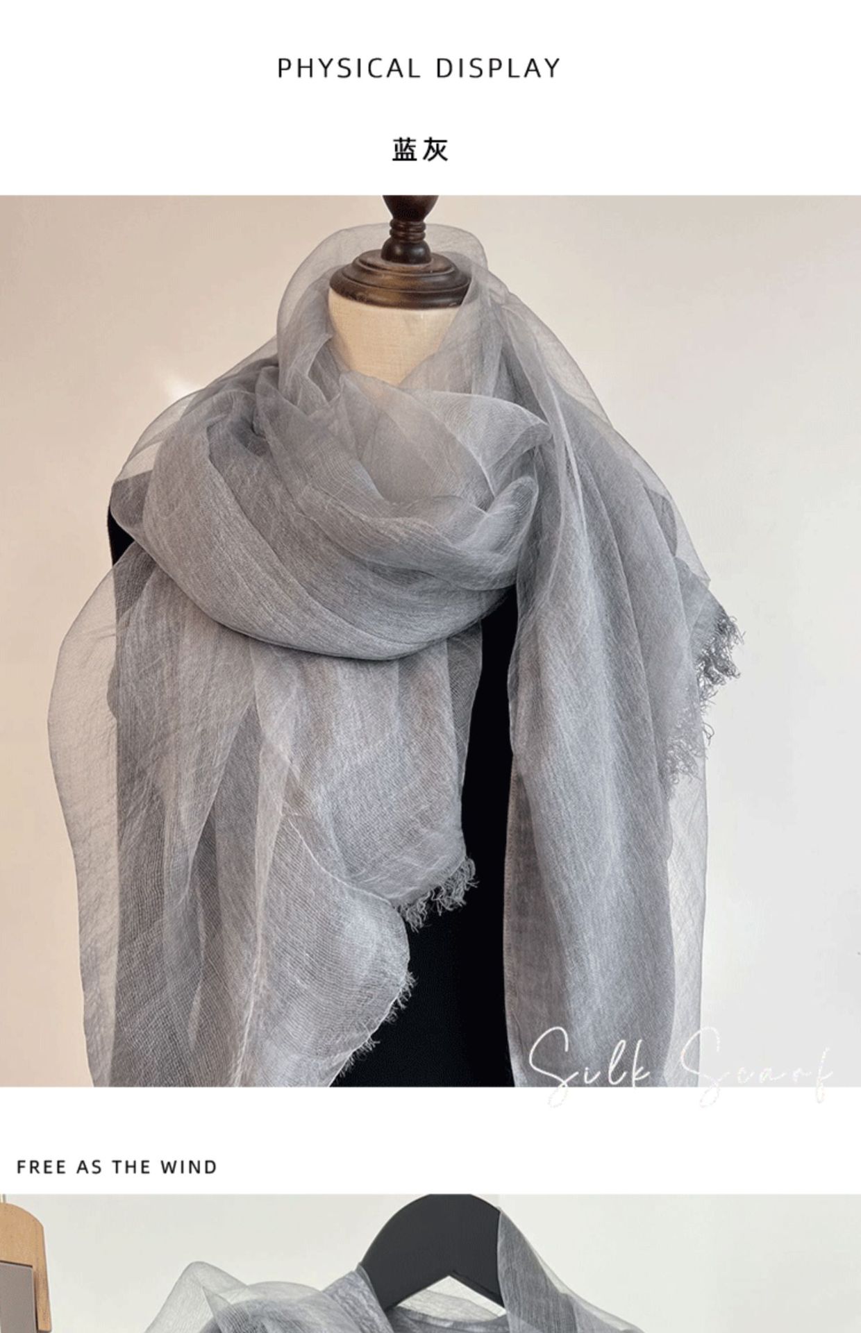 우아하고 편안한 ~ 뽕나무 실크 얇은 스카프 자외선 차단 여행 목도리 이중 목적 여성 봄, 가을 거즈 스카프 패션 실크 스카프
