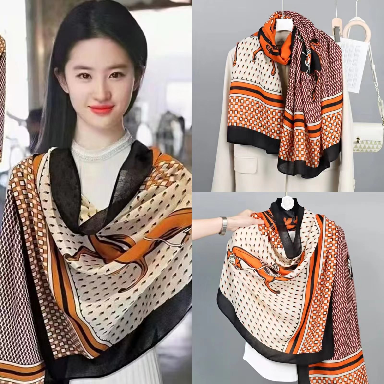 스타 스카프 여성용 여름 한국식 올매치 에어컨 숄 우아한 면과 린넨 여행용 자외선 차단제 이중 사용 얇은 스카프