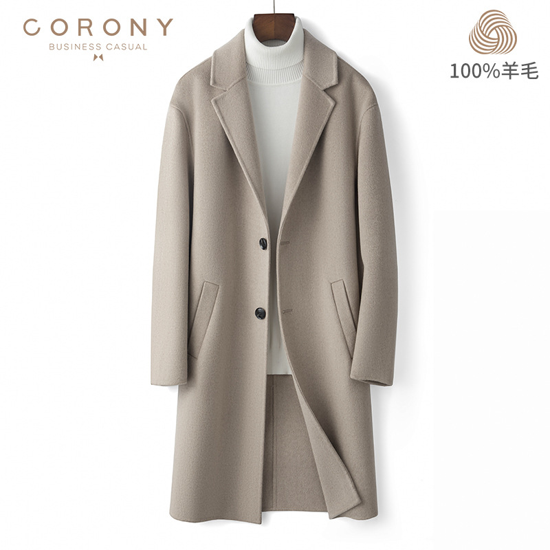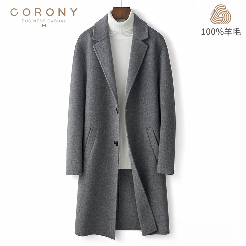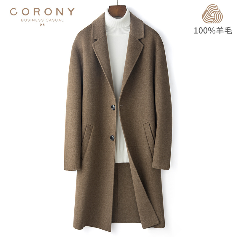2022 가을과 겨울 새로운 모직 코트 양면 모직 코트 긴 고급 비즈니스 모직 트렌치 코트 남성