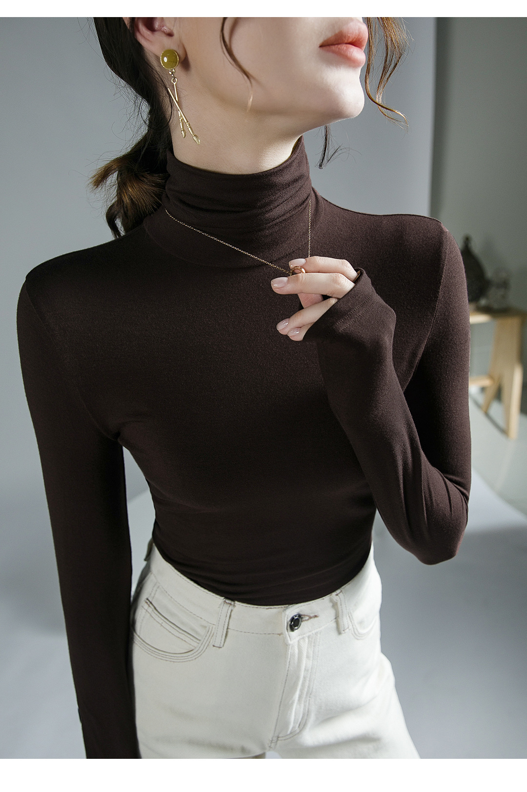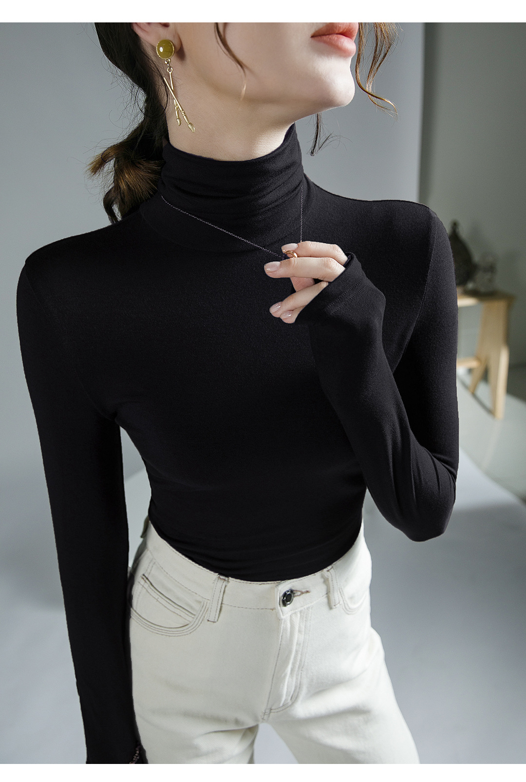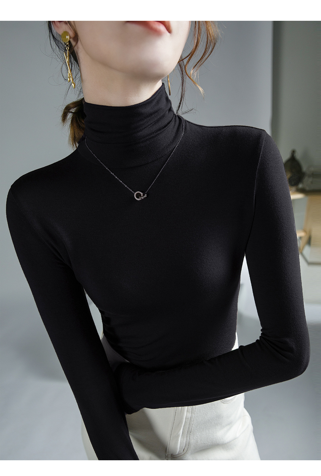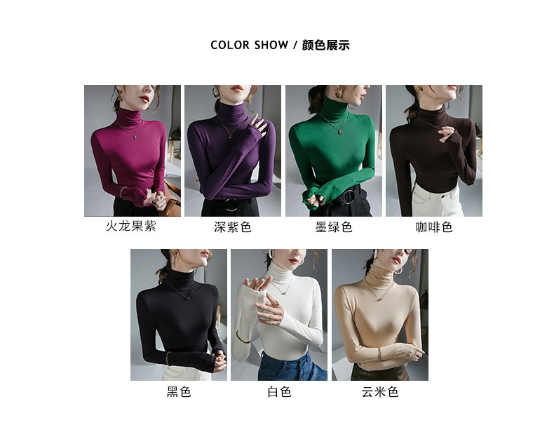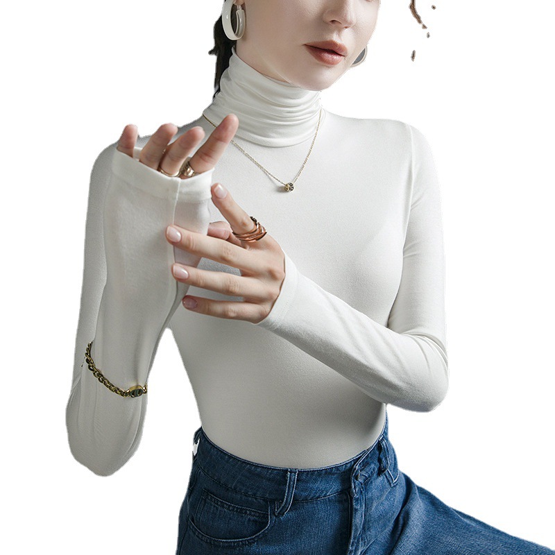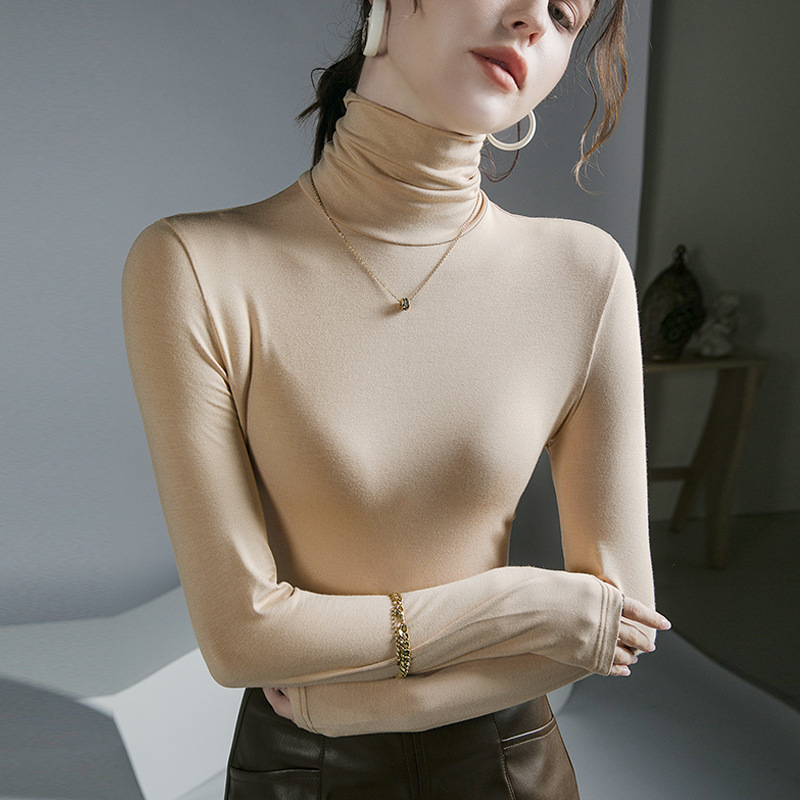 하이 칼라 티셔츠 여성의 가을과 겨울 새로운 내베이스 셔츠 스트레치 올 매치 긴팔 스타일