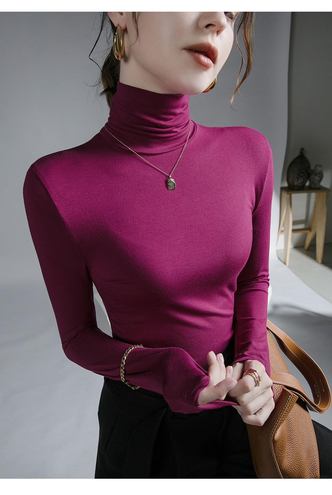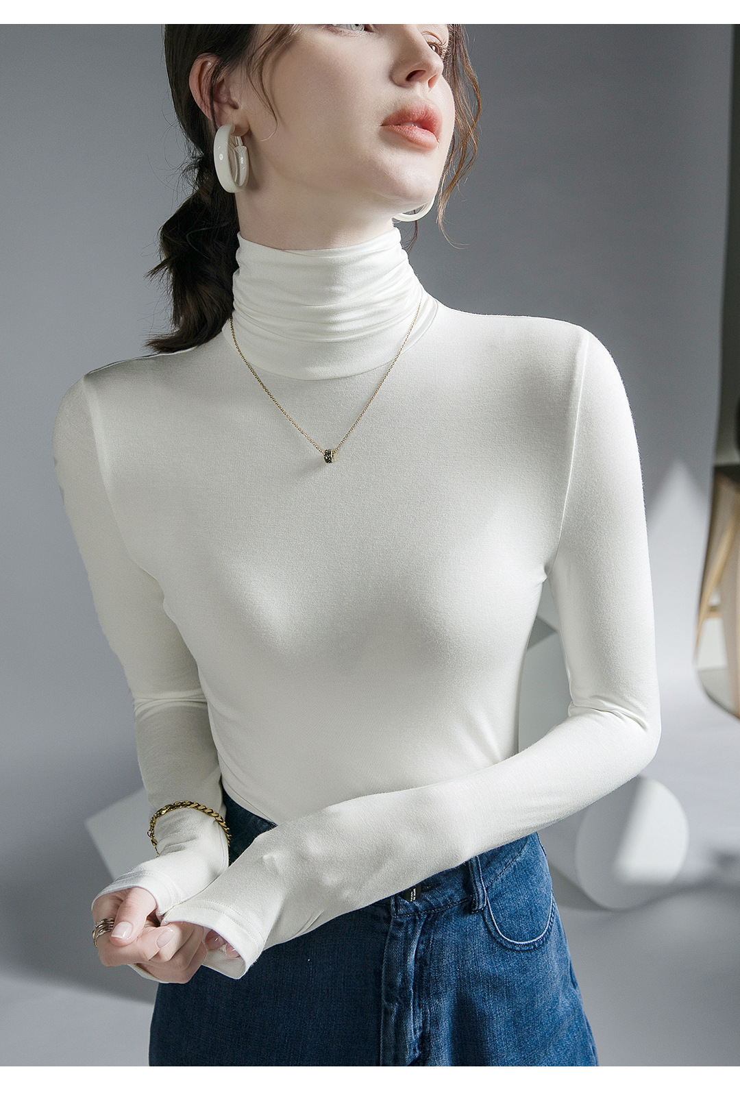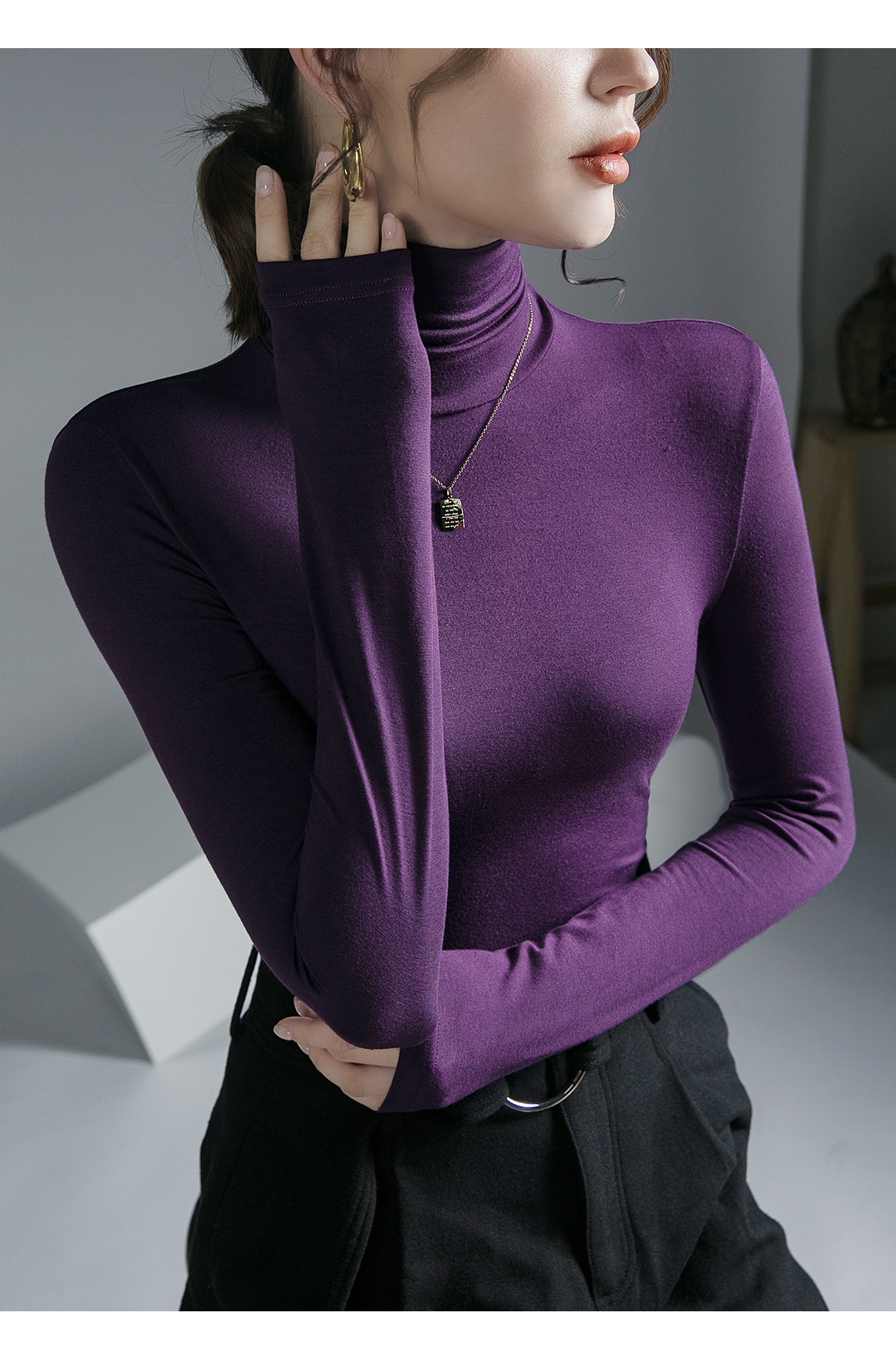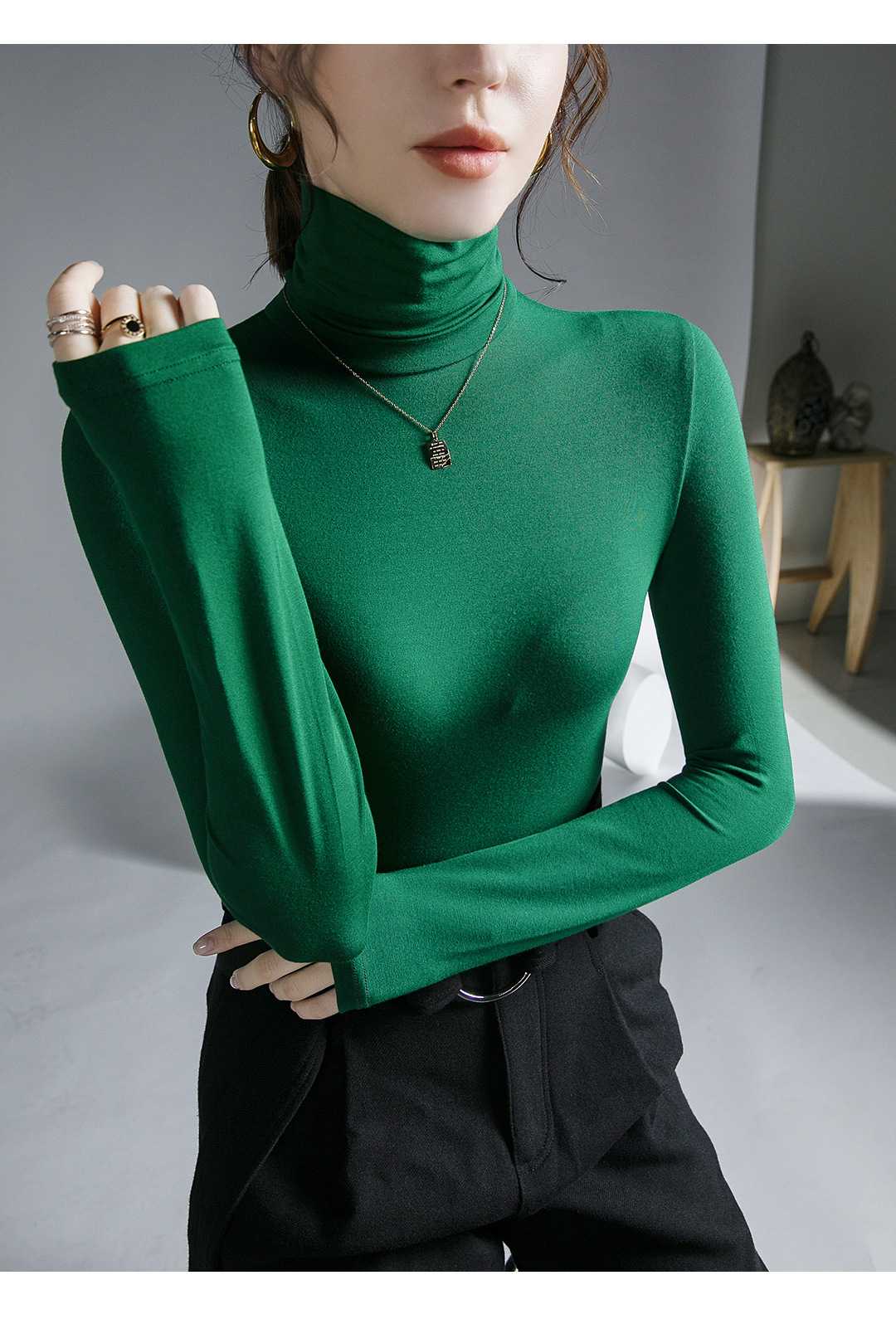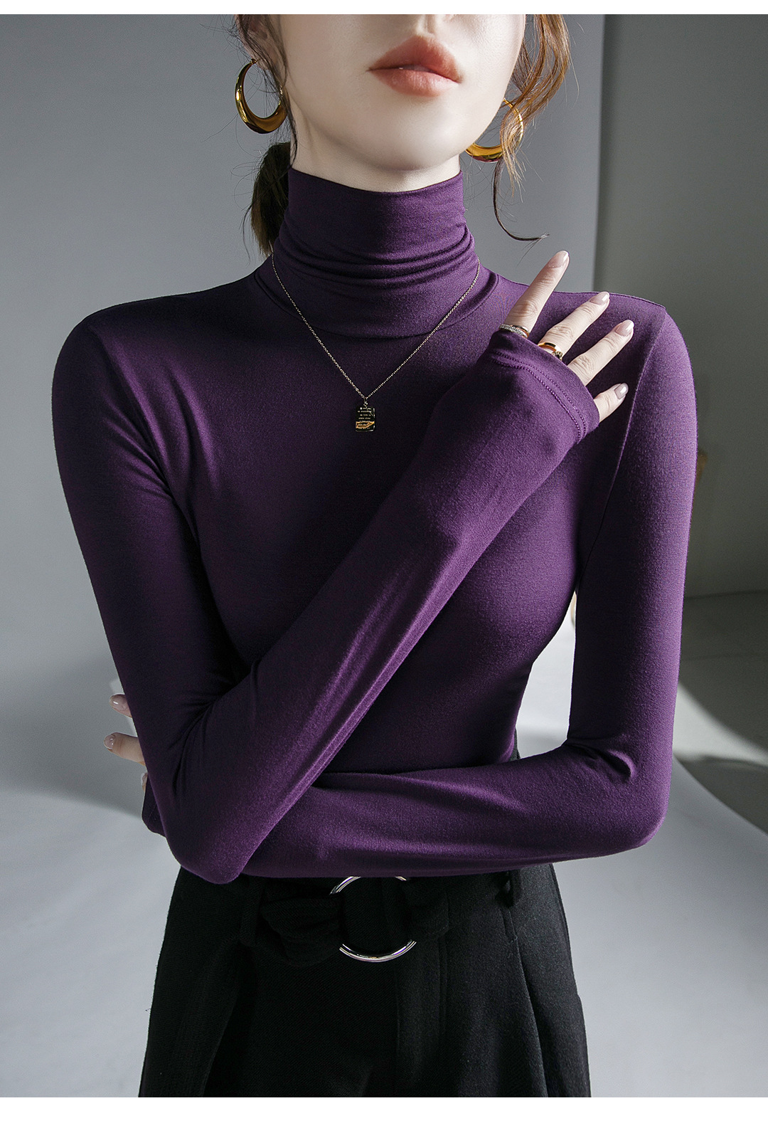 하이 칼라 티셔츠 여성의 가을과 겨울 새로운 내베이스 셔츠 스트레치 올 매치 긴팔 스타일