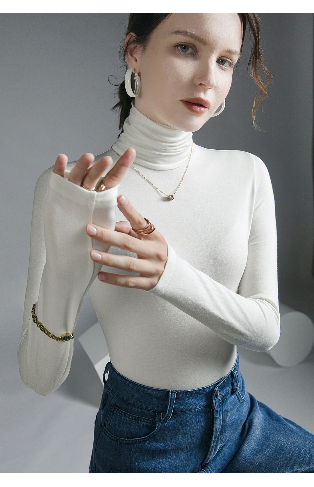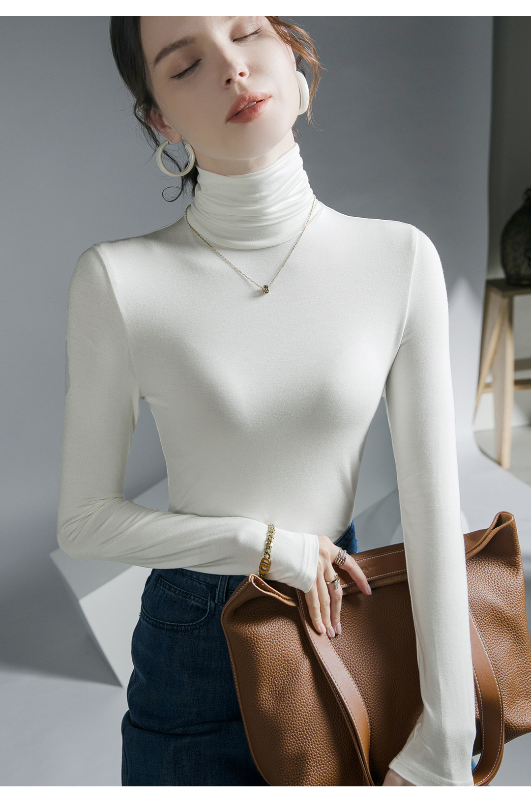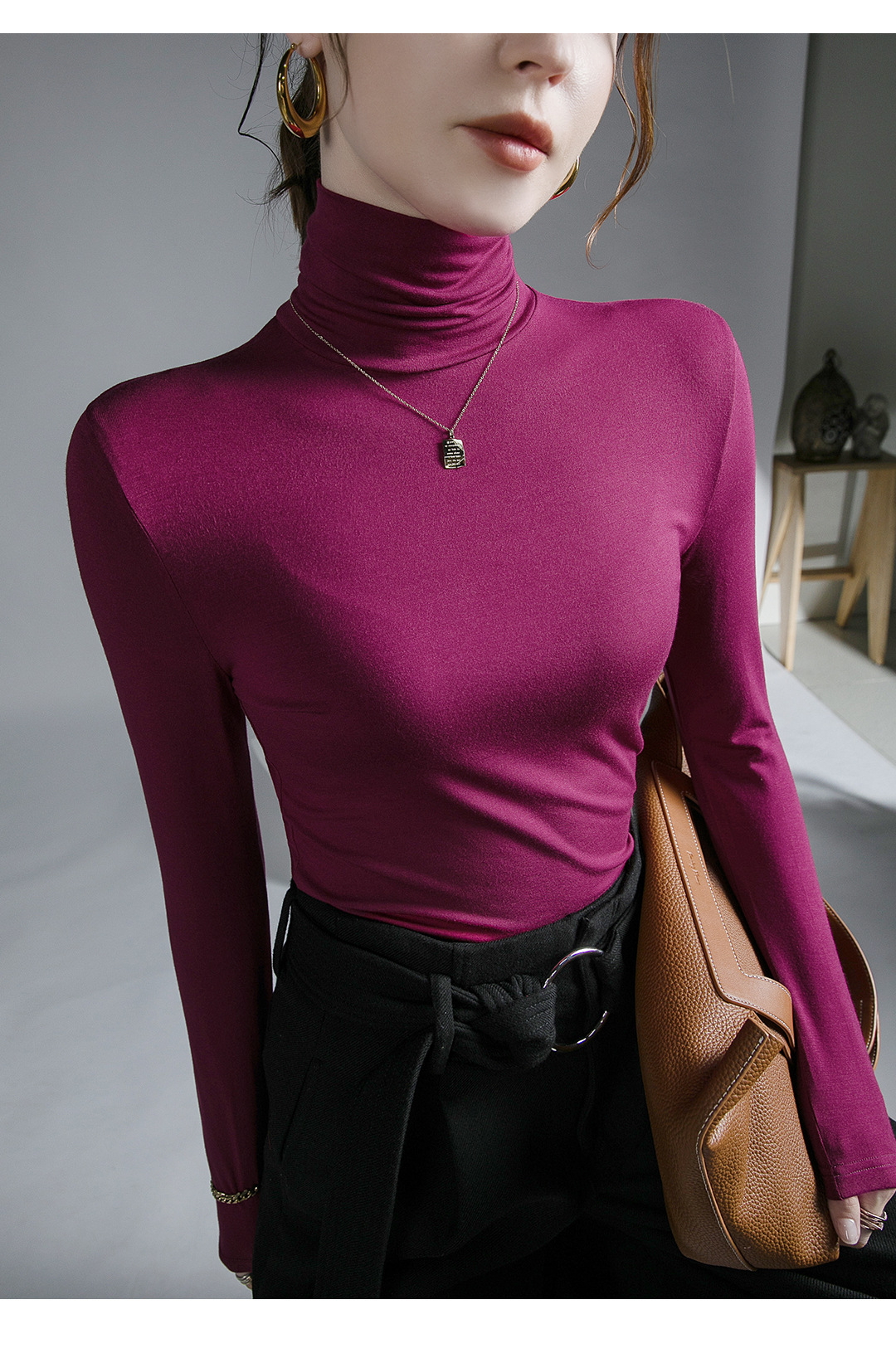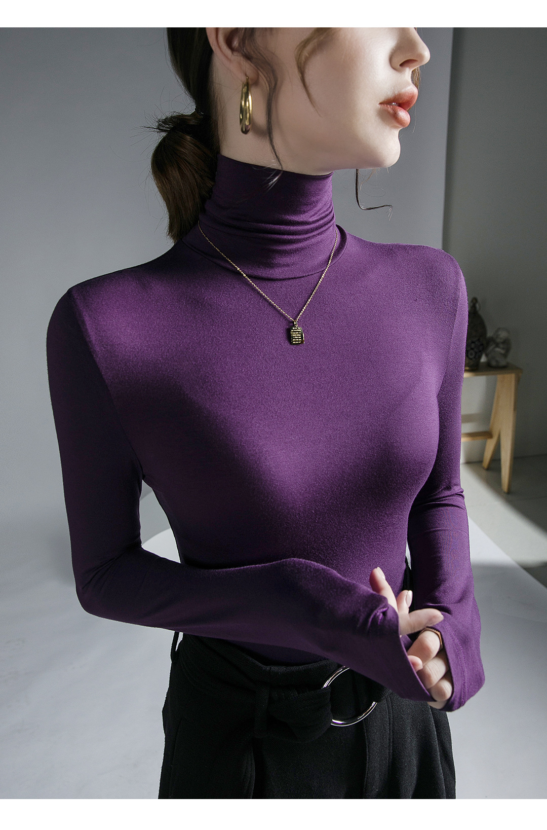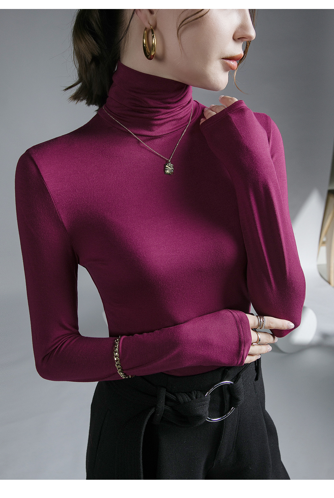 하이 칼라 티셔츠 여성의 가을과 겨울 새로운 내베이스 셔츠 스트레치 올 매치 긴팔 스타일