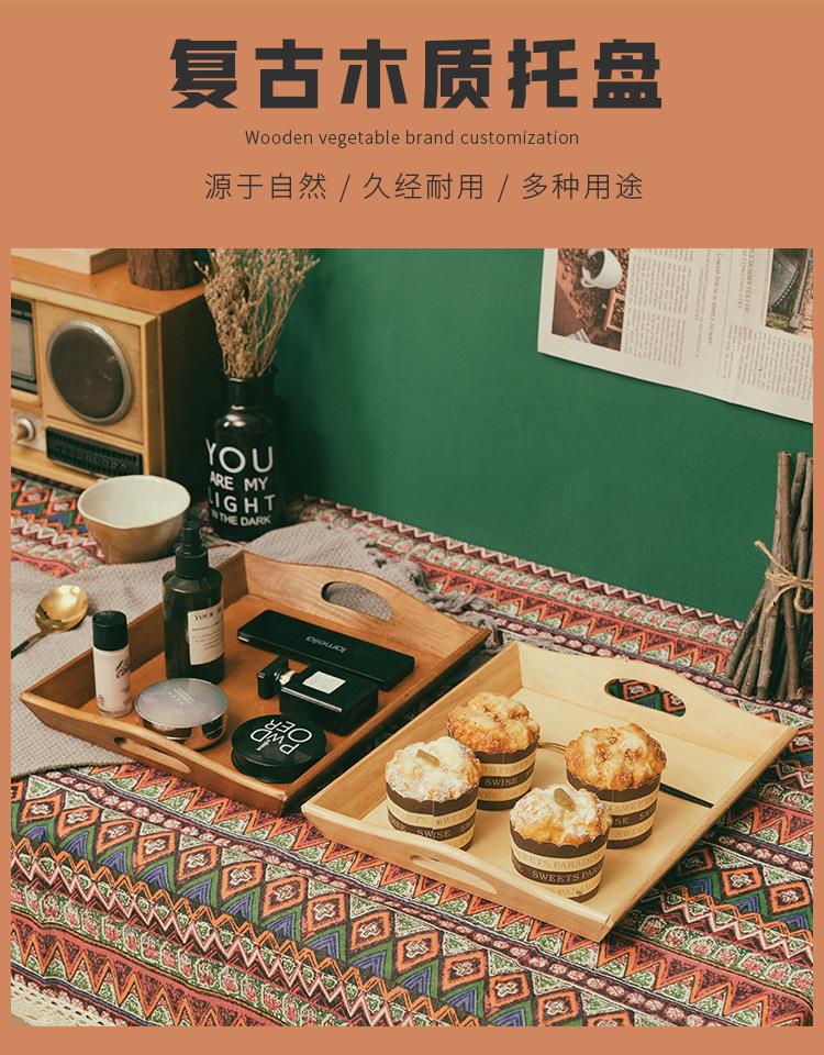 Zakka 빈티지 나무 직사각형 트레이 건조 과일 트레이 주최자 크리 에이 티브 홈 데스크탑 화장품 보관함