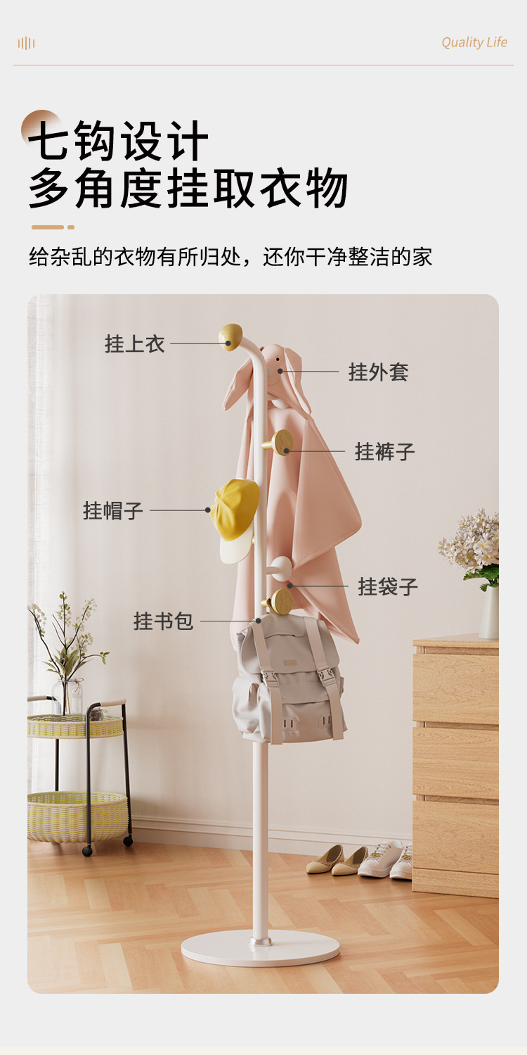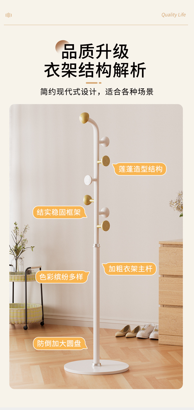 심플한 신중국풍 스타일의 바닥형 옷걸이, 단일 봉 옷걸이, 침실, 거실, 현관 옷걸이, 수납 가능