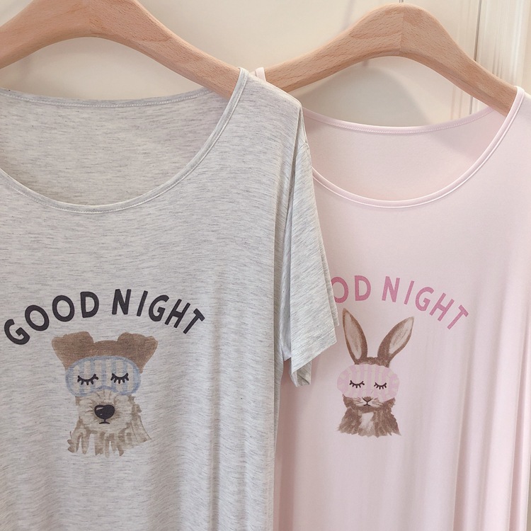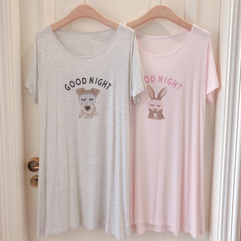 여성용 잠옷 일본식 여름 모달 만화 귀여운 라운드넥 짧은 치마 잠옷 루즈핏 큰 사이즈 달콤한 홈웨어