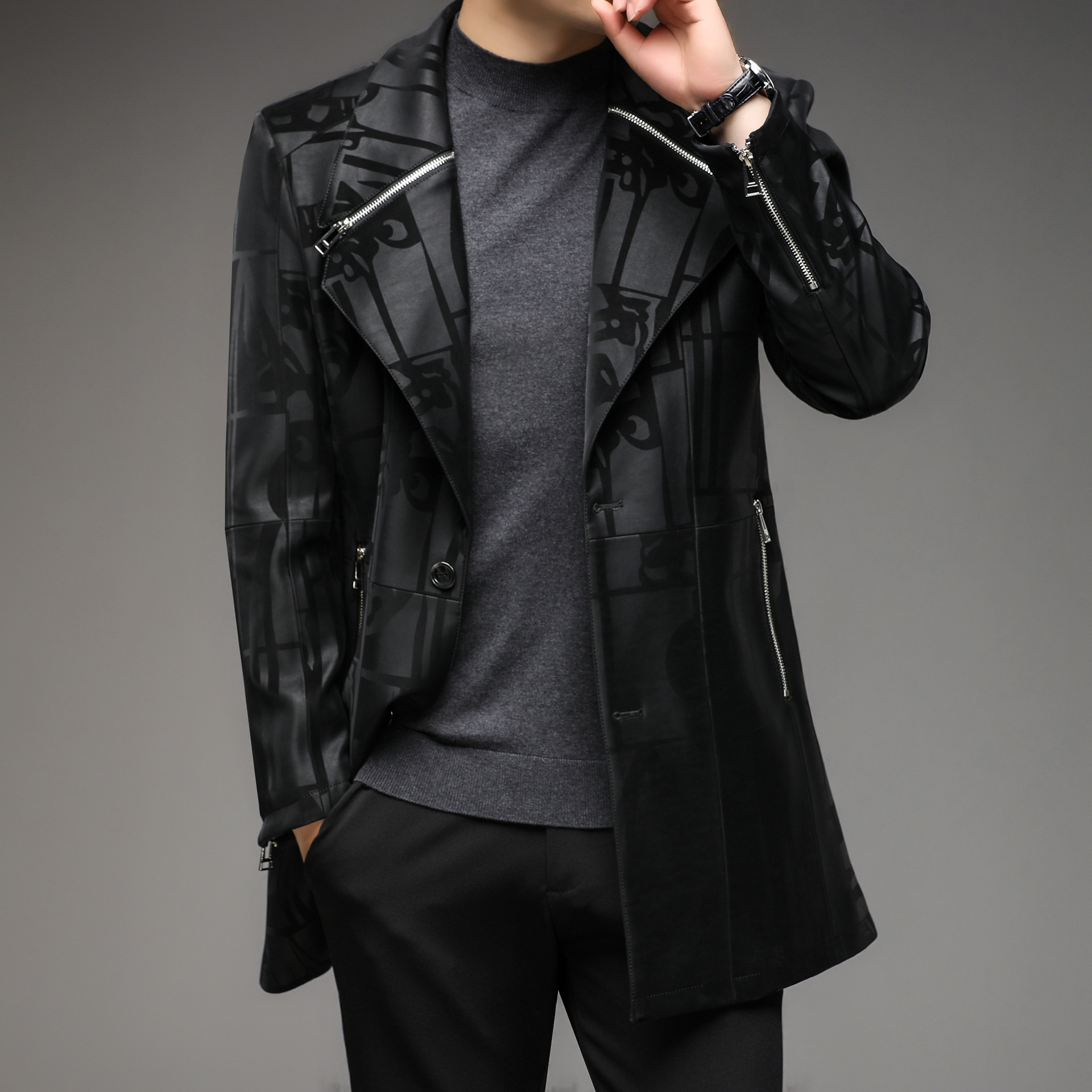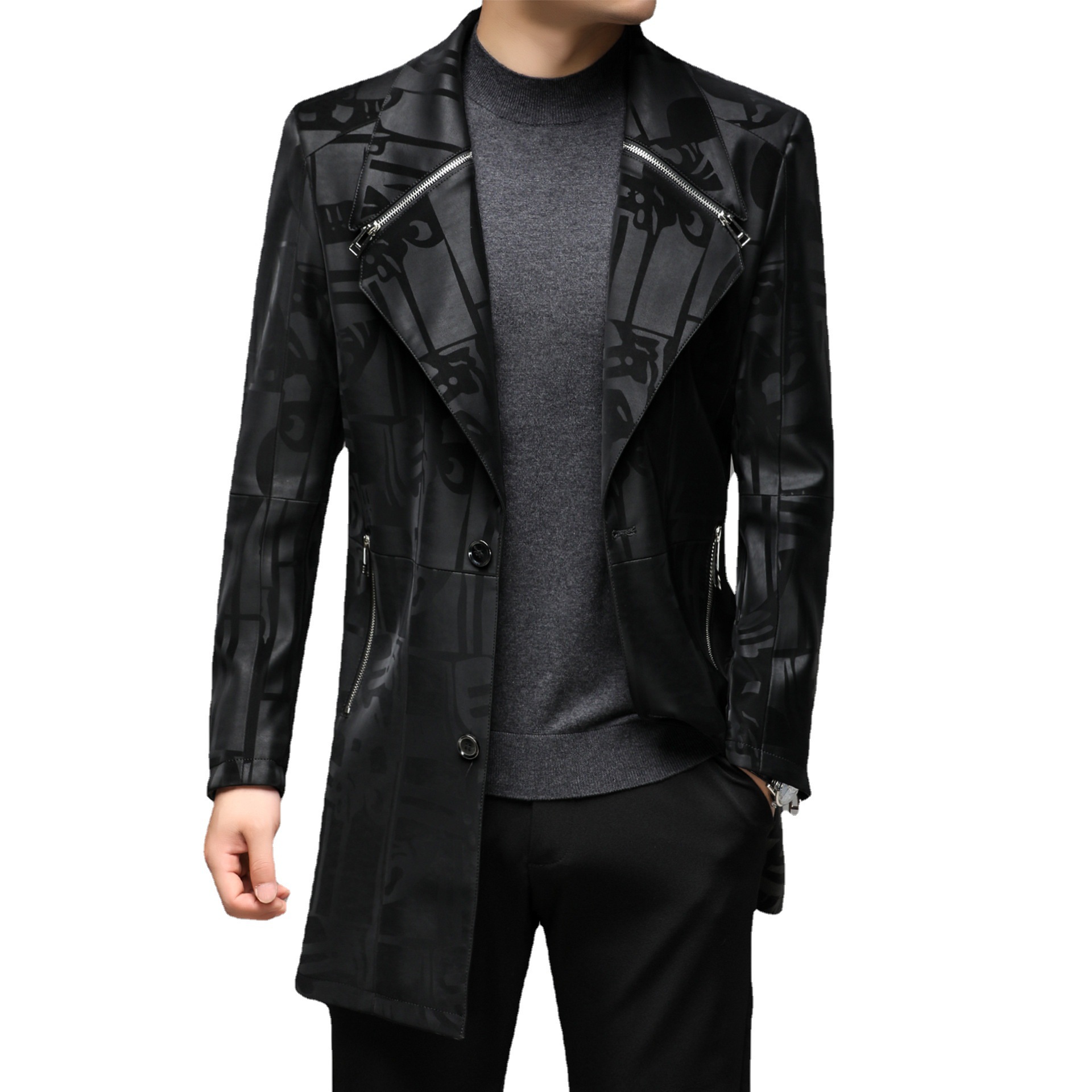 2023 새로운 Haining 정품 가죽 남성용 중간 길이 코트 모피 코트 유행 잘 생긴 세트 칼라 코트 젊은 및 중년