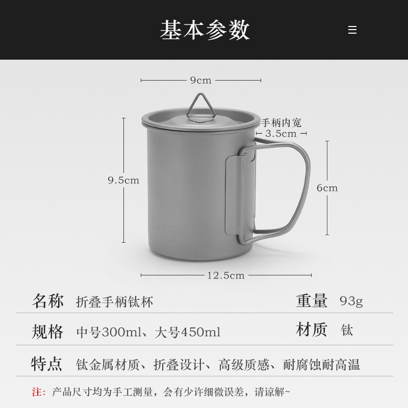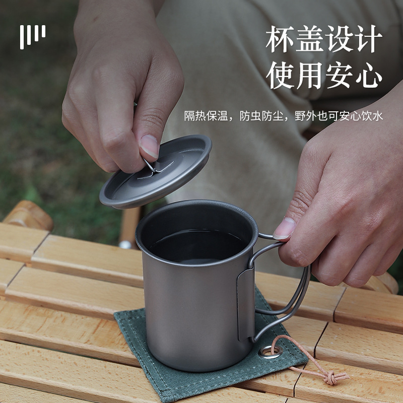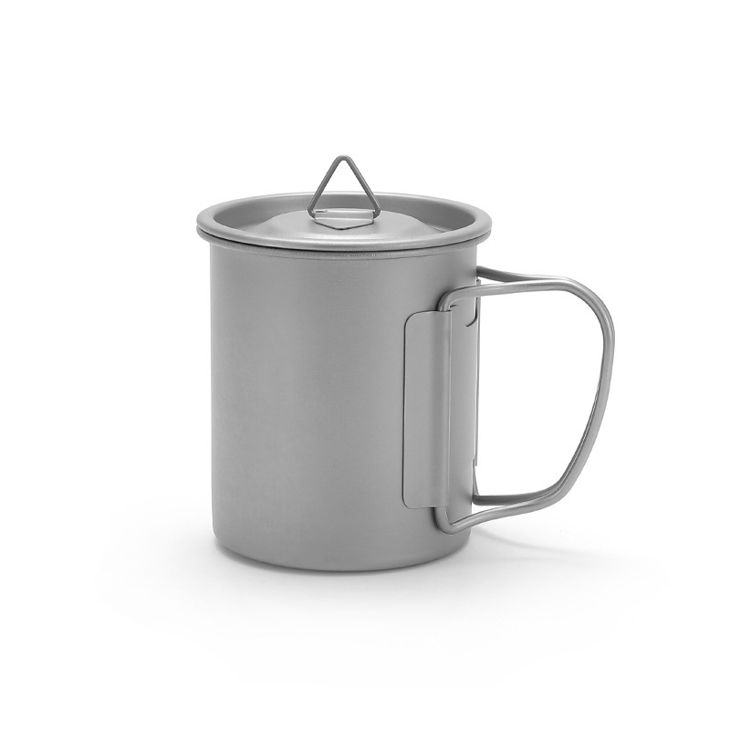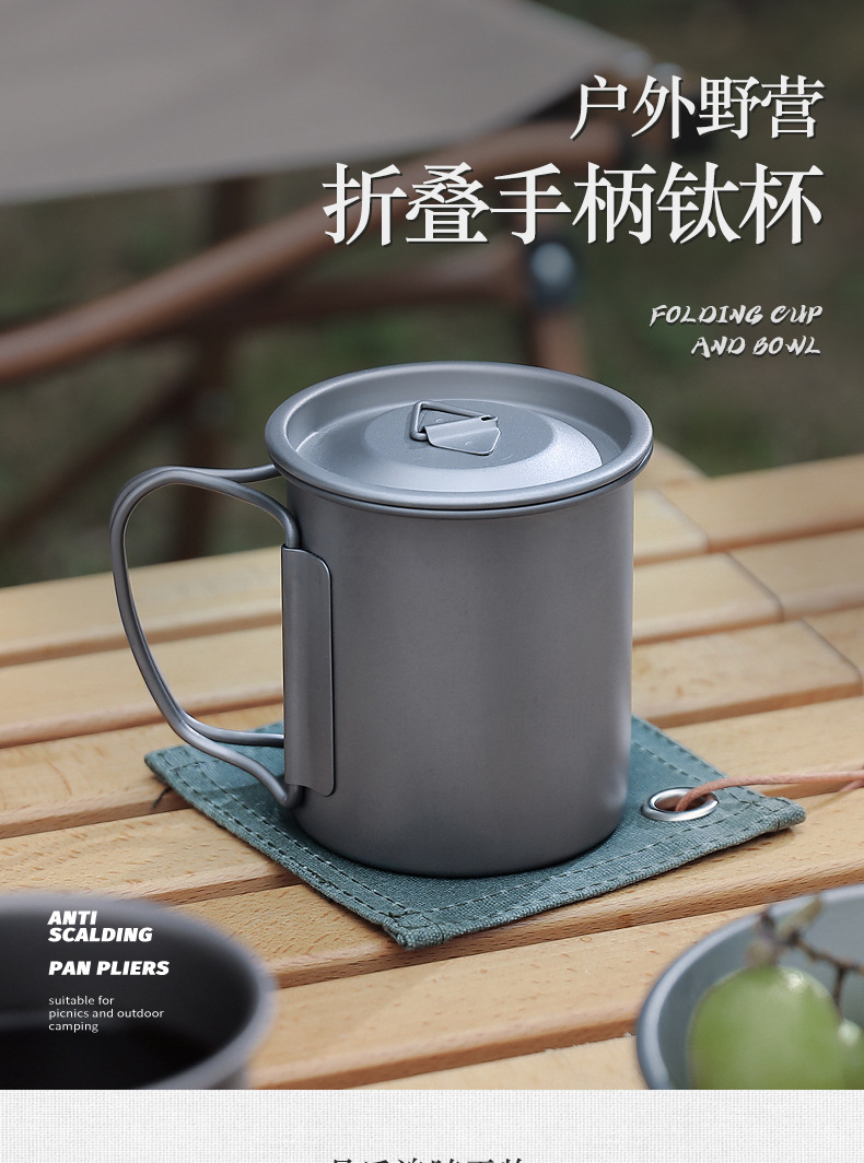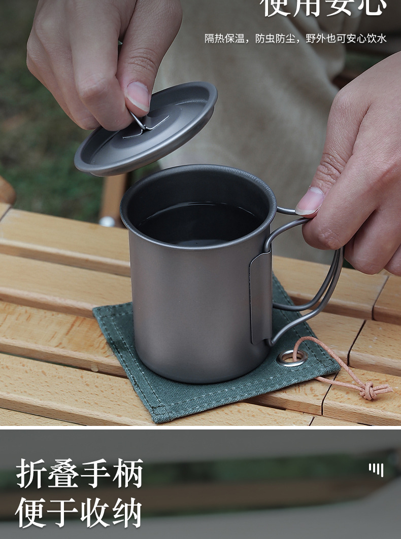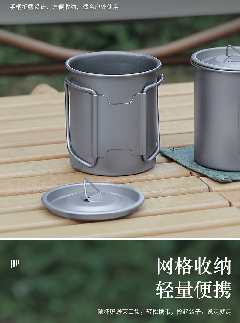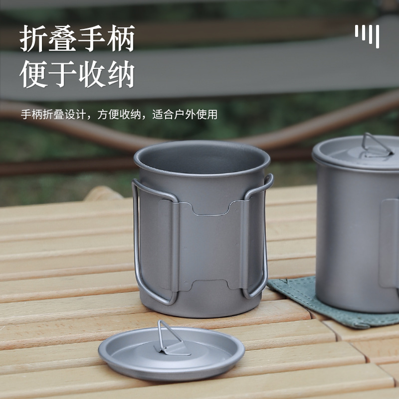 캠핑 컵 초경량 야외 티타늄 컵 뚜껑 물 컵 접이식 손잡이 순수 티타늄 식기 커피 컵 맥주 컵