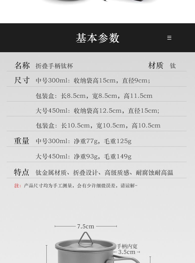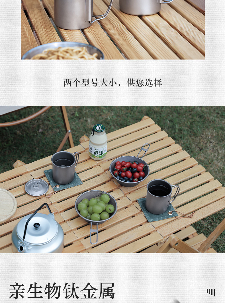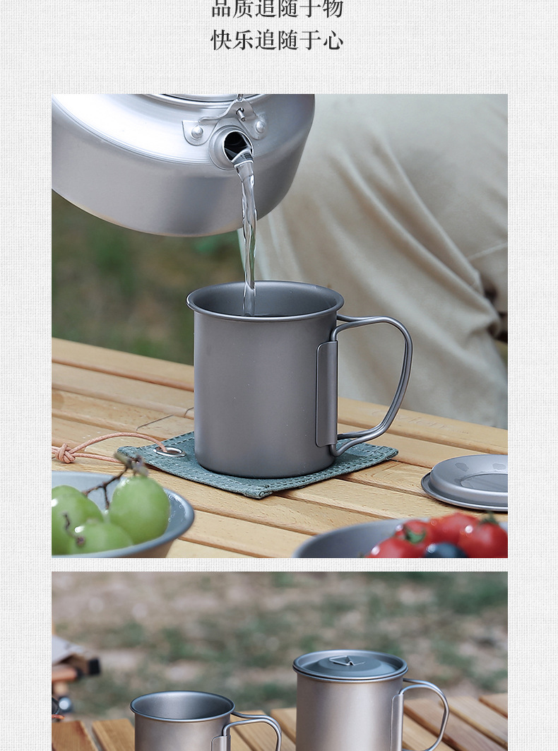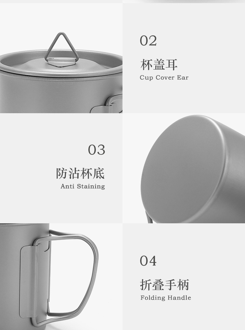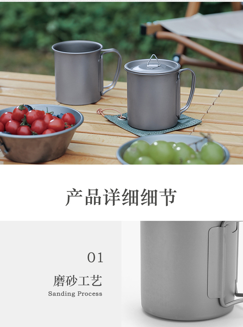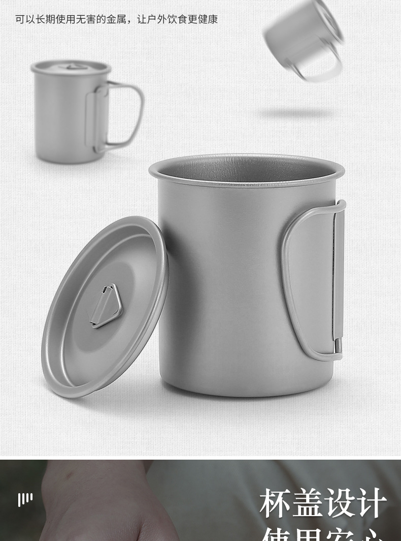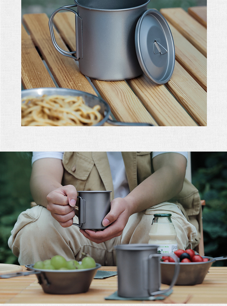 캠핑 컵 초경량 야외 티타늄 컵 뚜껑 물 컵 접이식 손잡이 순수 티타늄 식기 커피 컵 맥주 컵