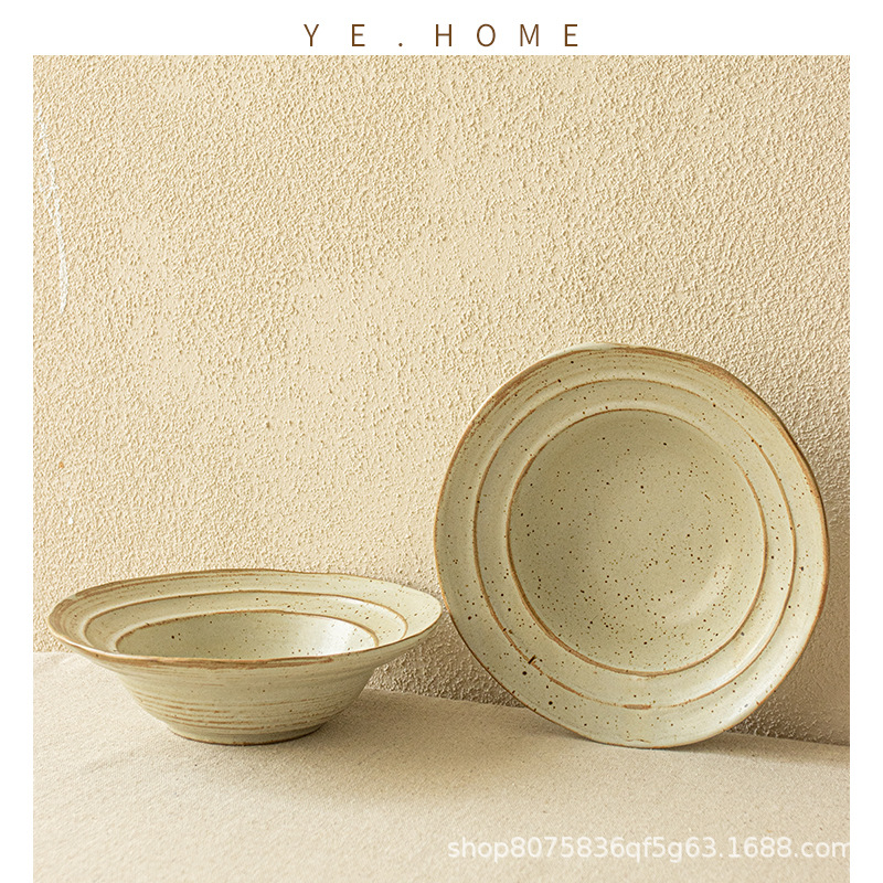일본 복고풍 세라믹 밀짚 모자 그릇, 고급 실용적인 샐러드 그릇, 파스타 그릇, 창의적인 원형 야채 그릇, 가정용 식기