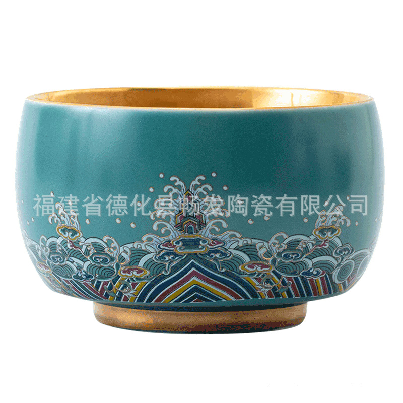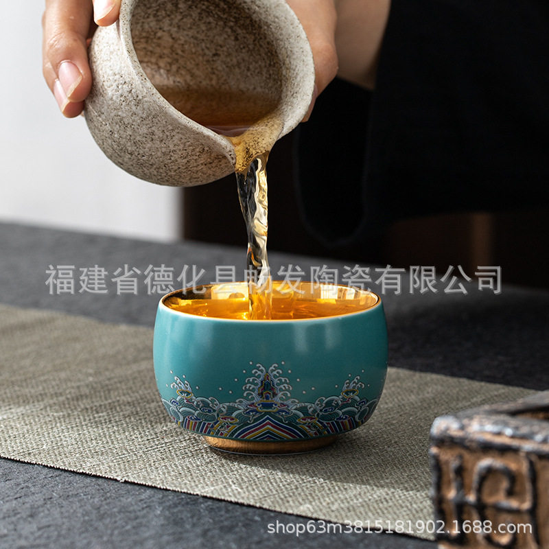 에나멜 세라믹 찻잔 골드 마스터 컵 대형 수제 찻그릇 인증서 선물 상자가있는 가정용 개인 컵