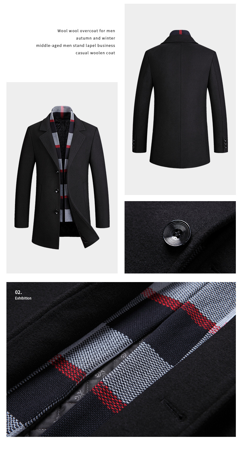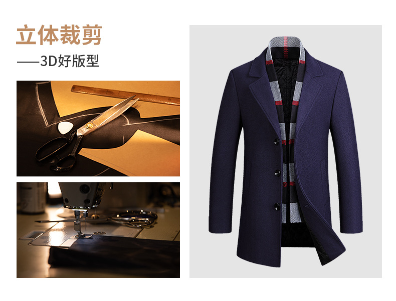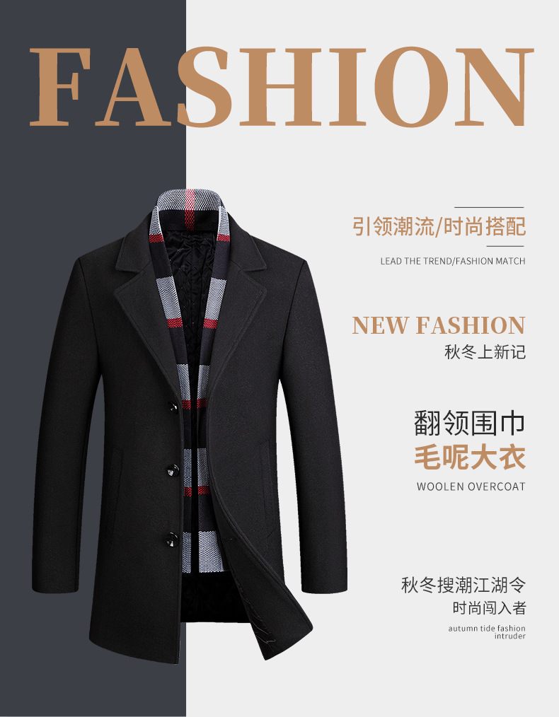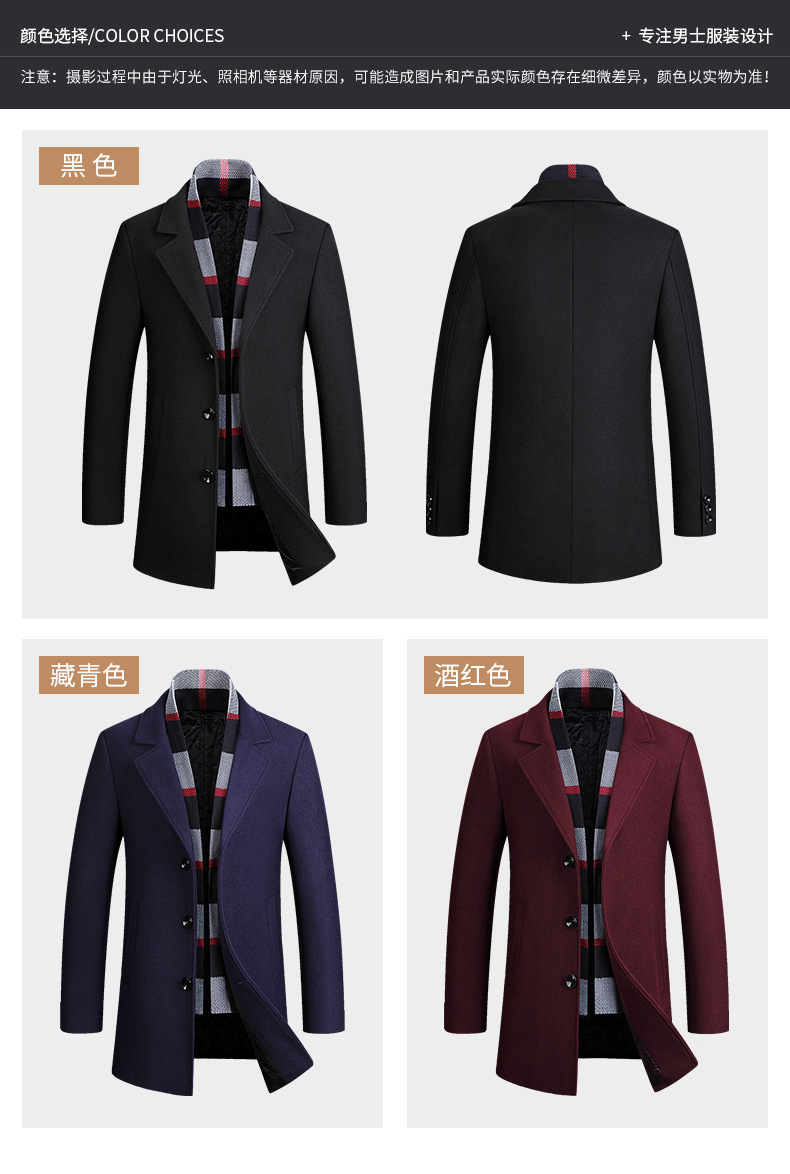 2022 가을과 겨울 새로운 울 코트 남자의 가을과 겨울 라펠 스카프 울 코트 울 코트