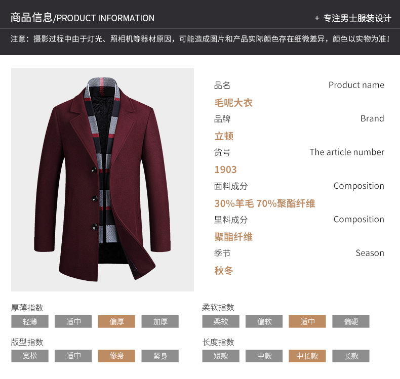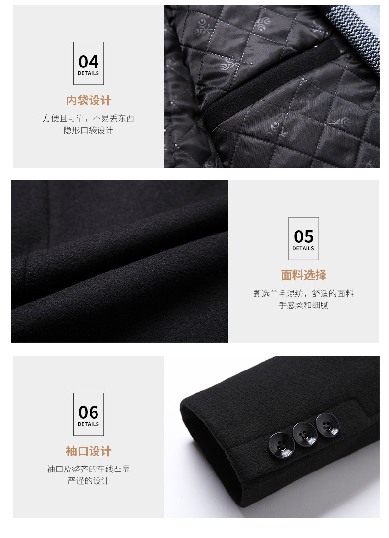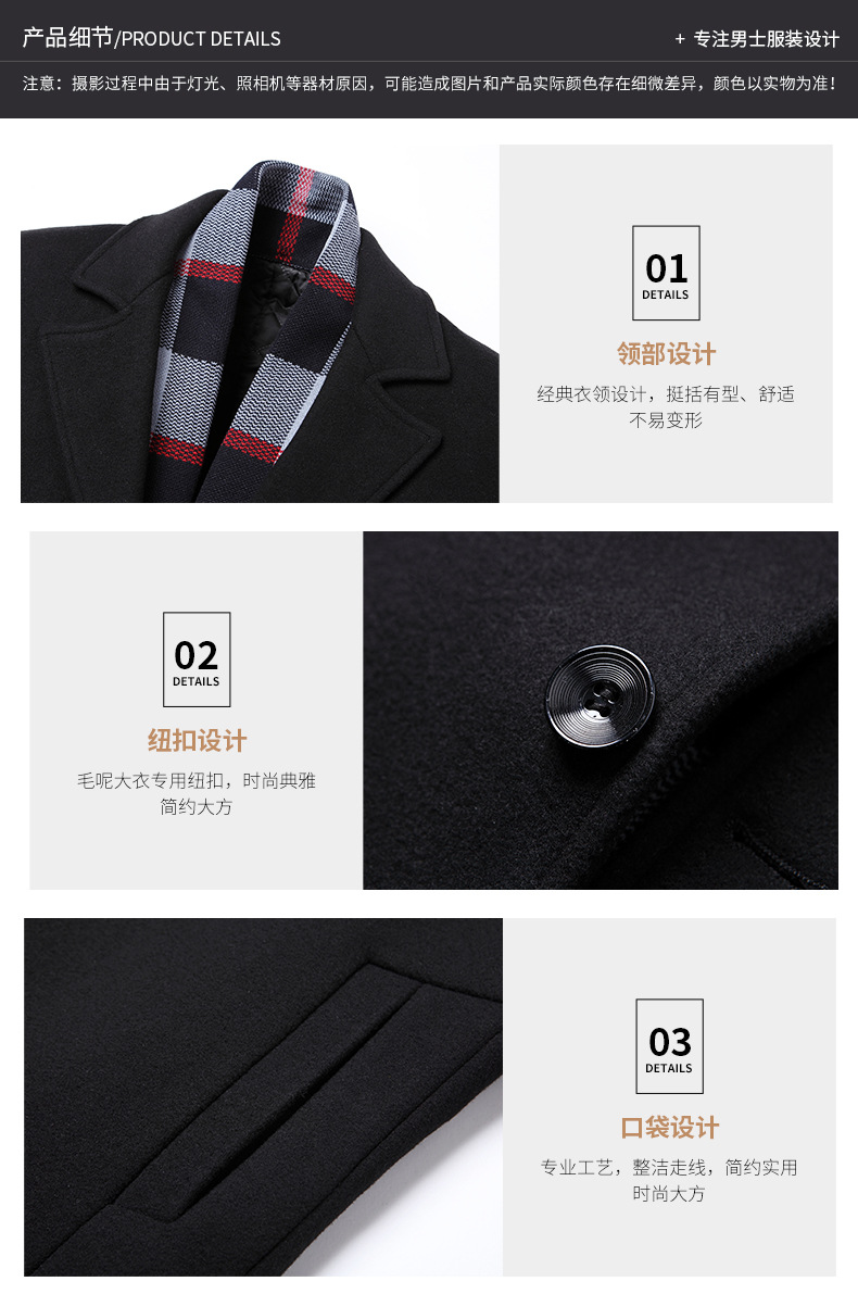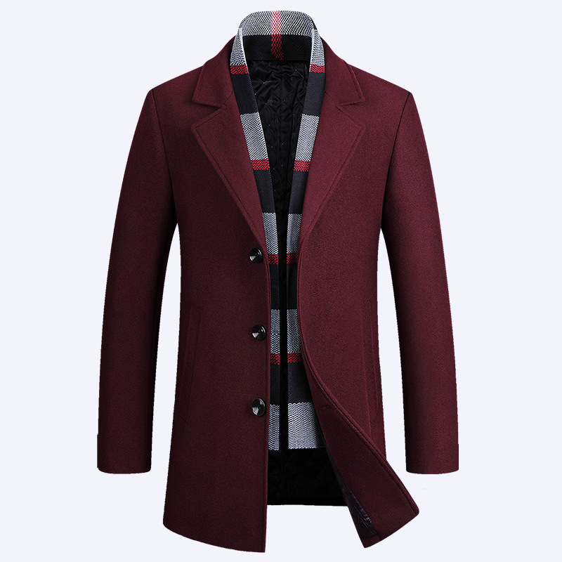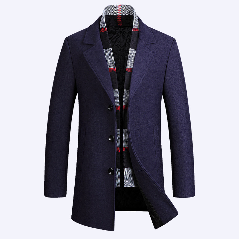 2022 가을과 겨울 새로운 울 코트 남자의 가을과 겨울 라펠 스카프 울 코트 울 코트