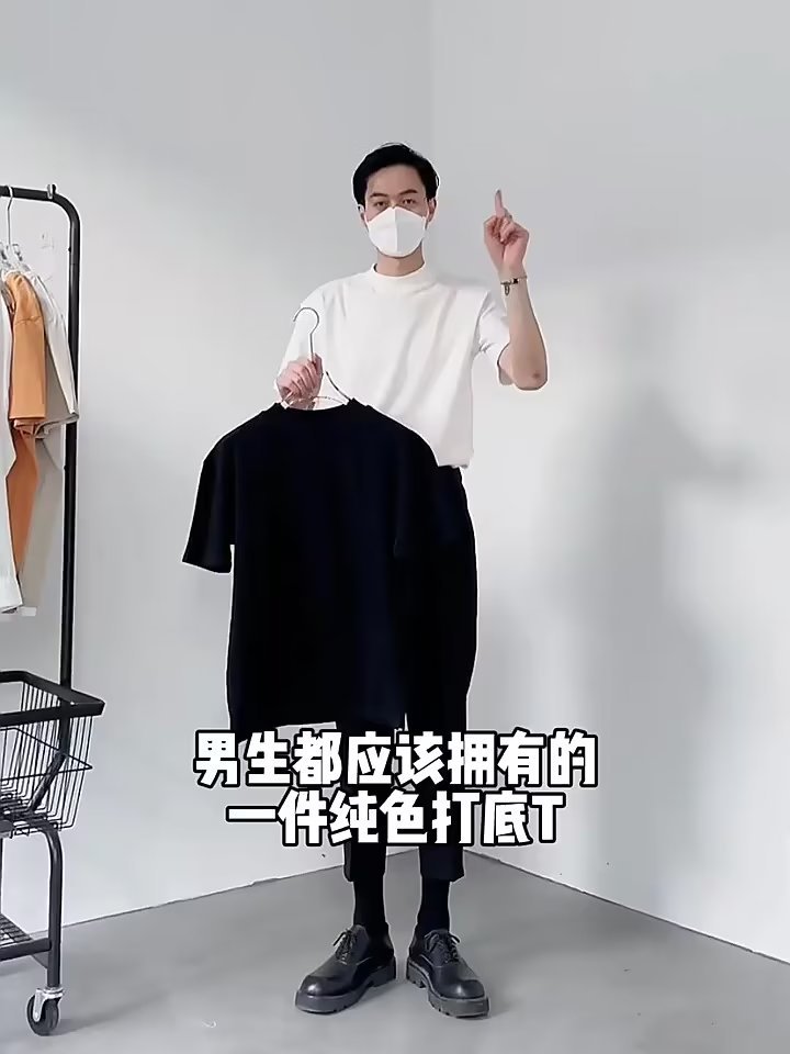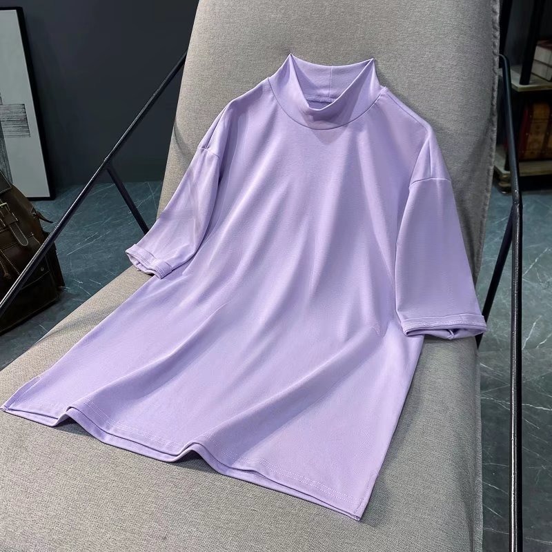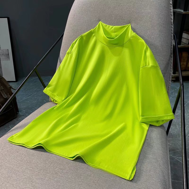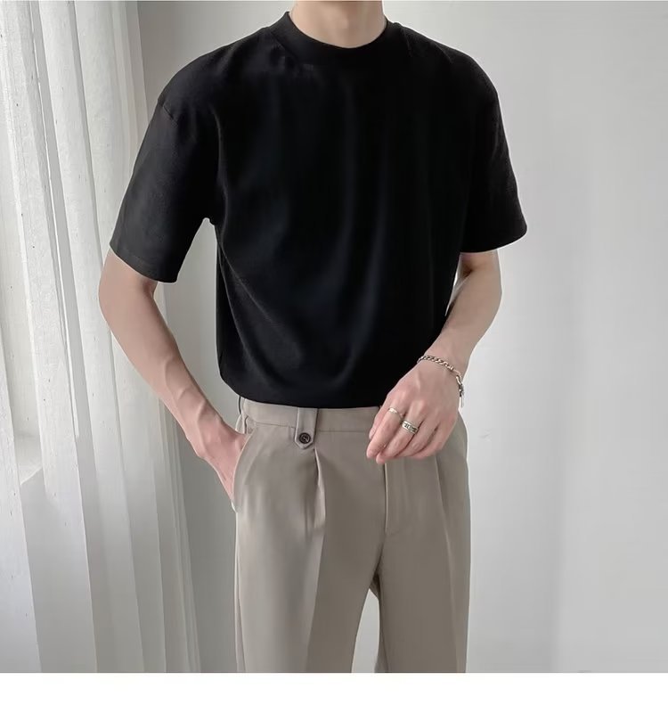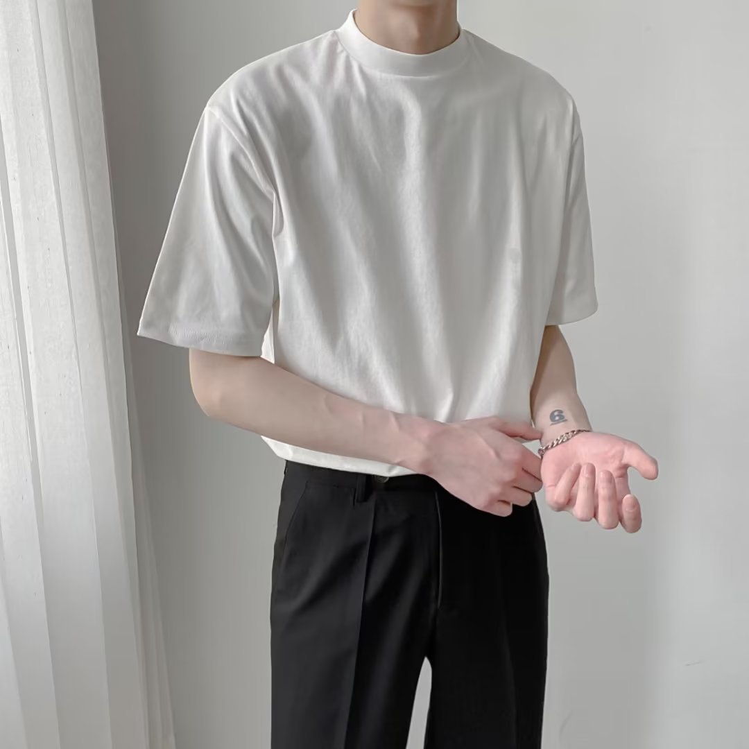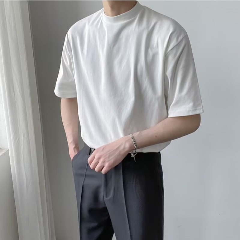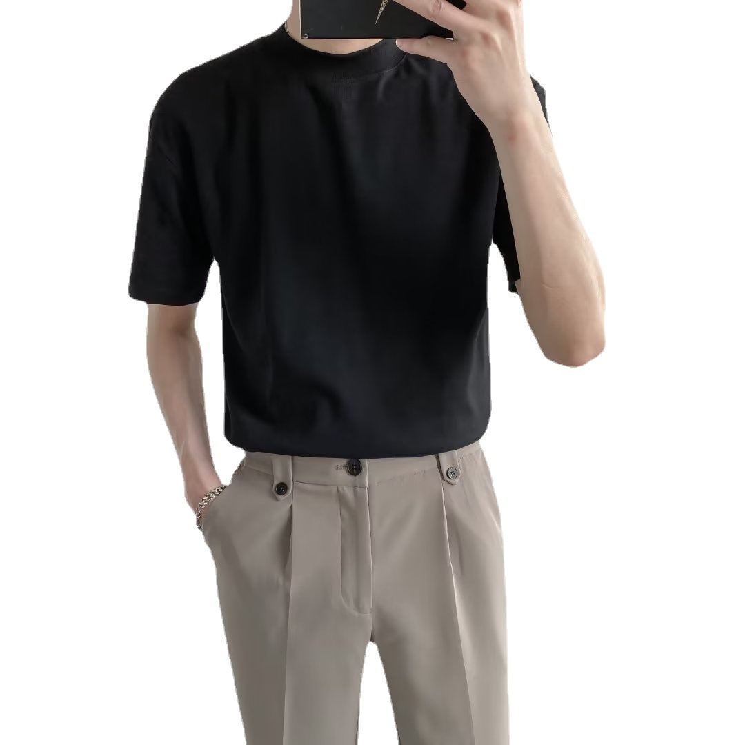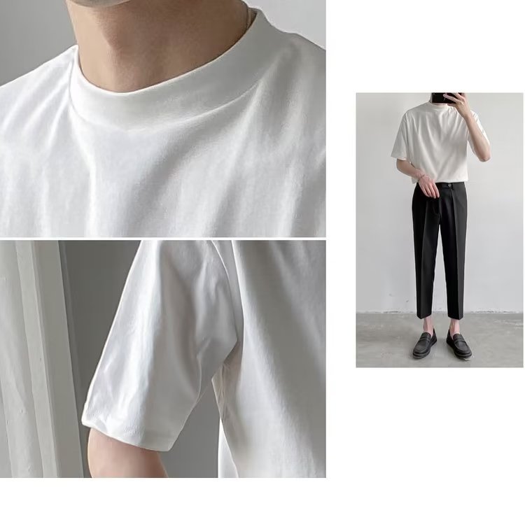 하라주쿠 문예 스타일 다재다능한 루즈핏 심플 인기 트렌드 하프넥 반팔 티셔츠 남성용 일본 패션 상의