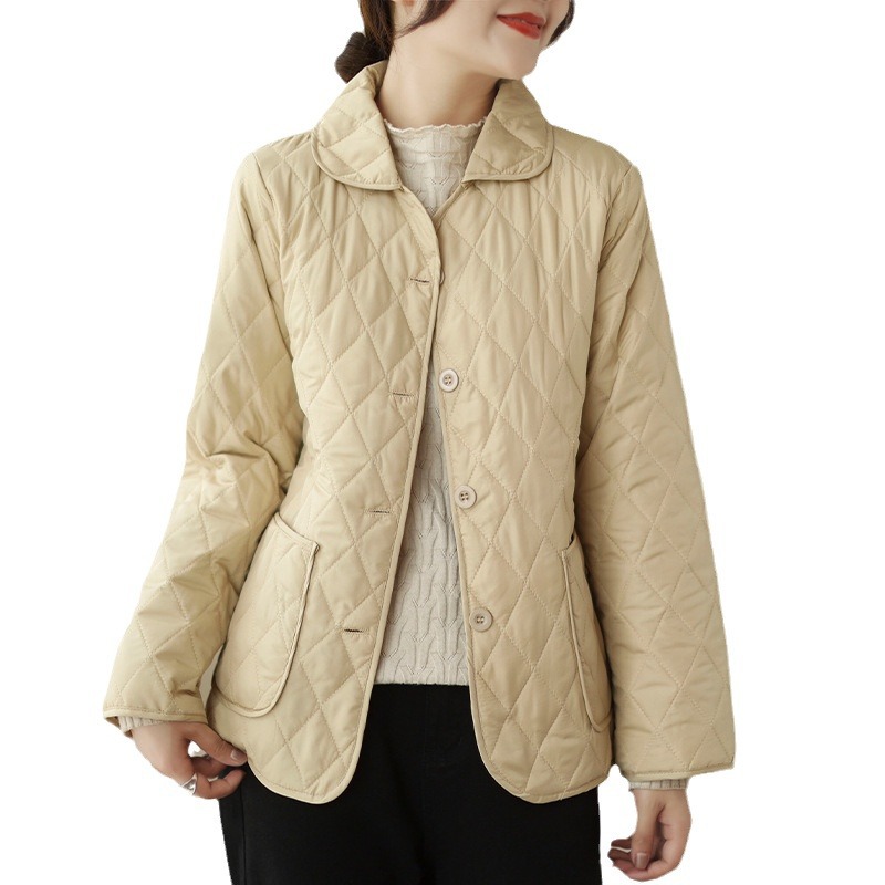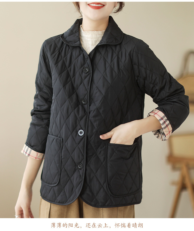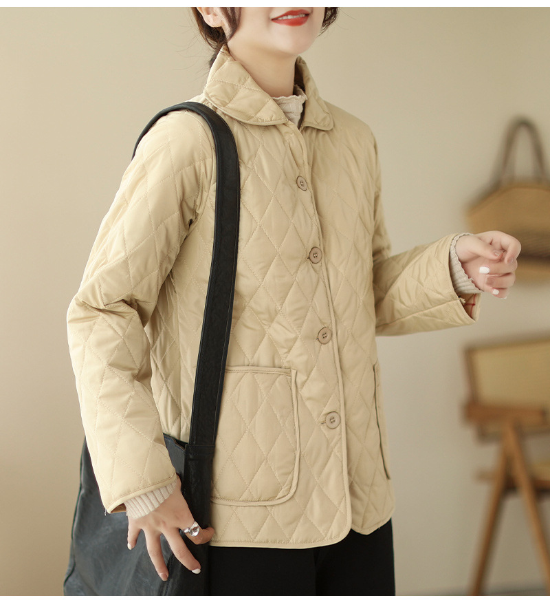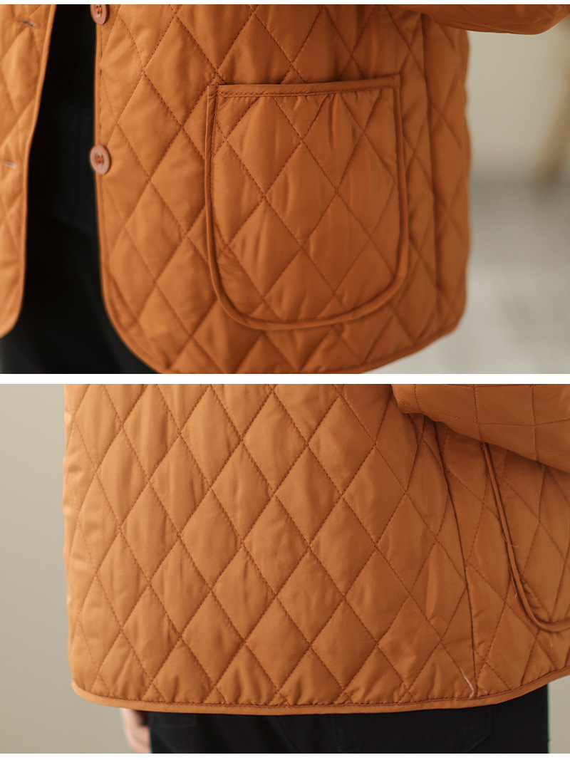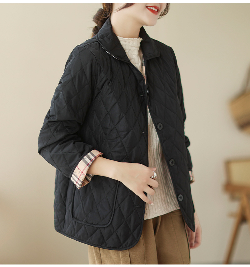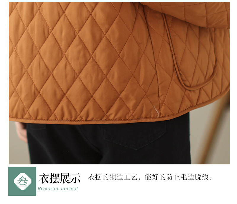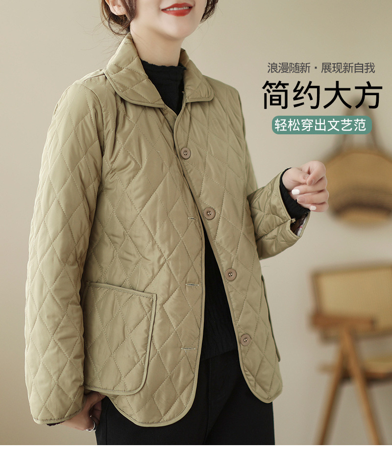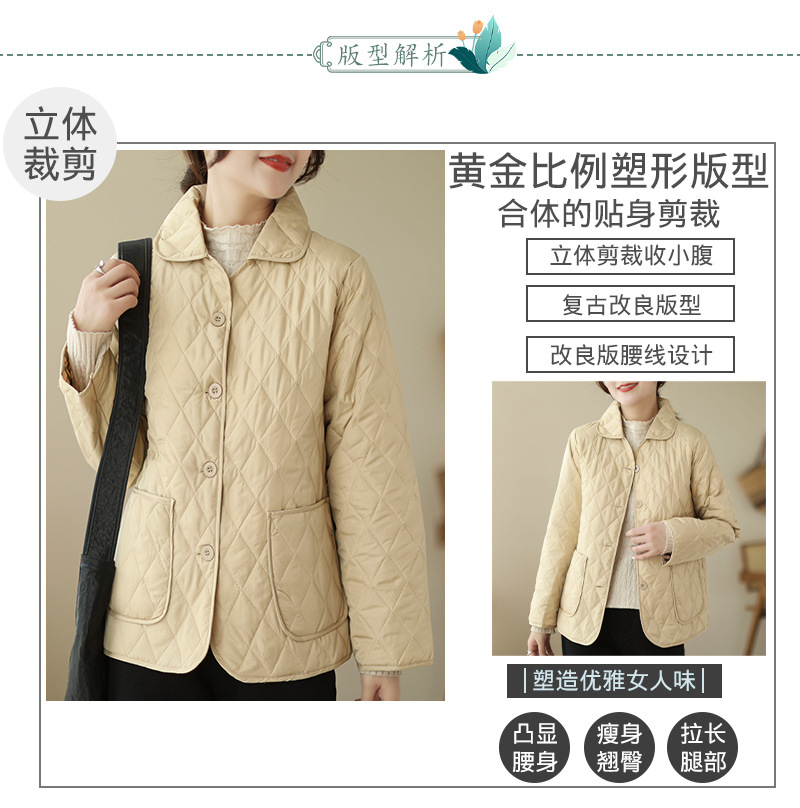 2026 봄 가을 신상 얇은 다운 코튼 재킷 봄 겨울 스타일 스탠드 칼라 마름모 무늬 따뜻한 겨울 여성용 짧은 재킷