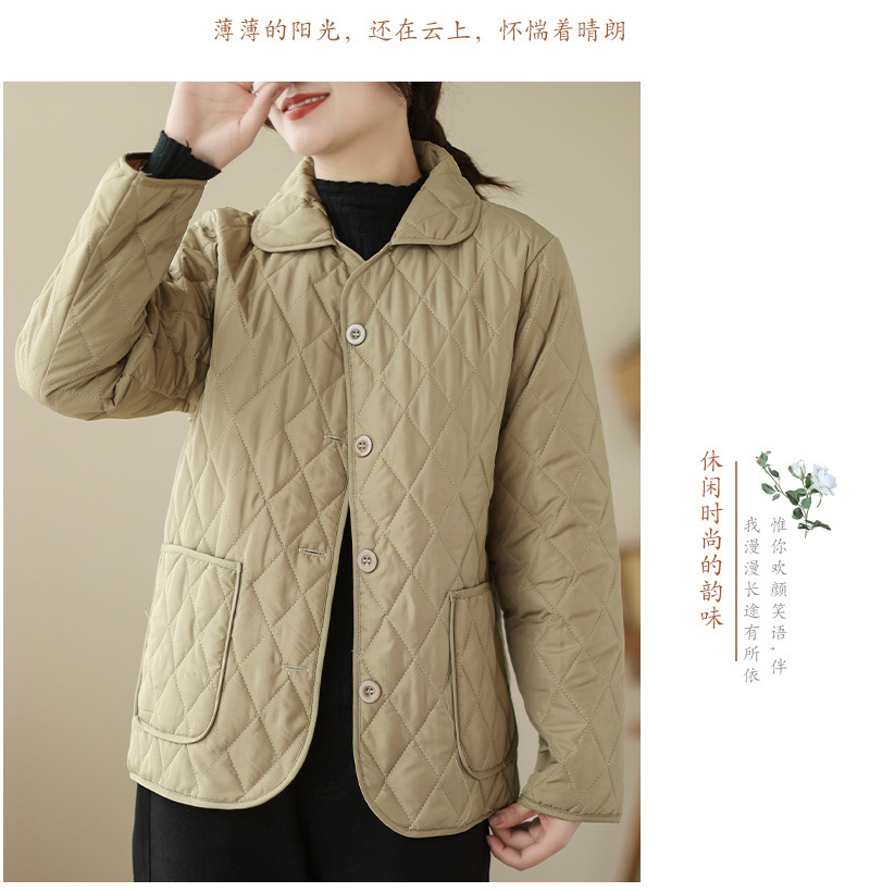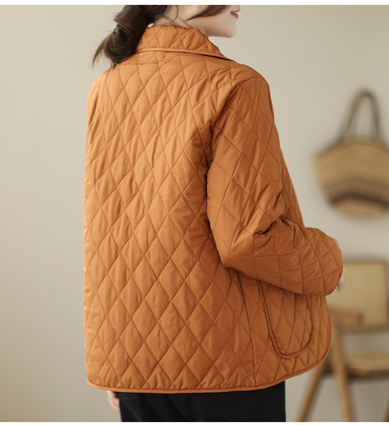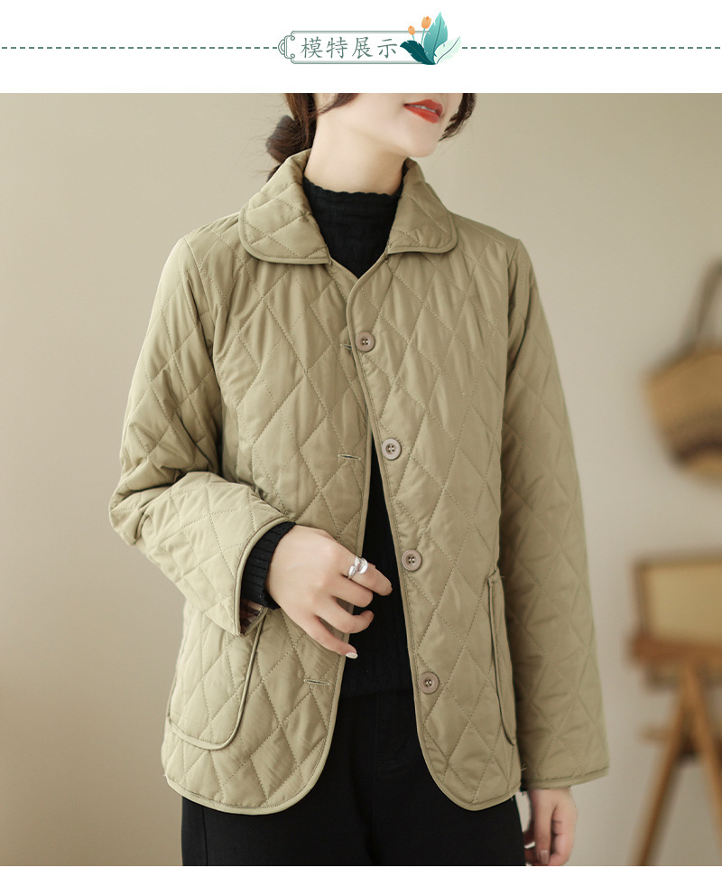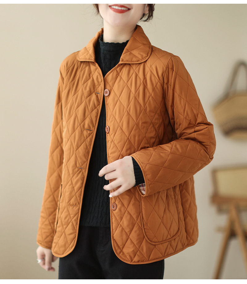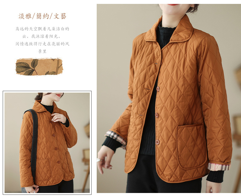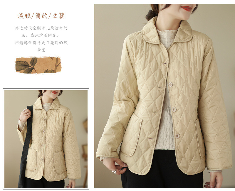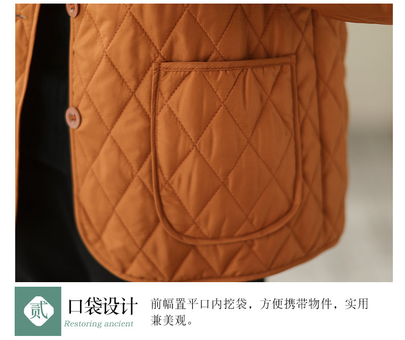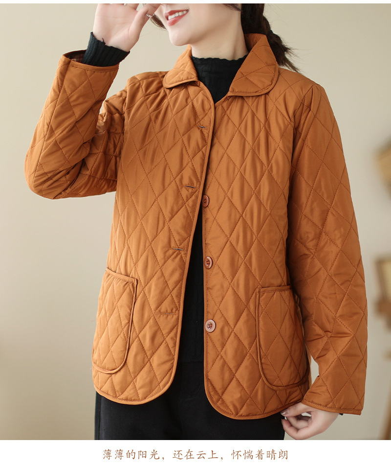 2026 봄 가을 신상 얇은 다운 코튼 재킷 봄 겨울 스타일 스탠드 칼라 마름모 무늬 따뜻한 겨울 여성용 짧은 재킷