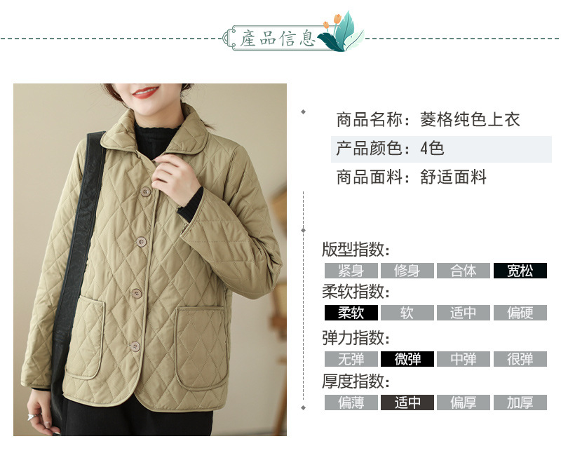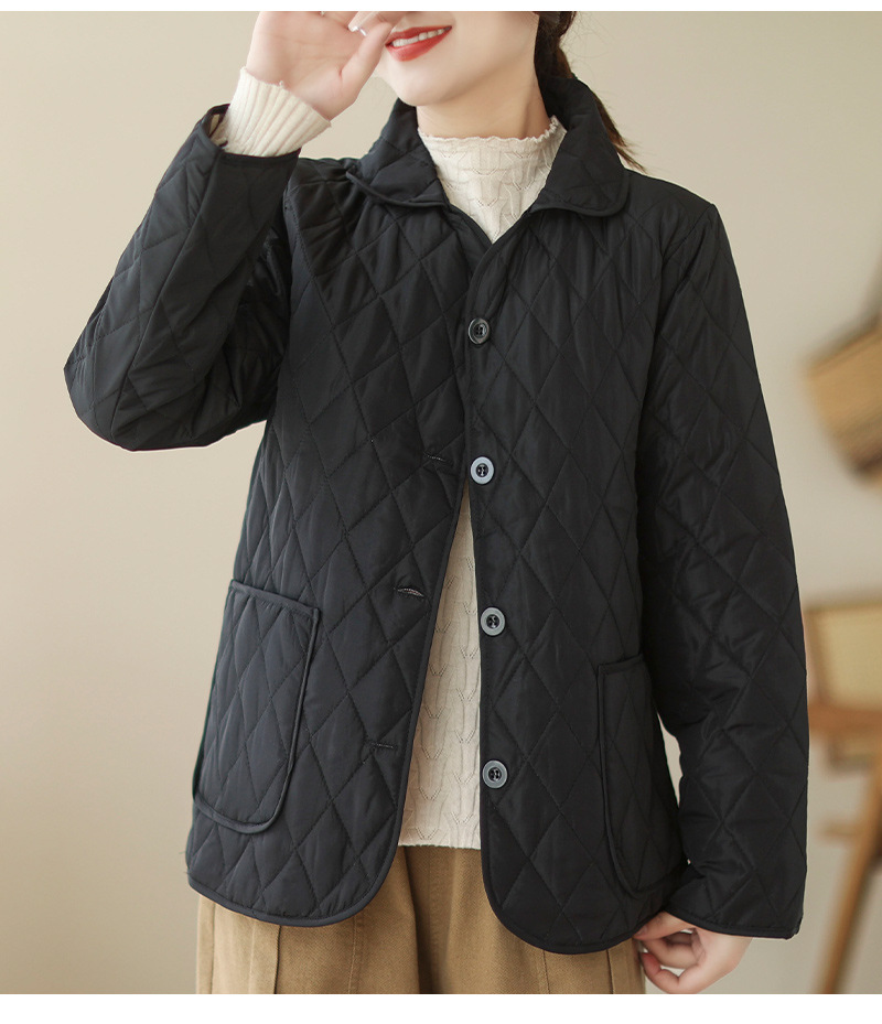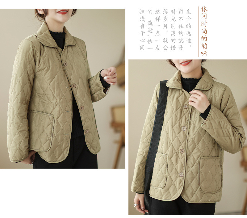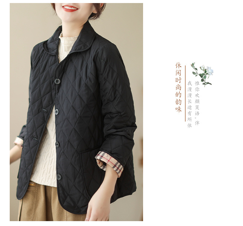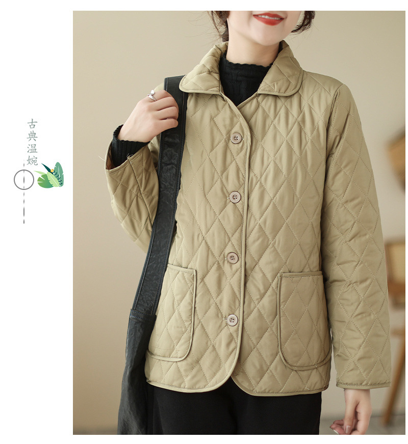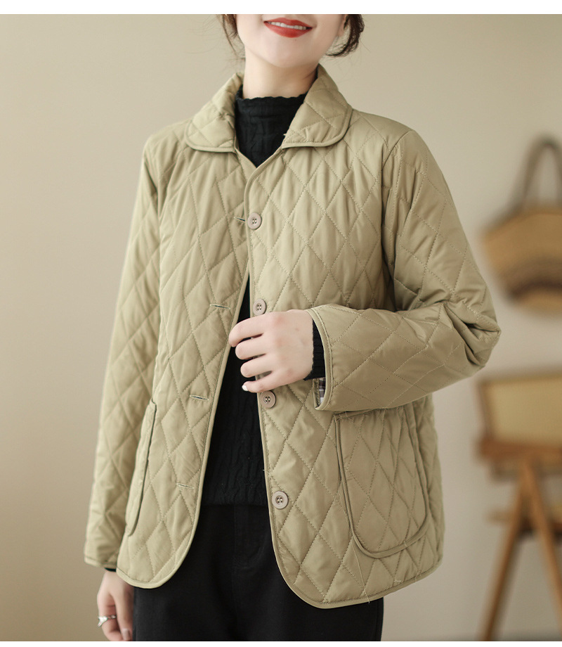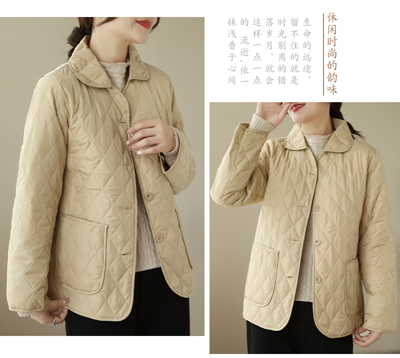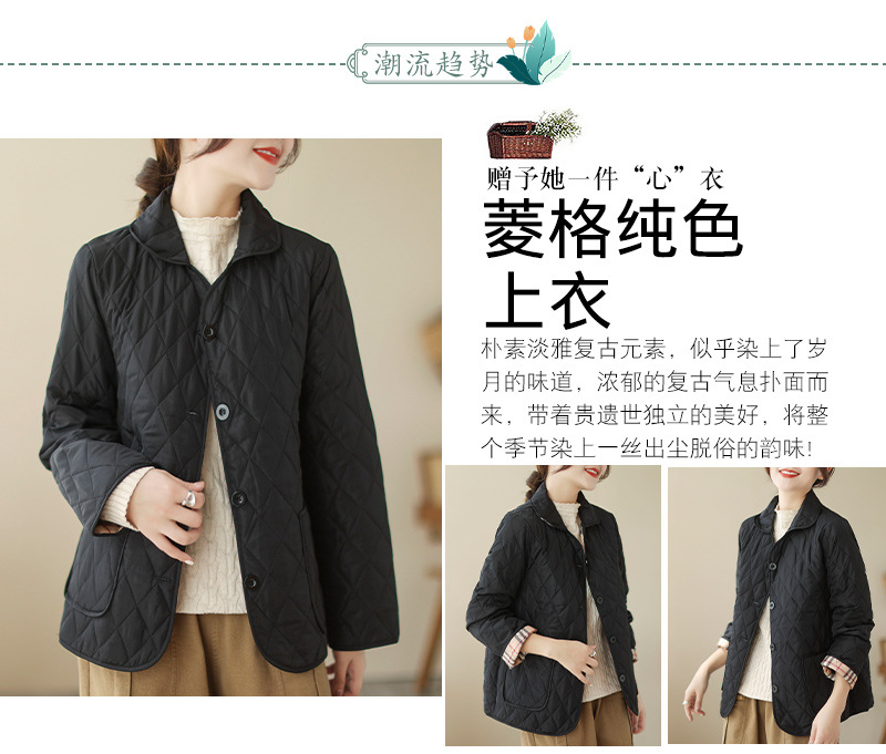2026 봄 가을 신상 얇은 다운 코튼 재킷 봄 겨울 스타일 스탠드 칼라 마름모 무늬 따뜻한 겨울 여성용 짧은 재킷