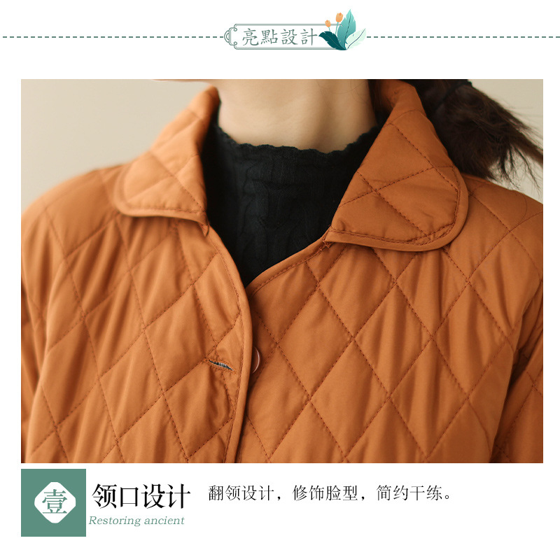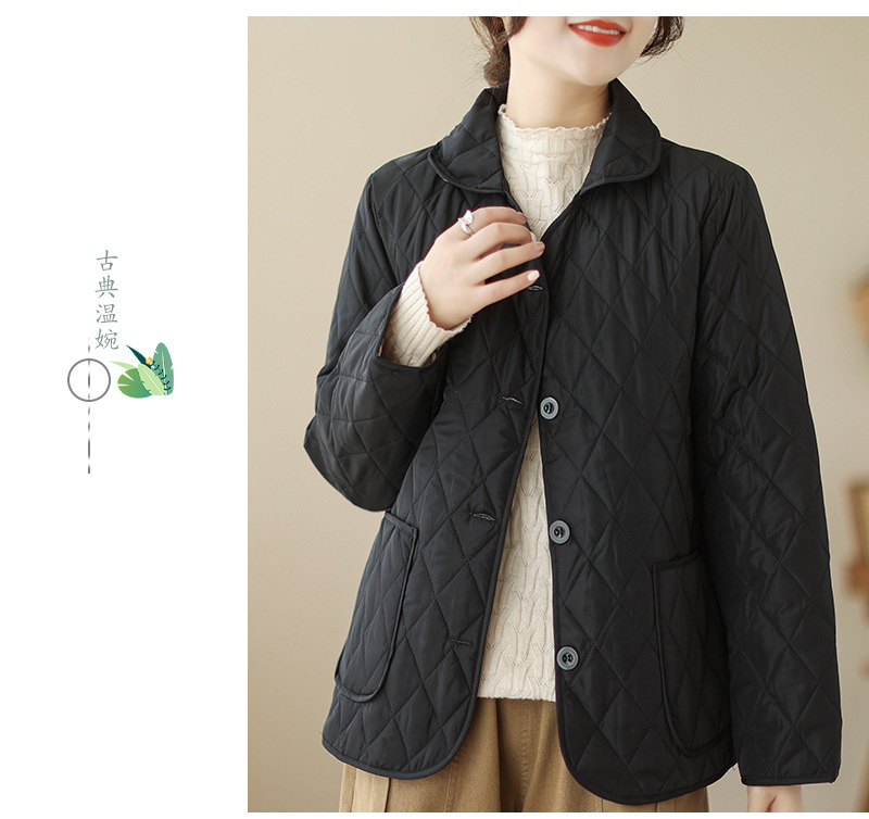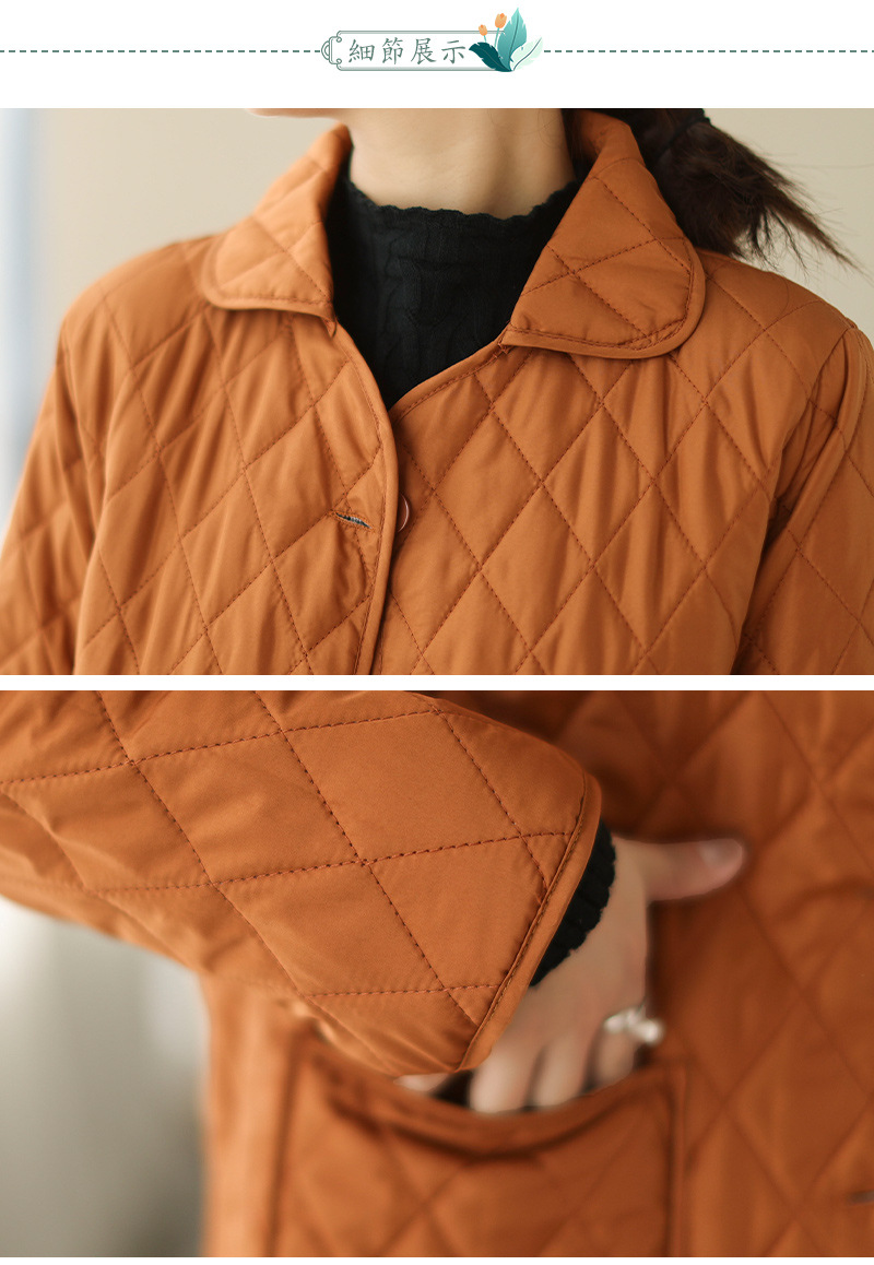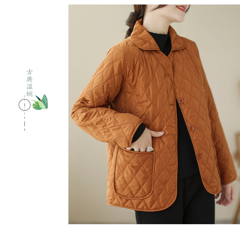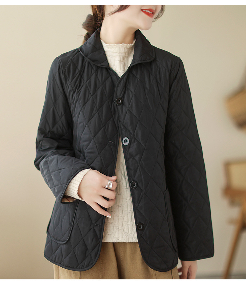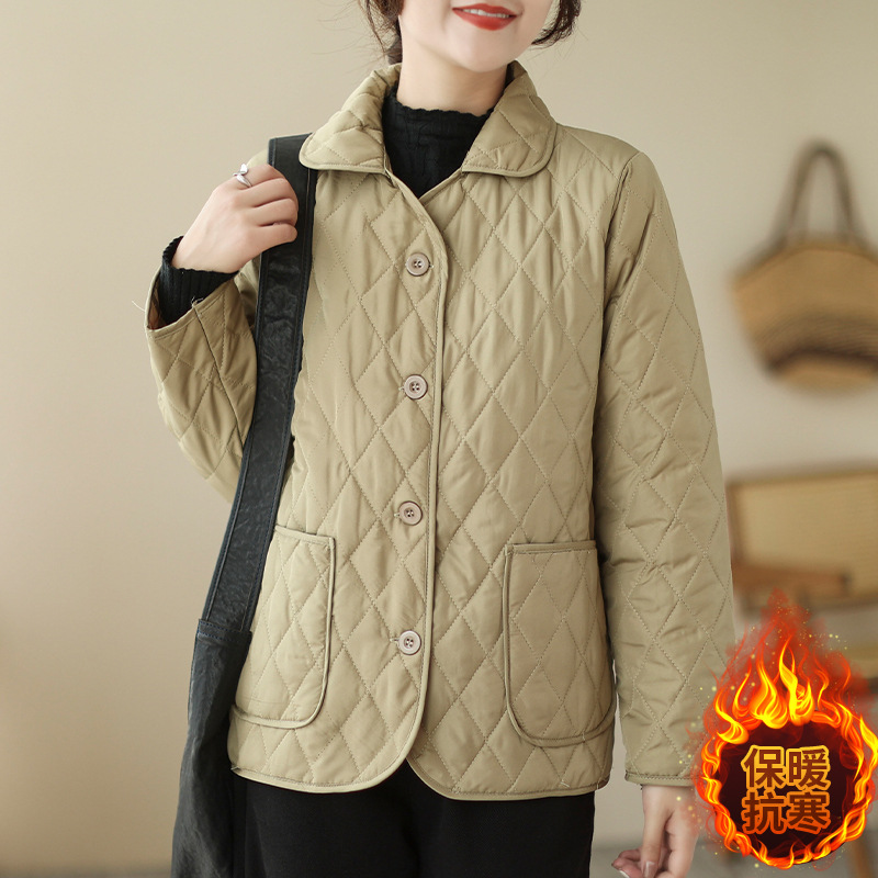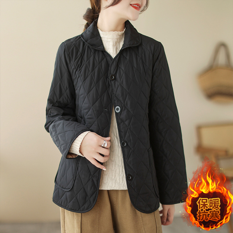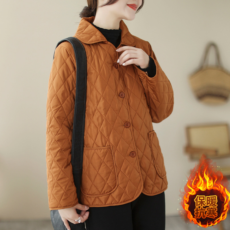 2026 봄 가을 신상 얇은 다운 코튼 재킷 봄 겨울 스타일 스탠드 칼라 마름모 무늬 따뜻한 겨울 여성용 짧은 재킷