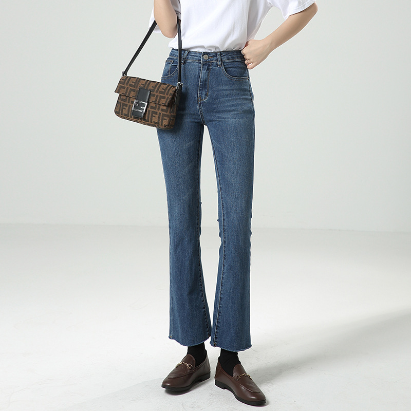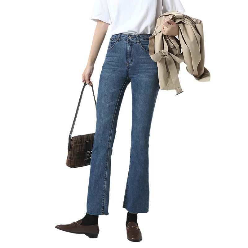 여성용 마이크로 플레어 청바지 2024 새로운 루즈하고 시크한 하이웨이스트 키가 크고 슬림한 9부 봄 가을 바지
