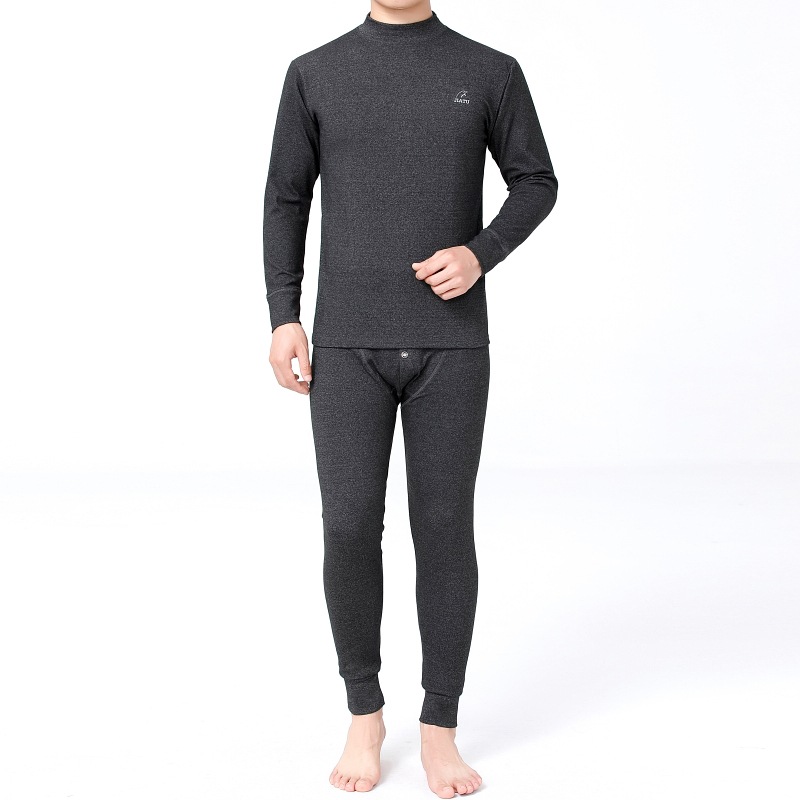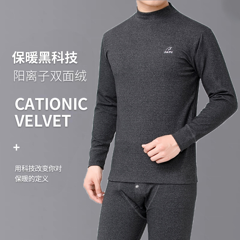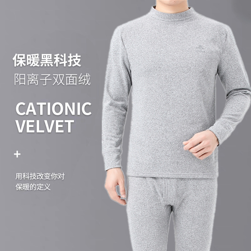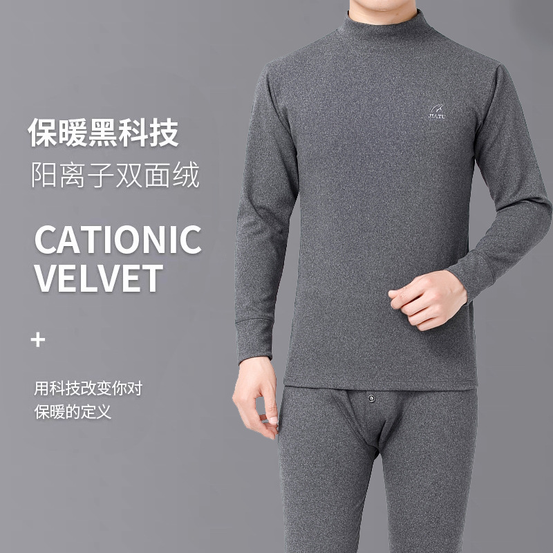 양면 벨벳 미드 하이 칼라 방한 열 속옷 세트 남성 기모 두꺼운 겨울 가을 바지 해외 무역