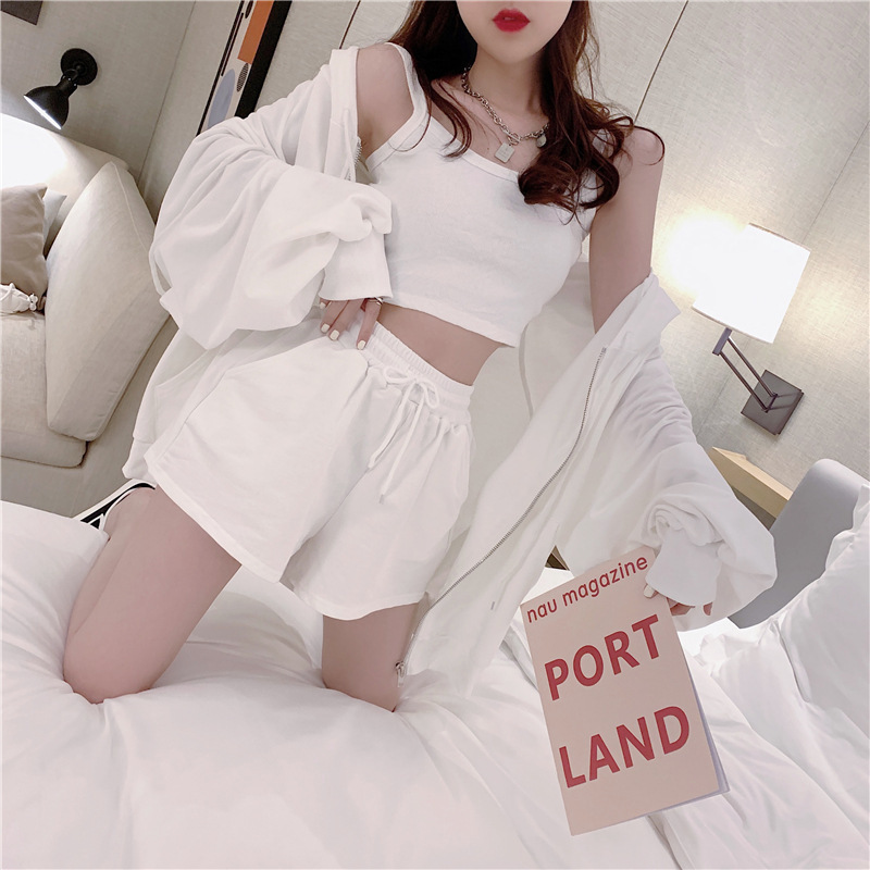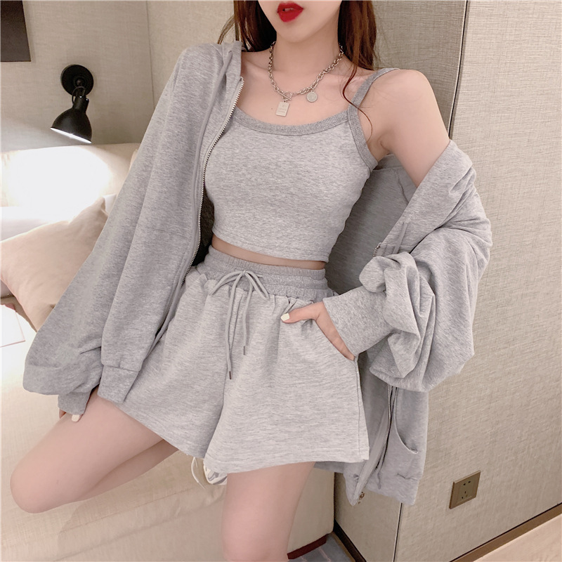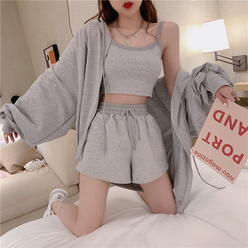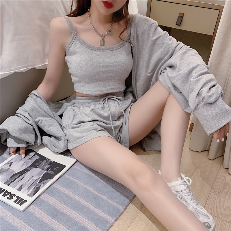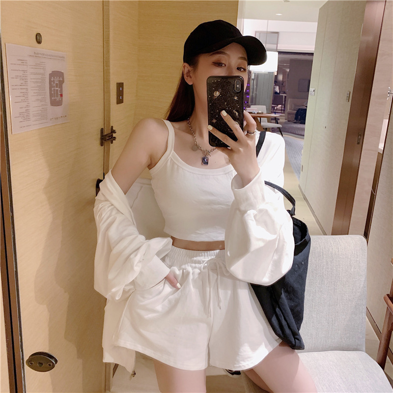2025 봄과 가을 새로운 스포츠 및 레저 정장 소녀 조끼 반바지 서양식 패션 기질 인터넷 연예인 3 피스 세트
