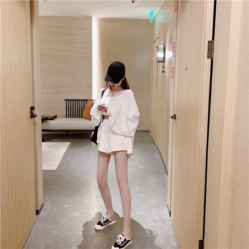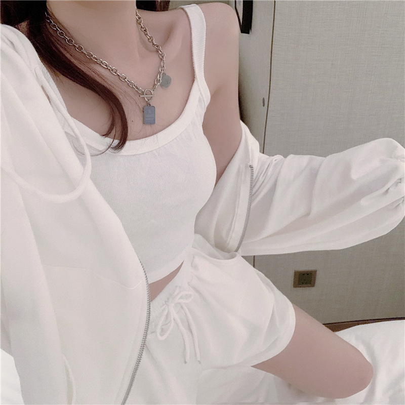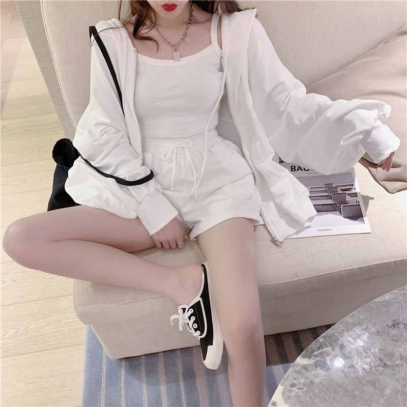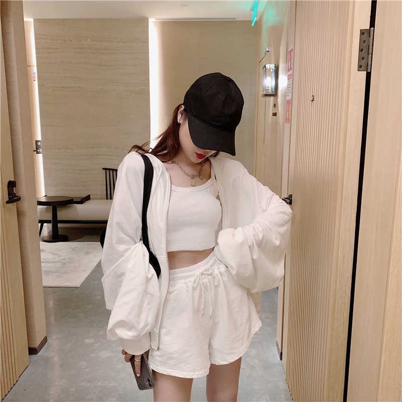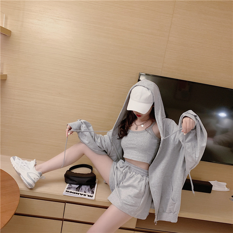 2025 봄과 가을 새로운 스포츠 및 레저 정장 소녀 조끼 반바지 서양식 패션 기질 인터넷 연예인 3 피스 세트