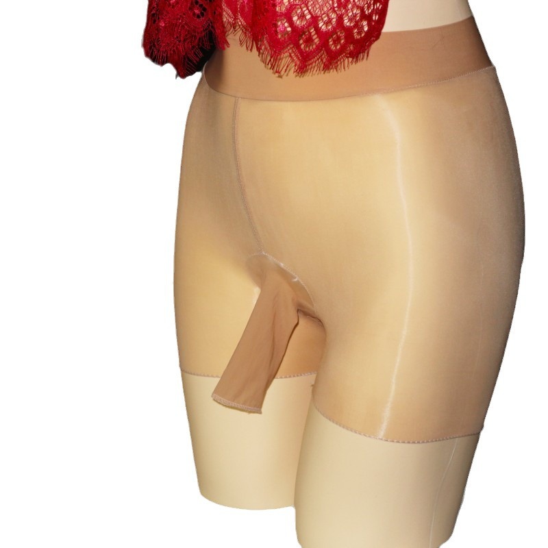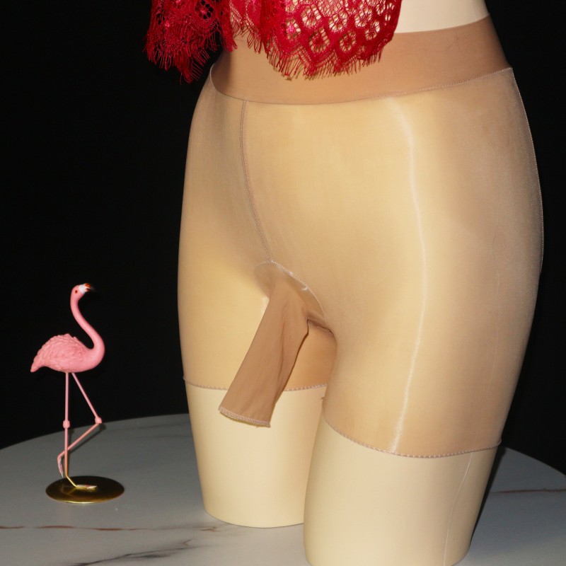 남자의 실크 스타킹 속옷 복서 팬티 JJ 세트 투명 오일 밝은 특대형 타이트 오픈 복서 반바지