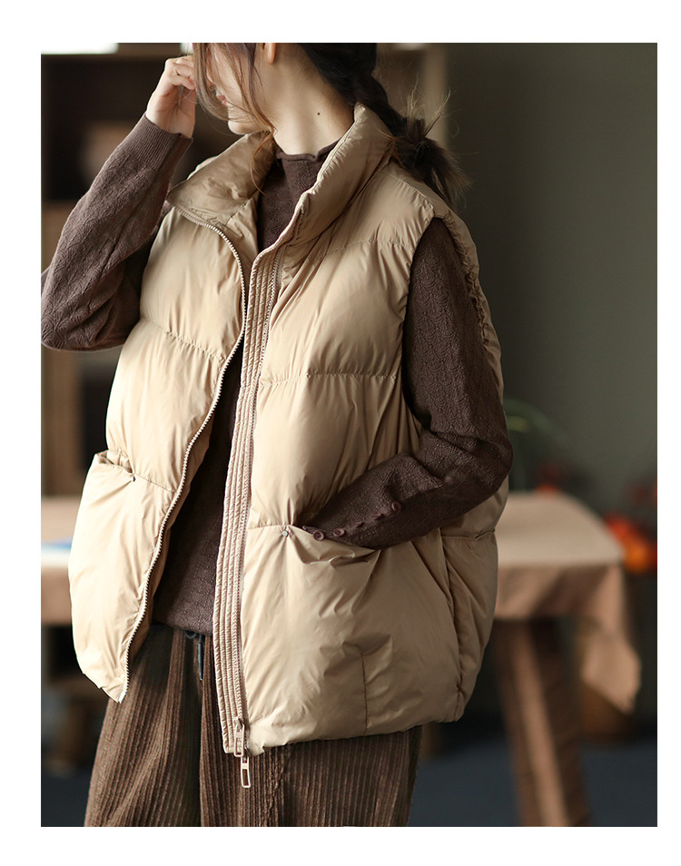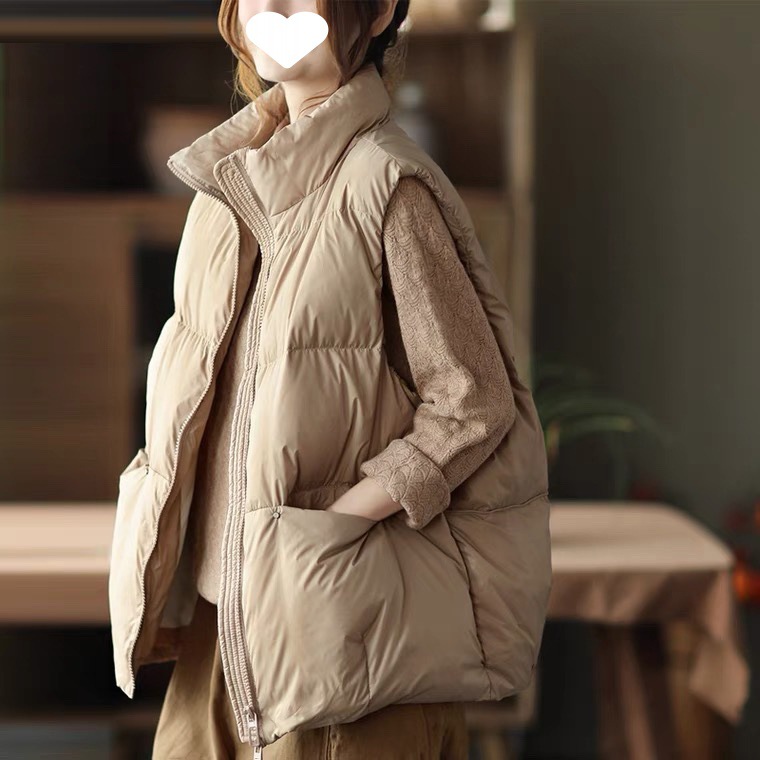 2024 뉴 다운 코튼 패딩 재킷 한국 스타일 가을과 겨울 느슨한 경량 조끼 여성 패션 조끼 탑